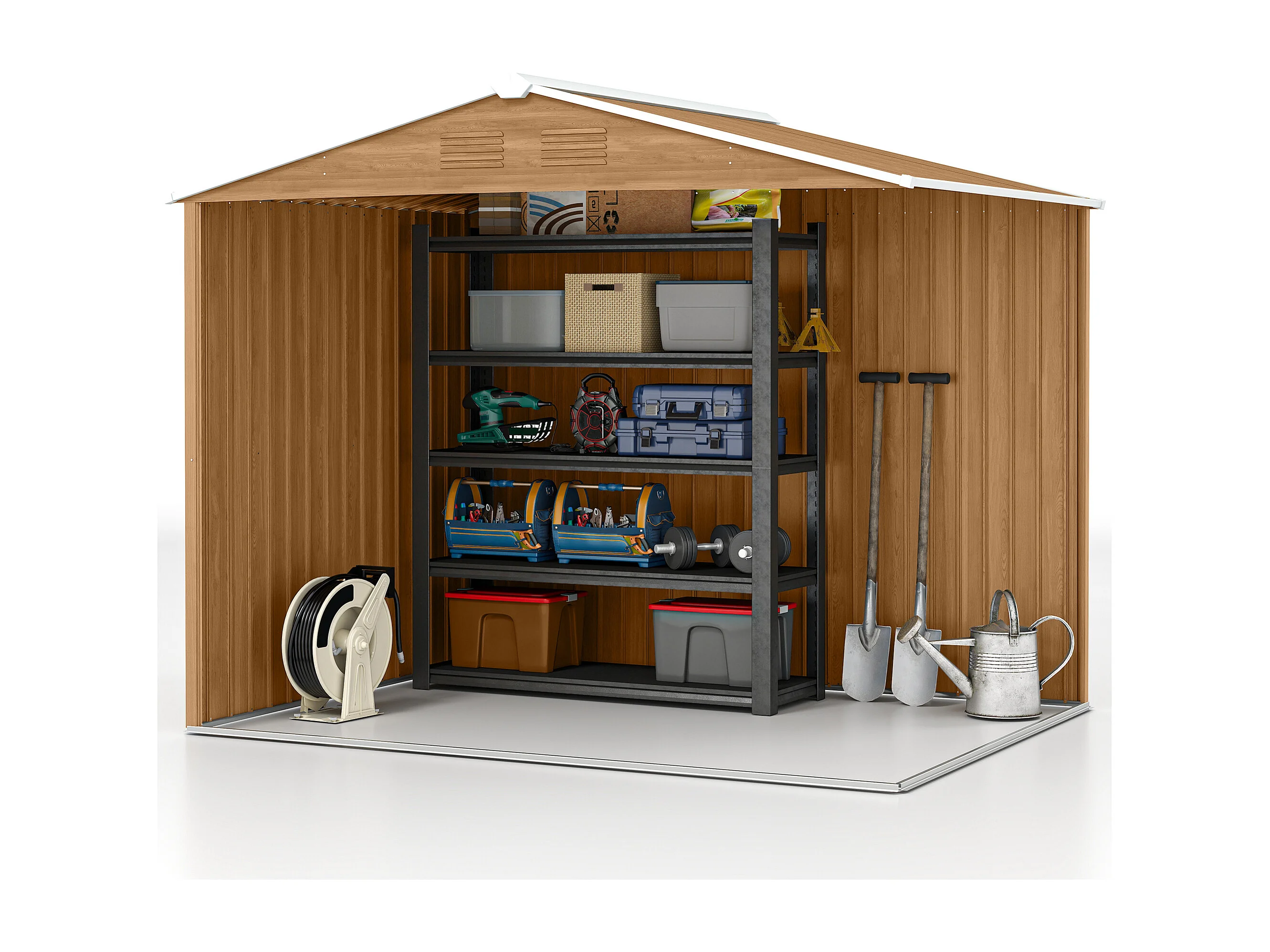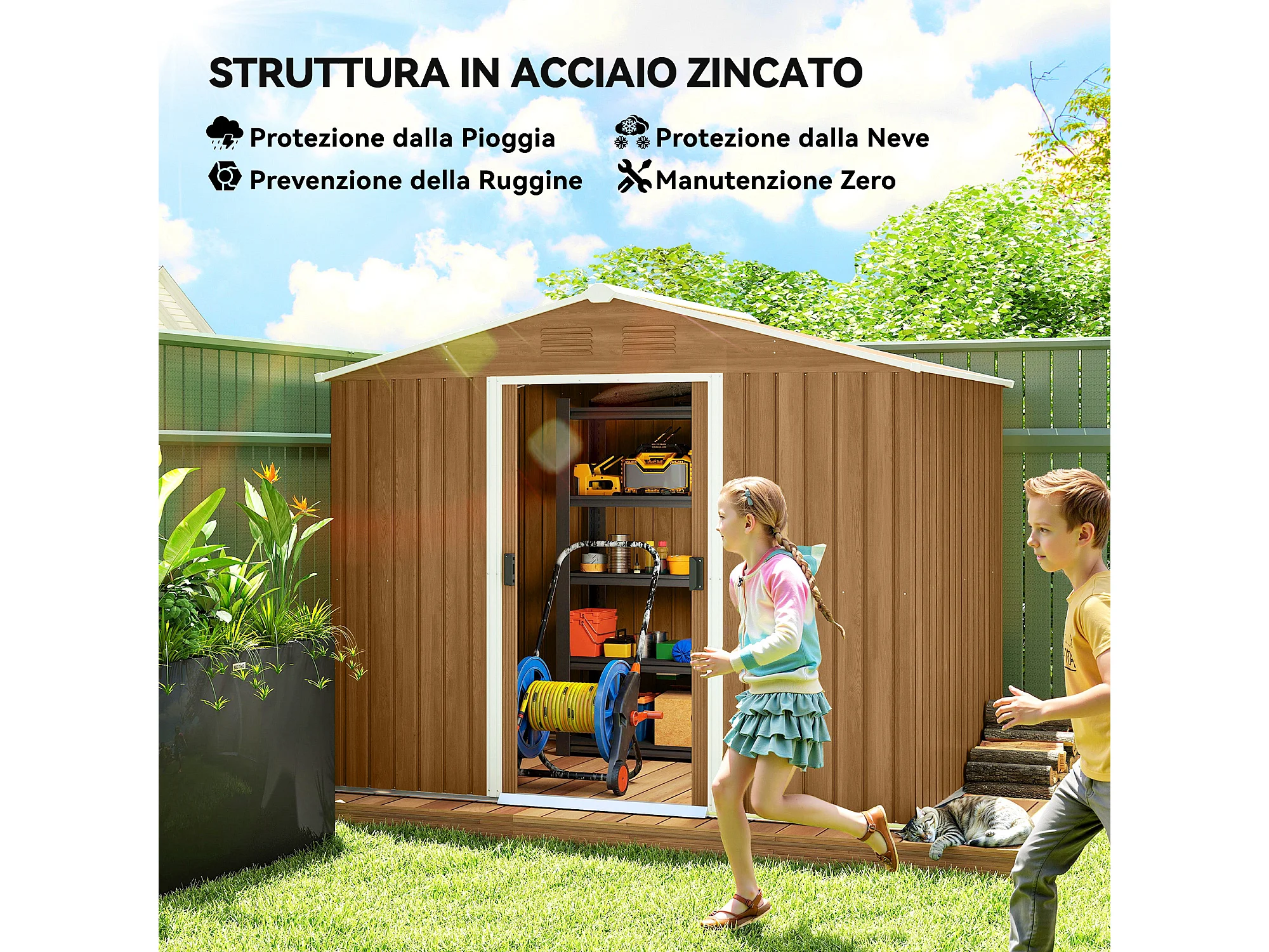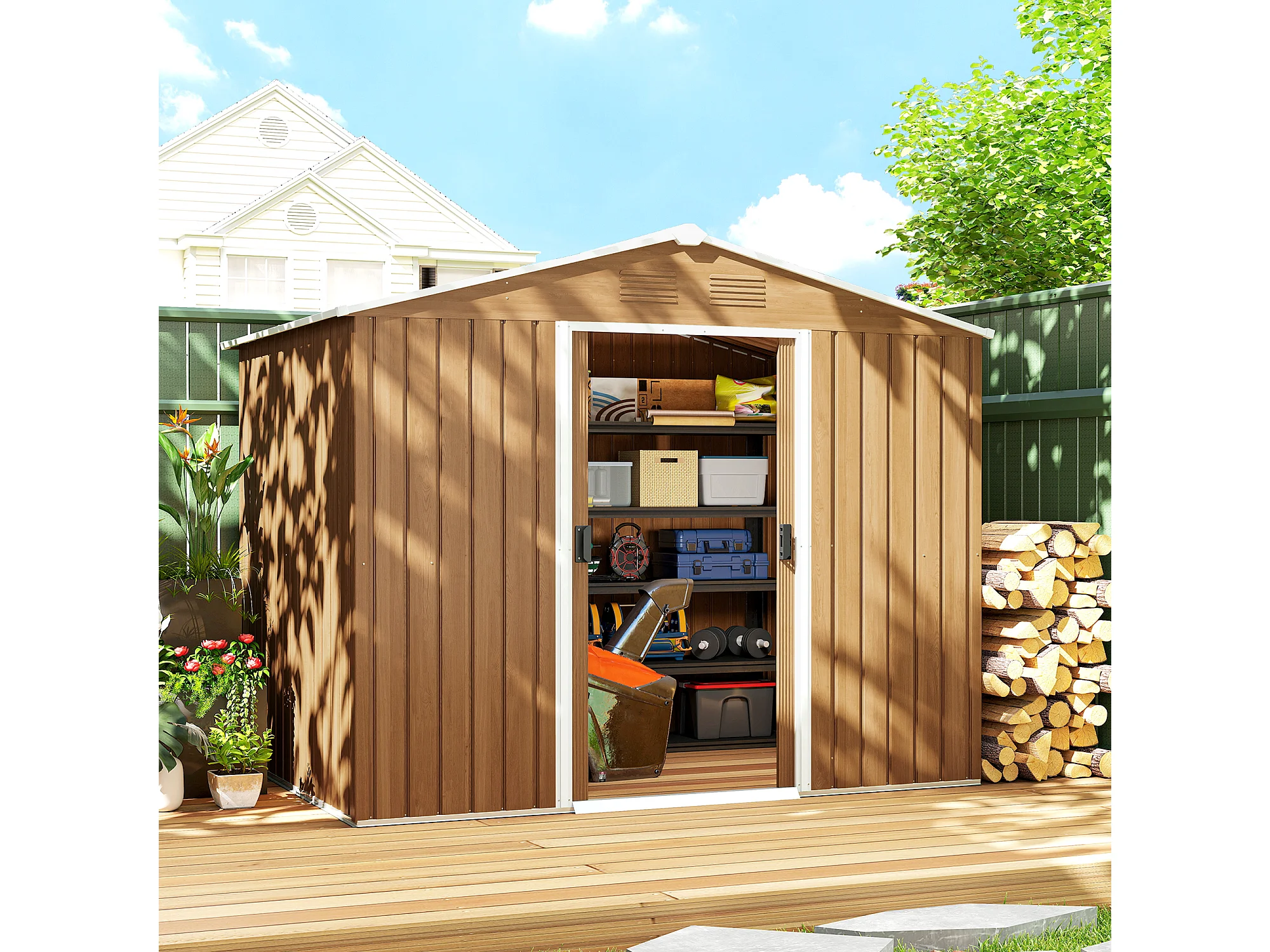 Casetta da giardino con doppia porta e 4 prese d'aria marrone legno