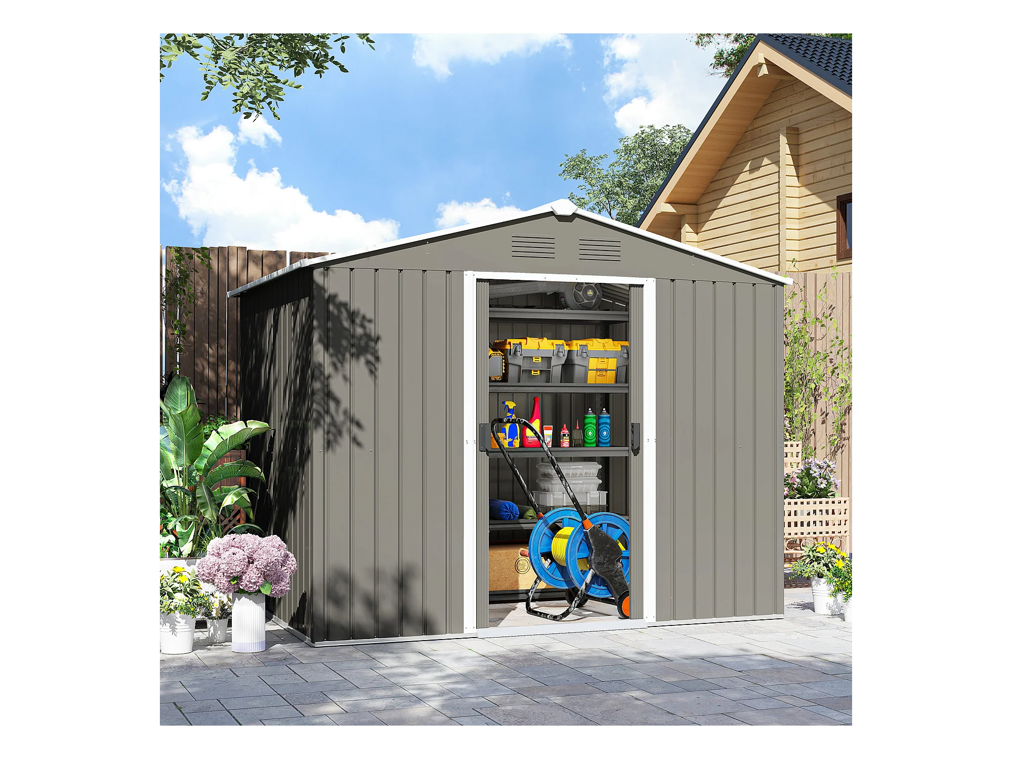 Capanno attrezzi in acciaio con tetto inclinato grigio