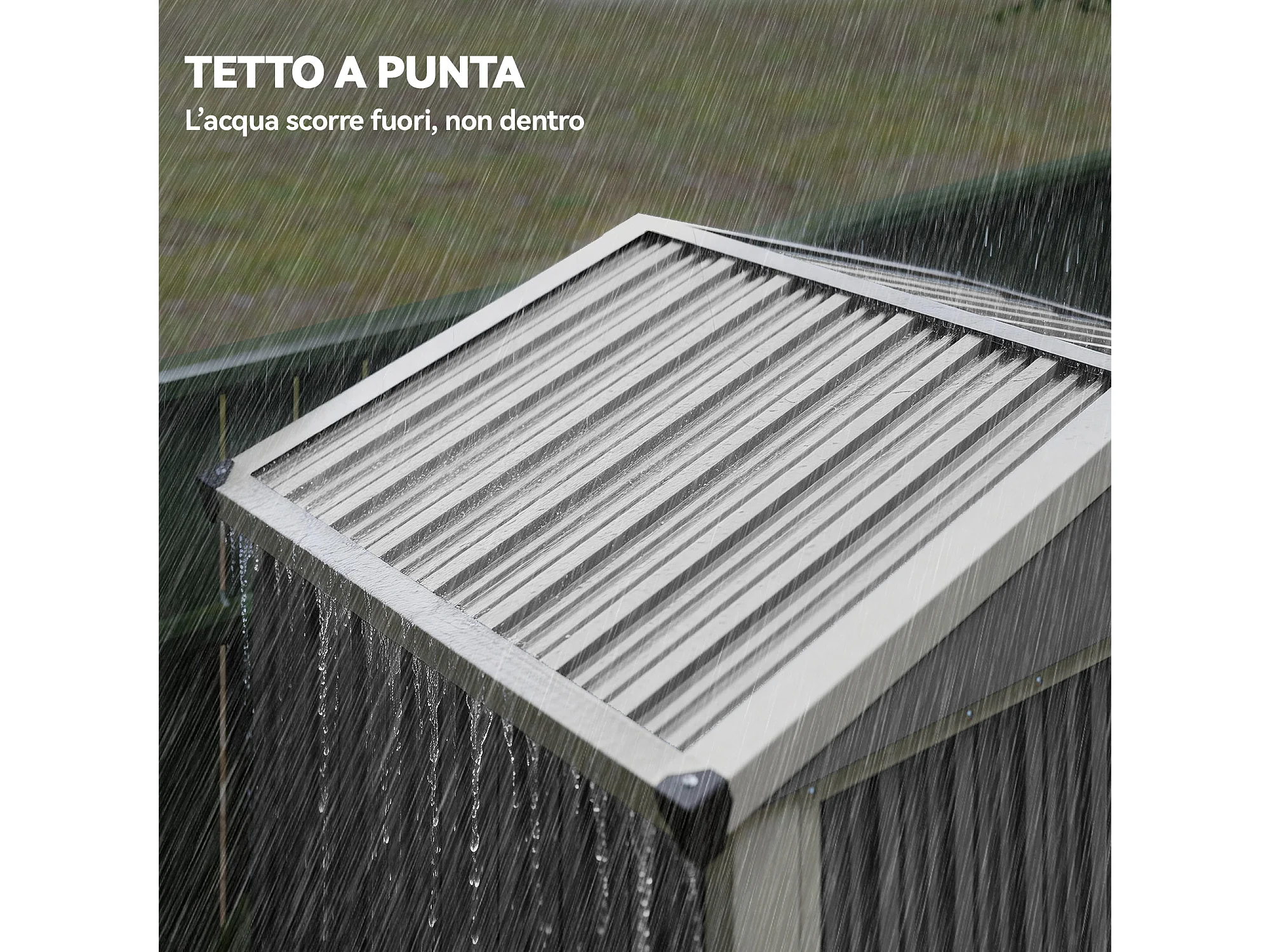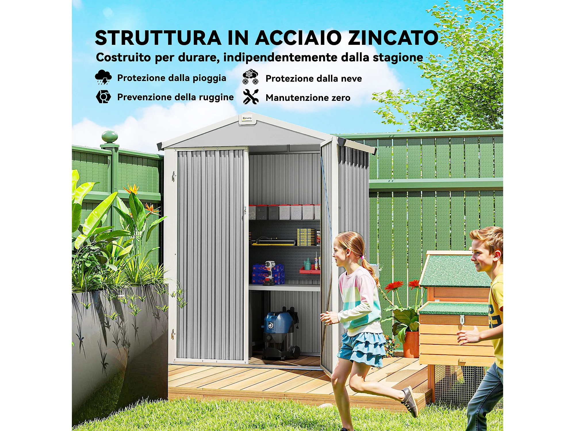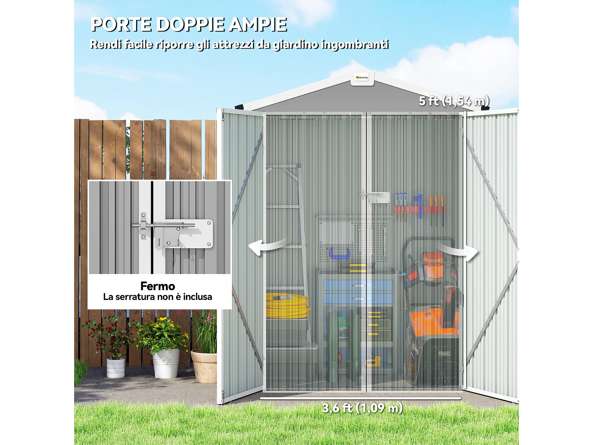 Casetta da giardino con doppie porte bloccabili in acciaio argento