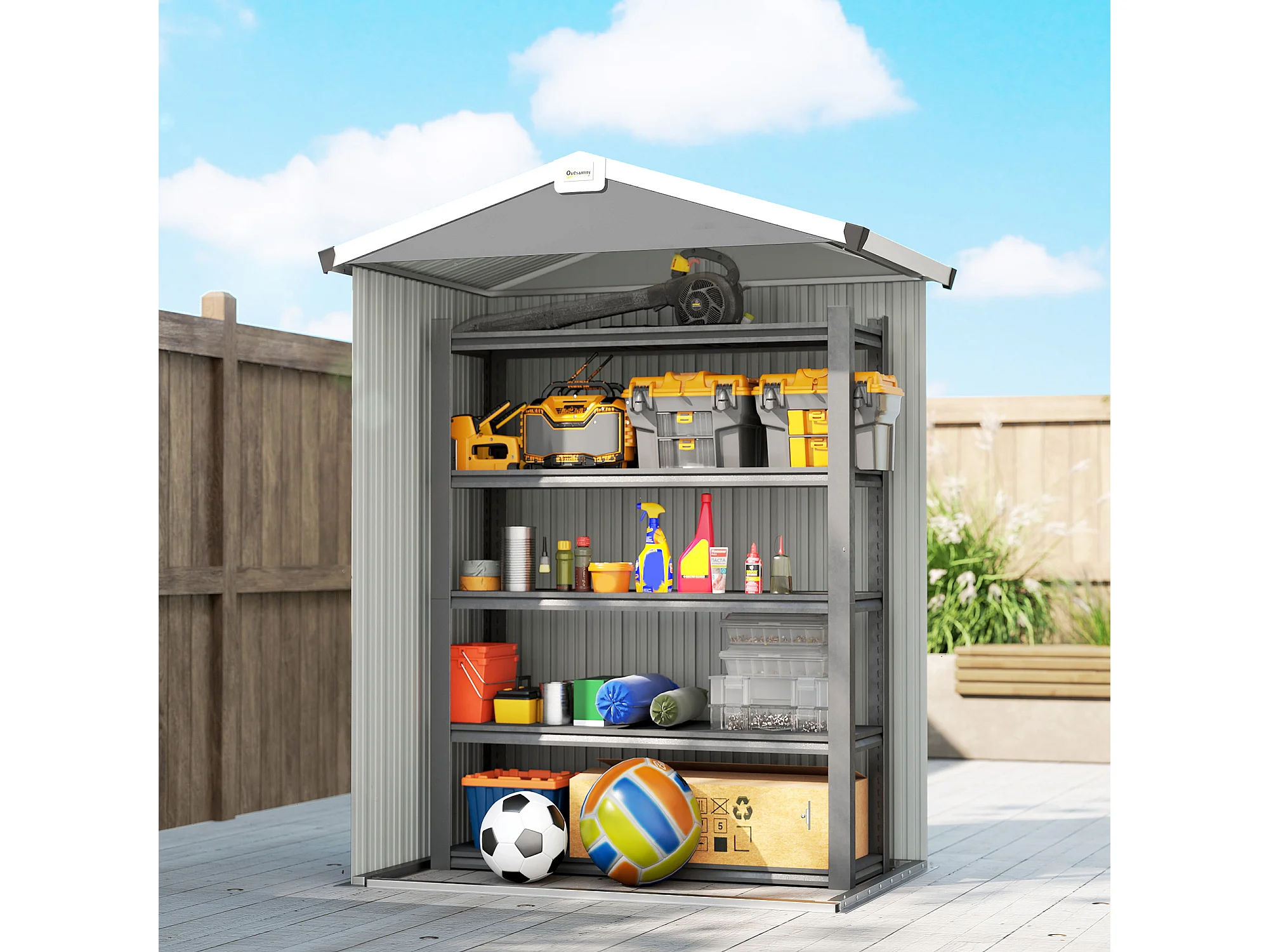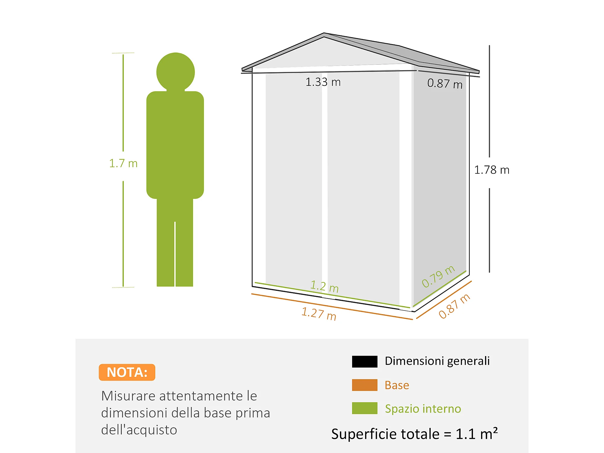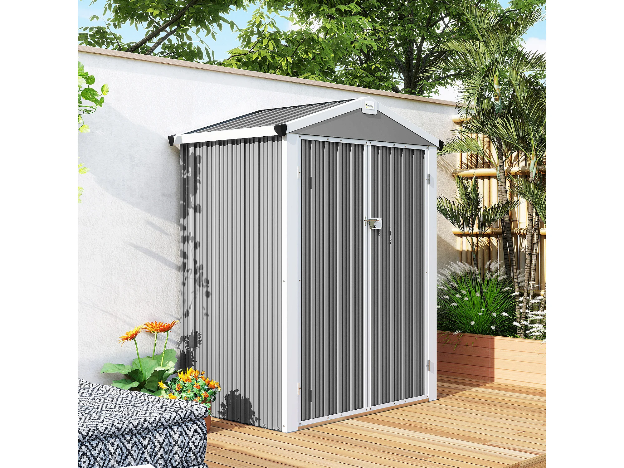 Casetta da giardino con doppie porte bloccabili in acciaio argento