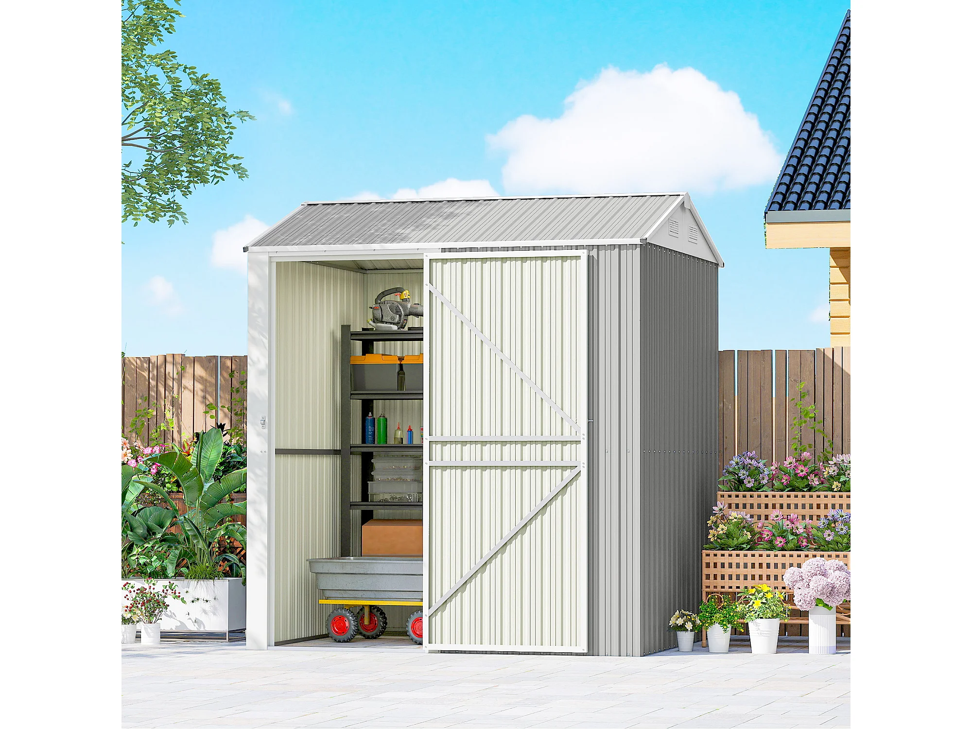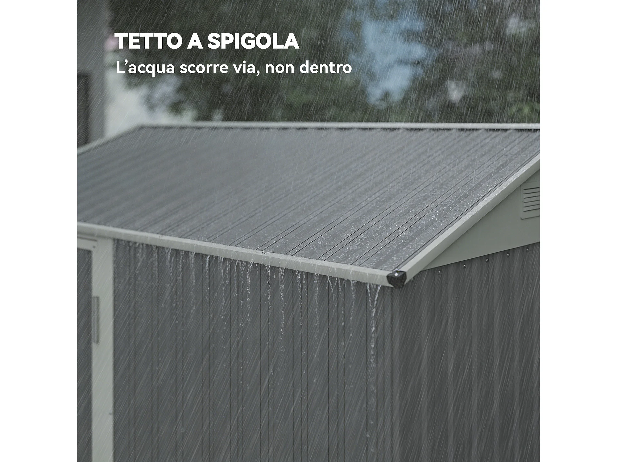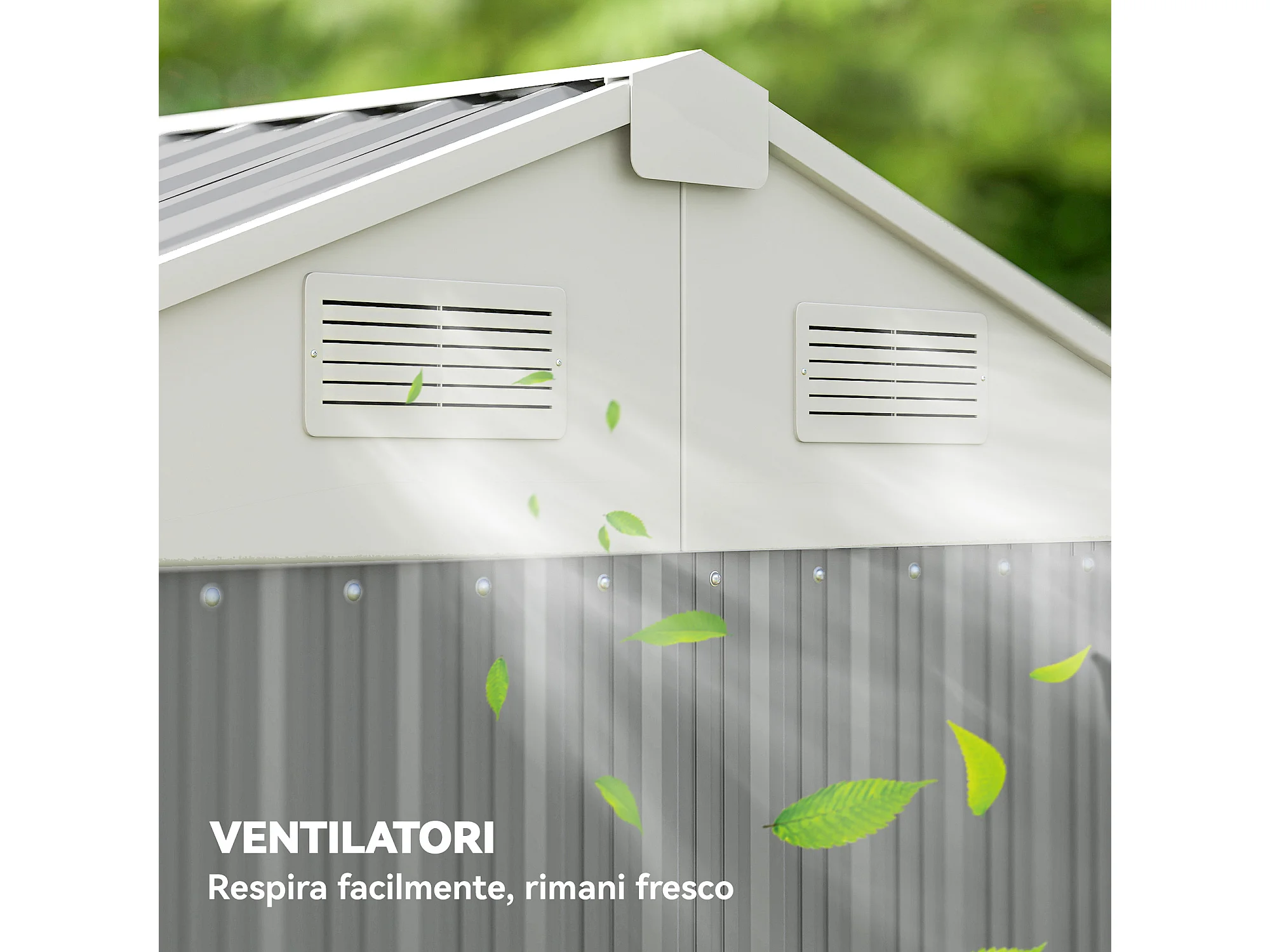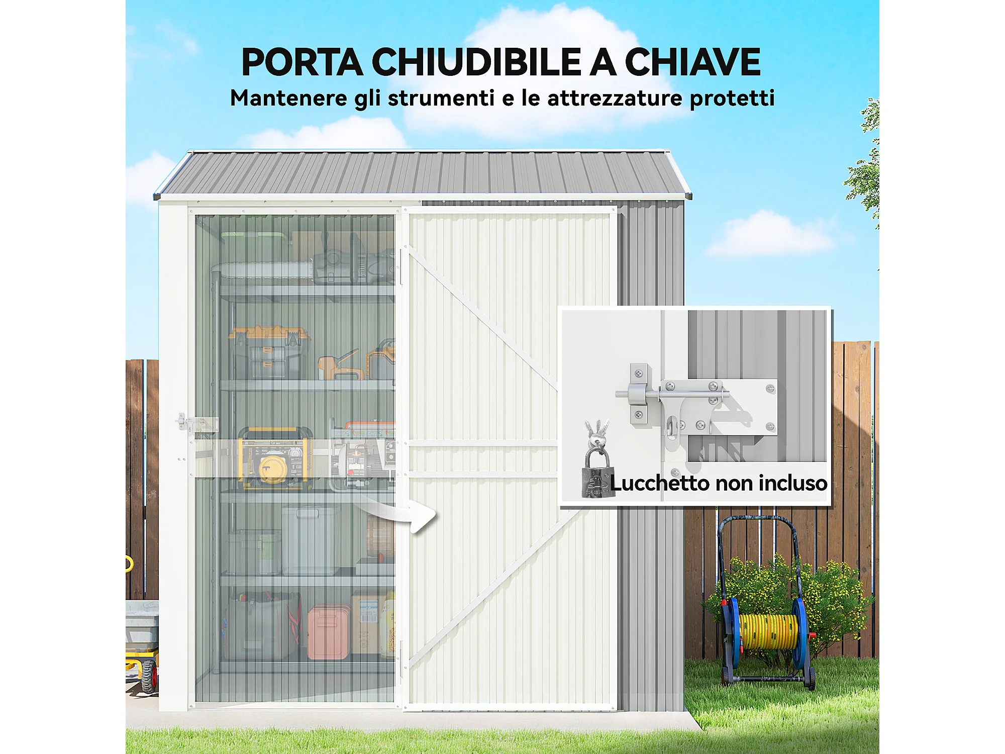 Casetta da giardino con porta bloccabile in acciaio grigio argento