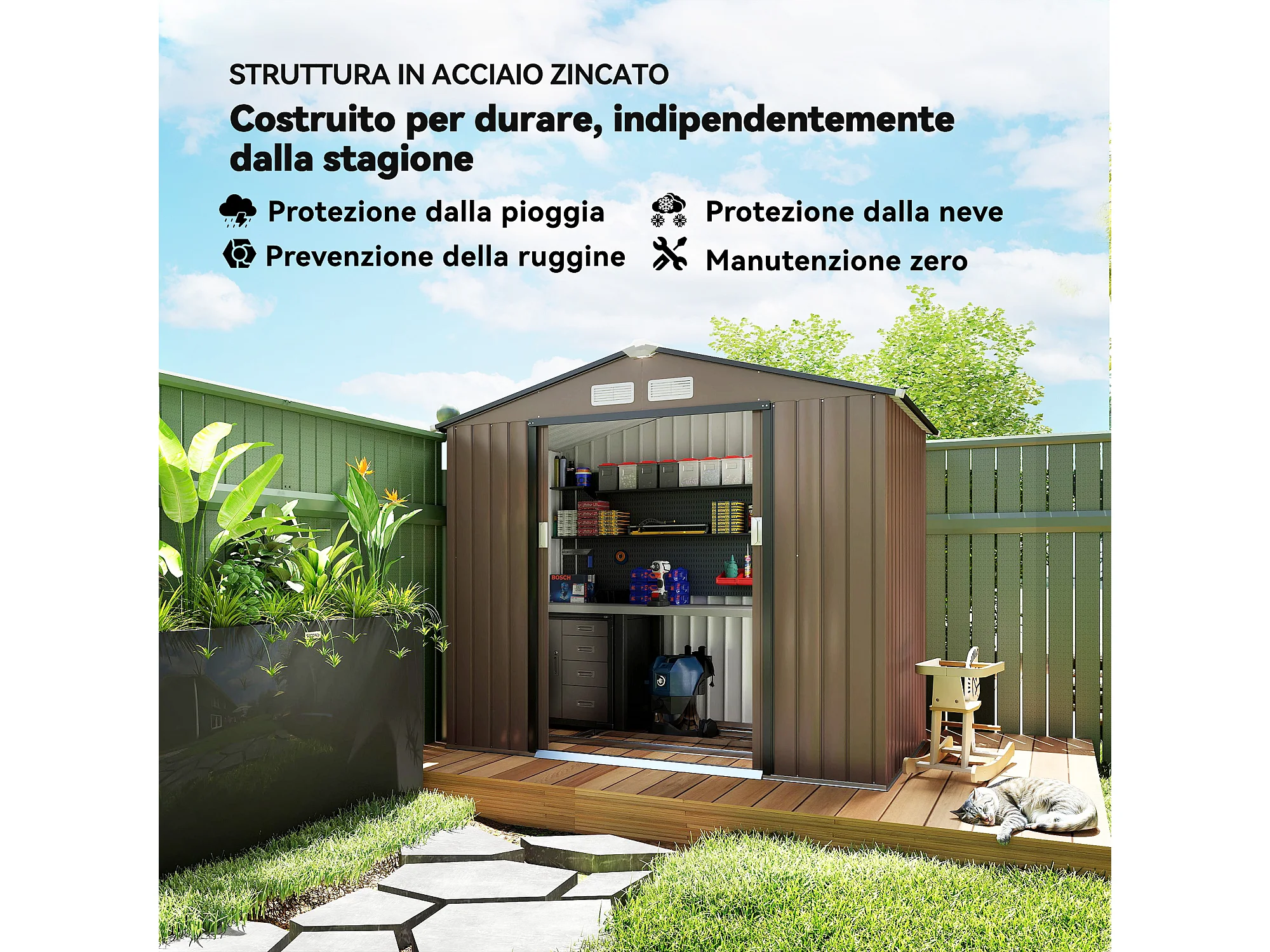 Casetta da giardino per attrezzi in acciaio marrone