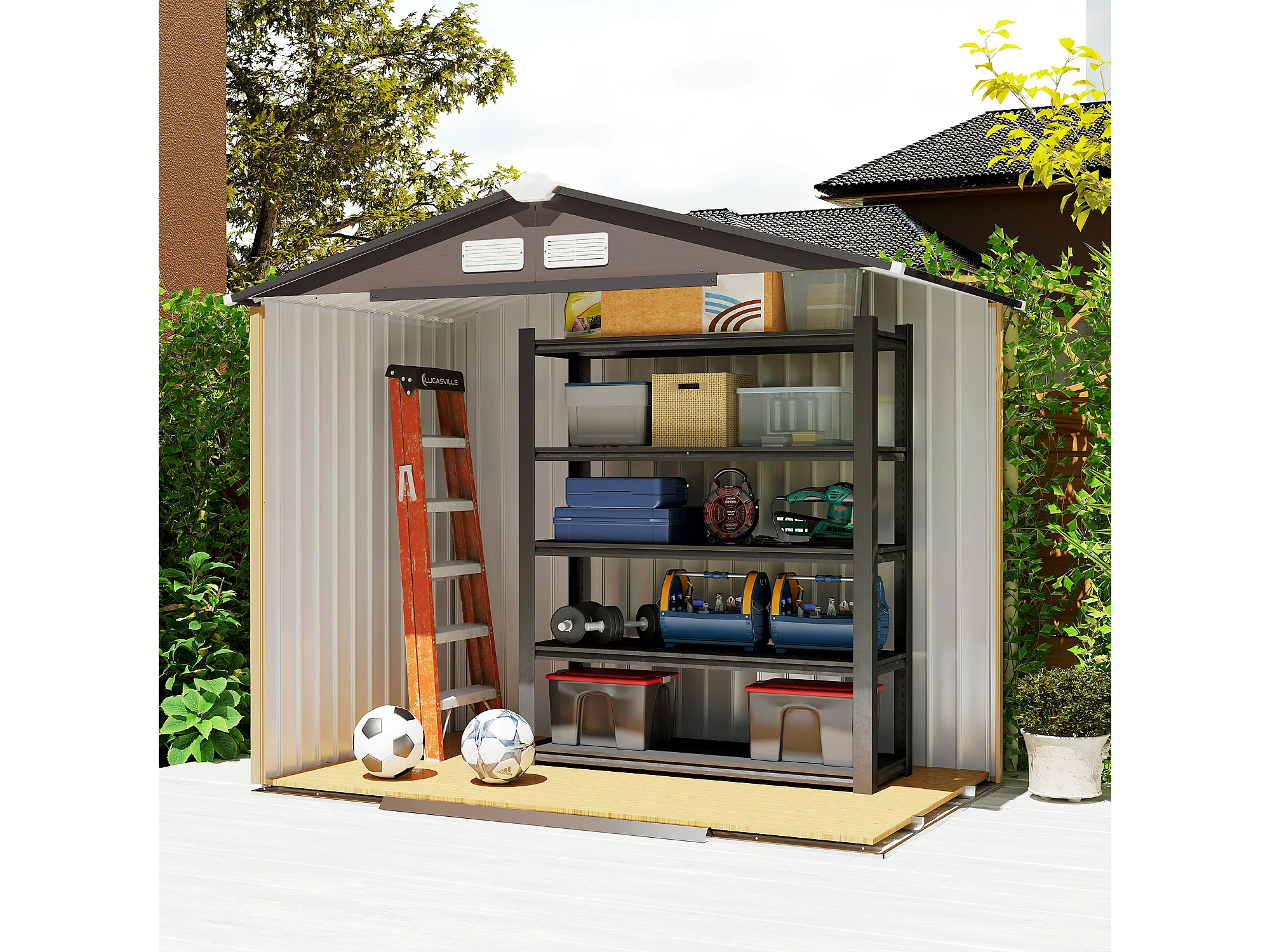 Casetta da giardino in acciaio con 2 porte scorrevoli marrone chiaro