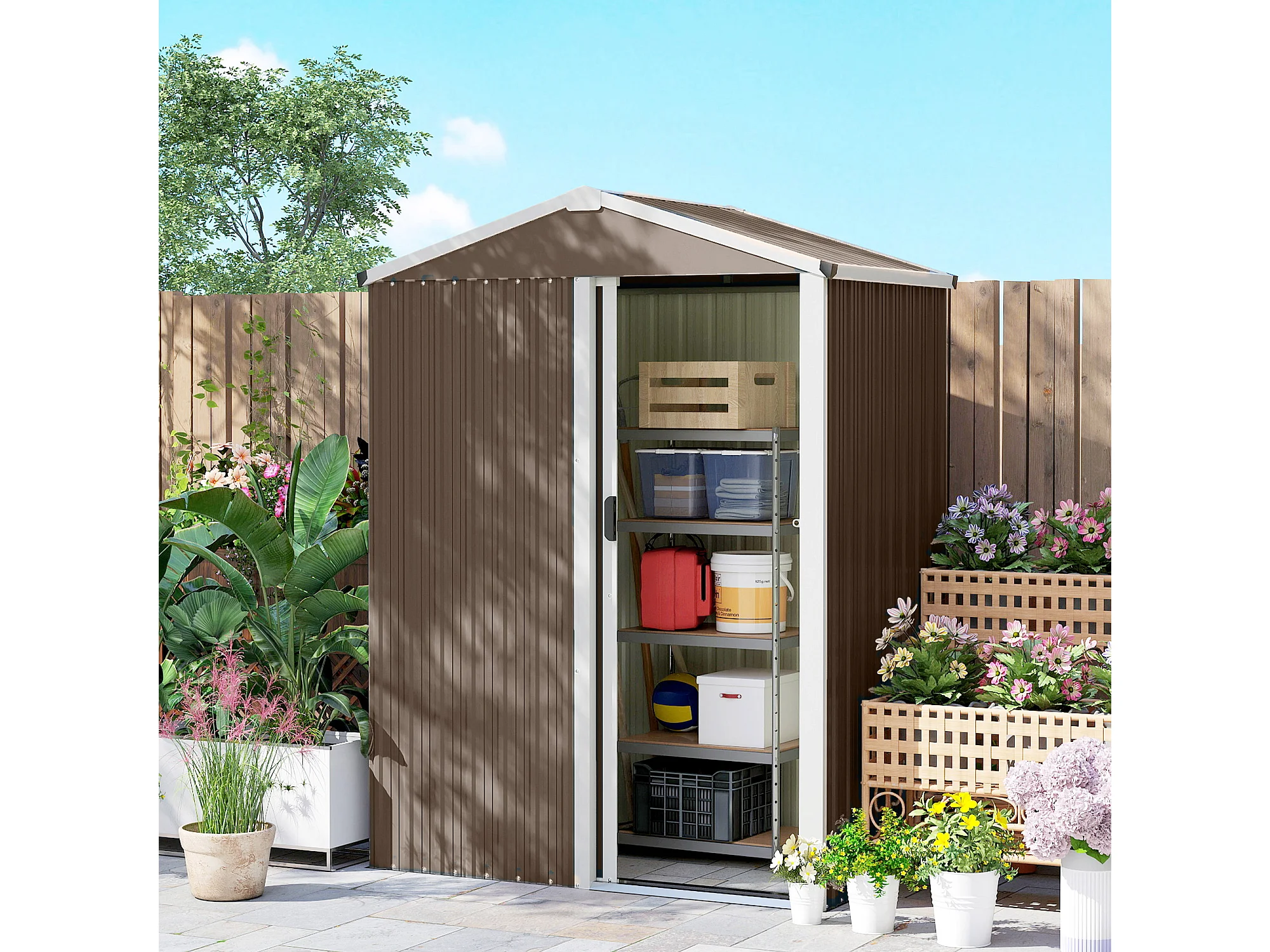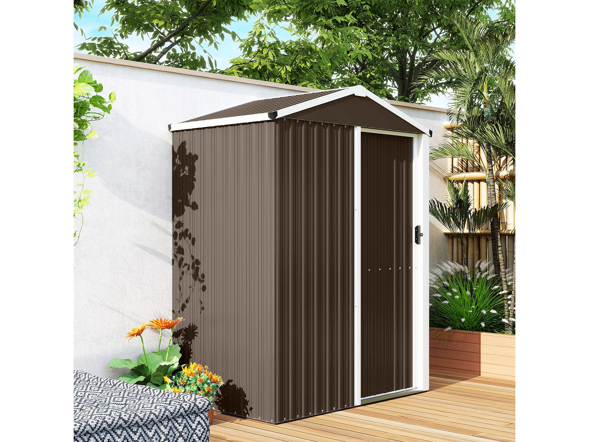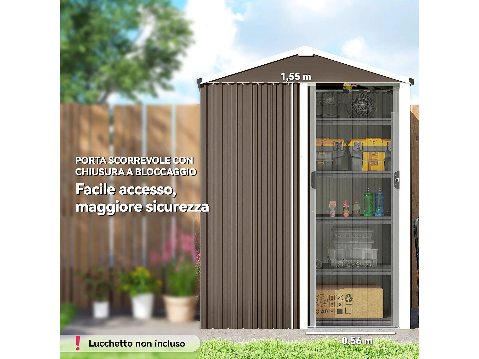 Casetta da giardino con porta scorrevole in acciaio marrone