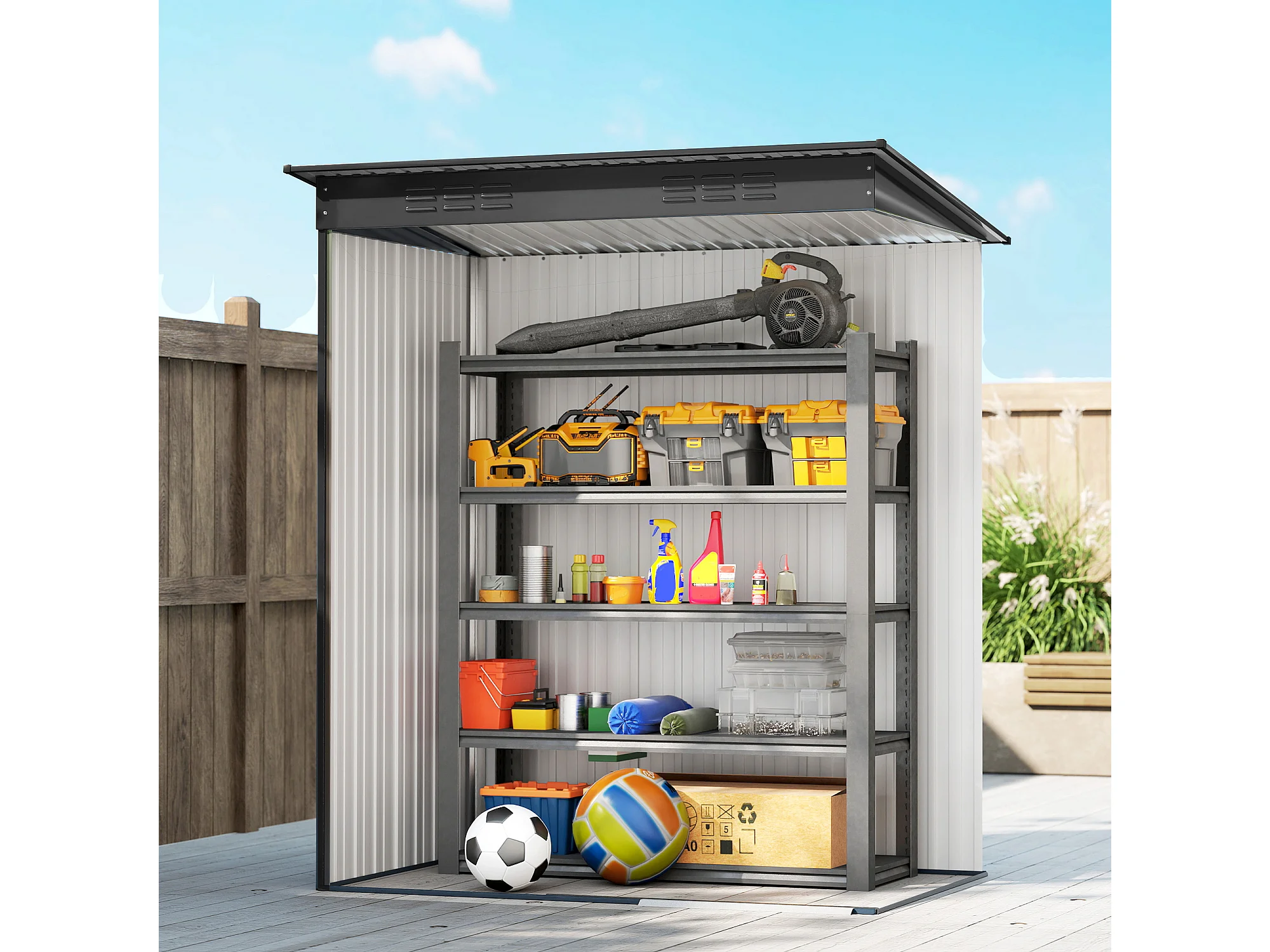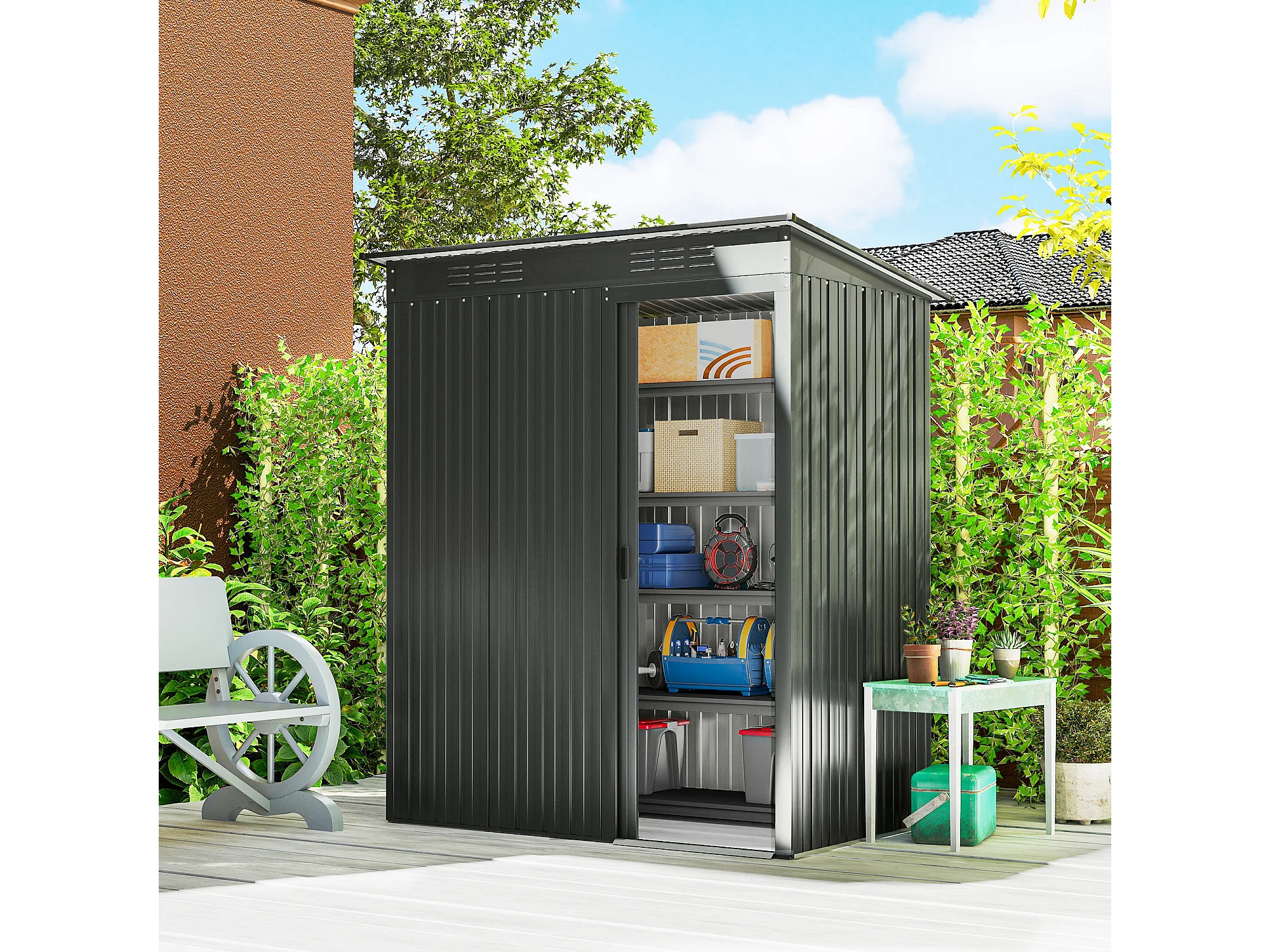 Casetta da giardino con porta scorrevole in metallo grigio scuro