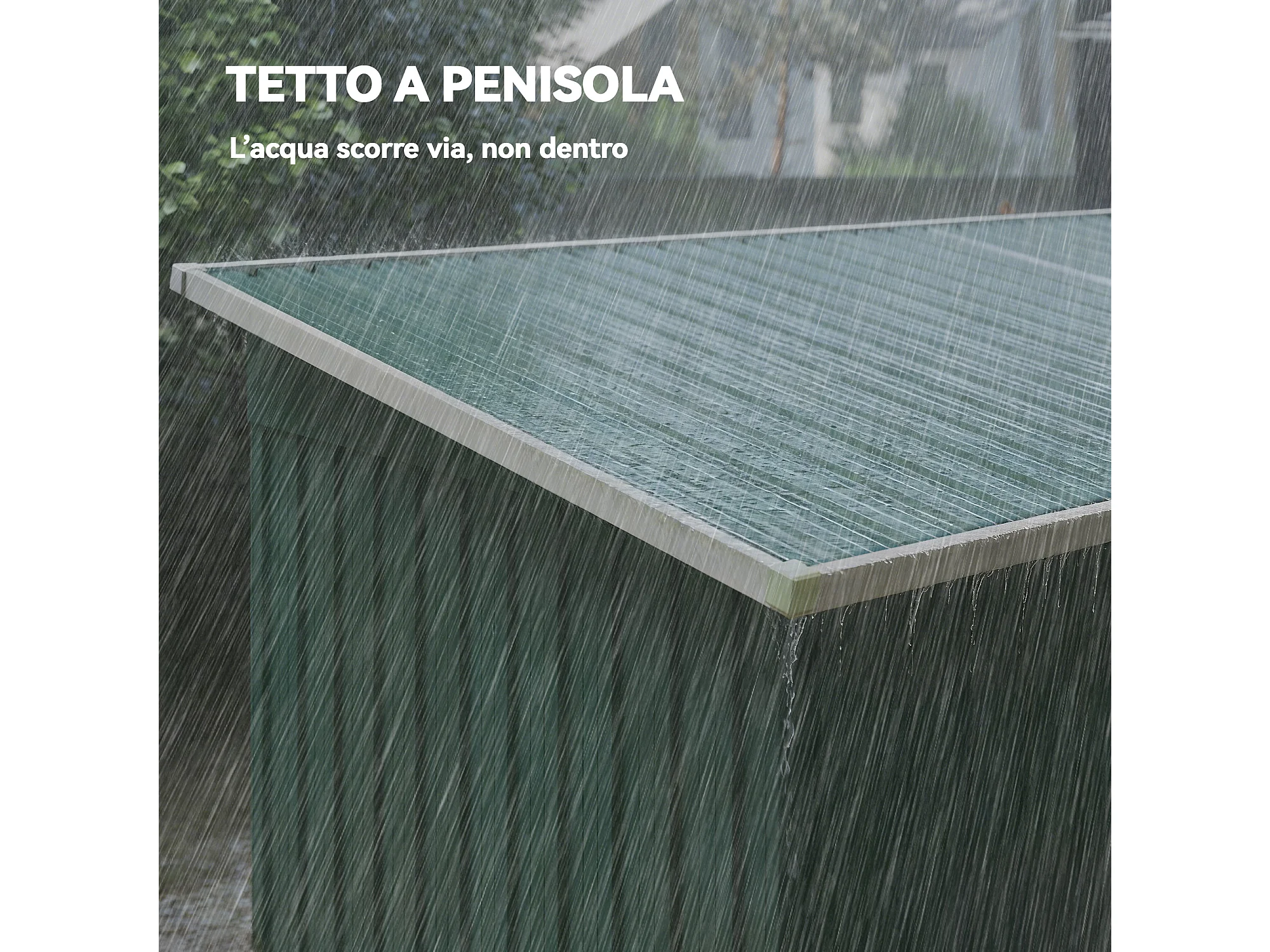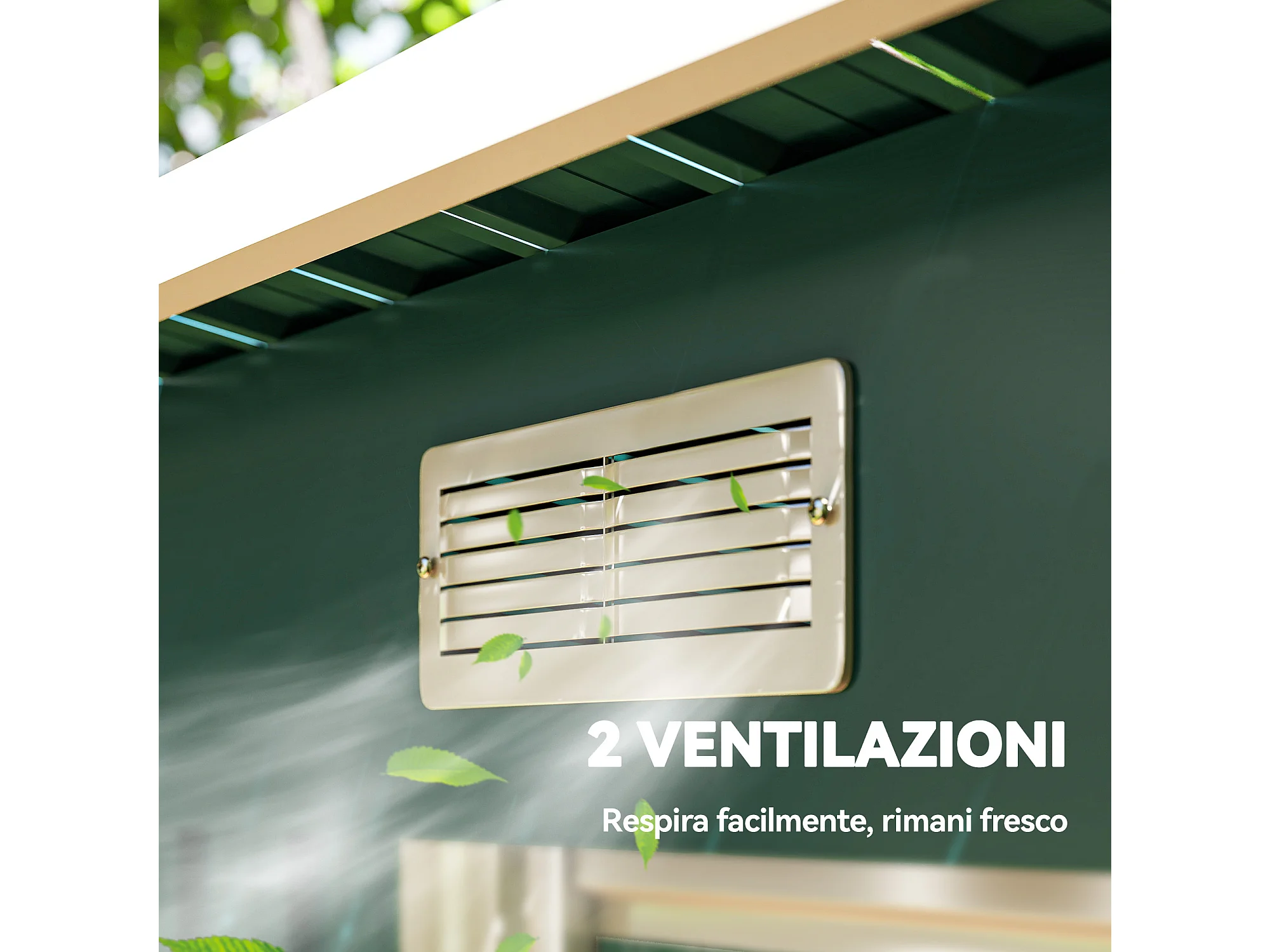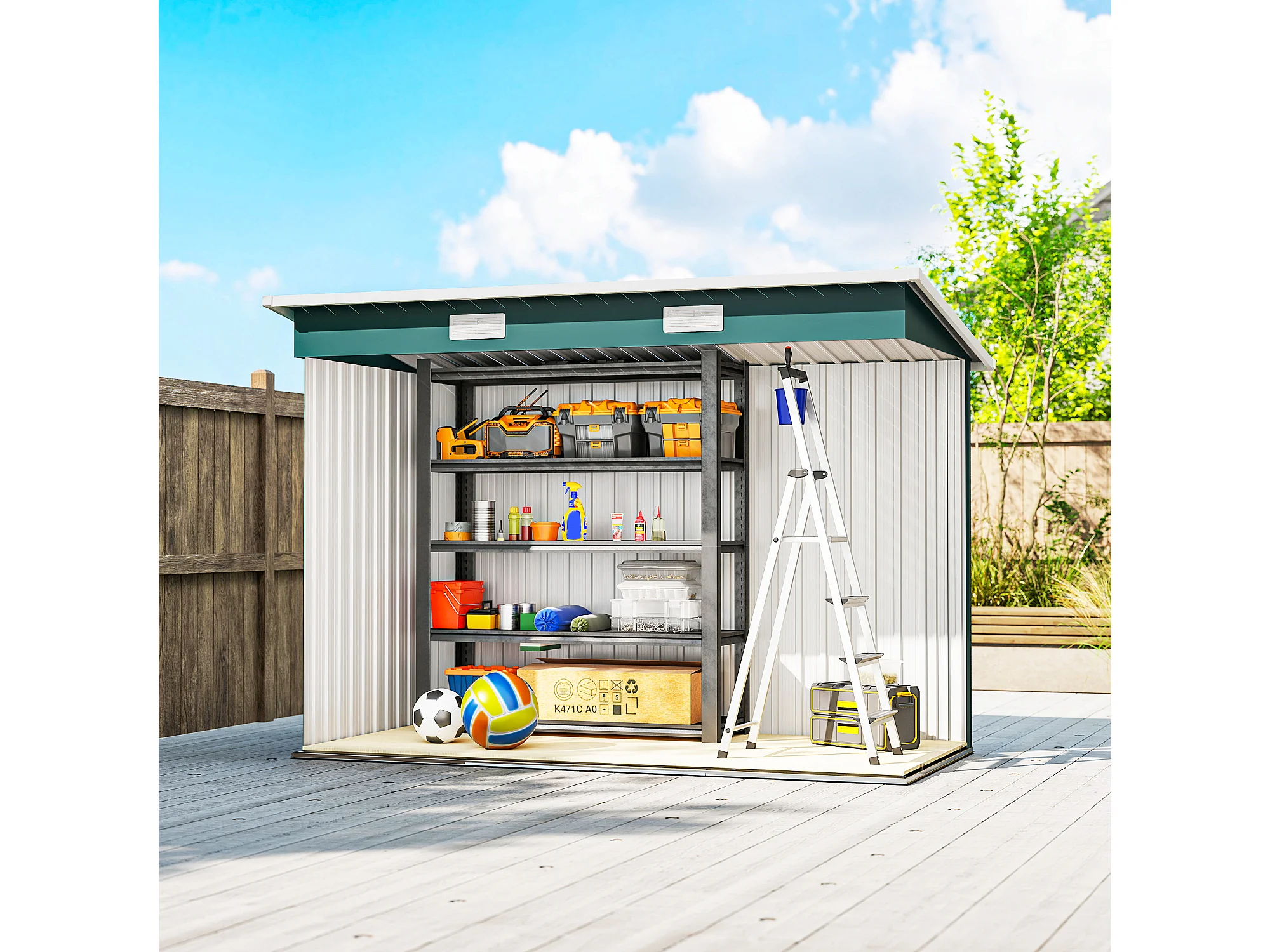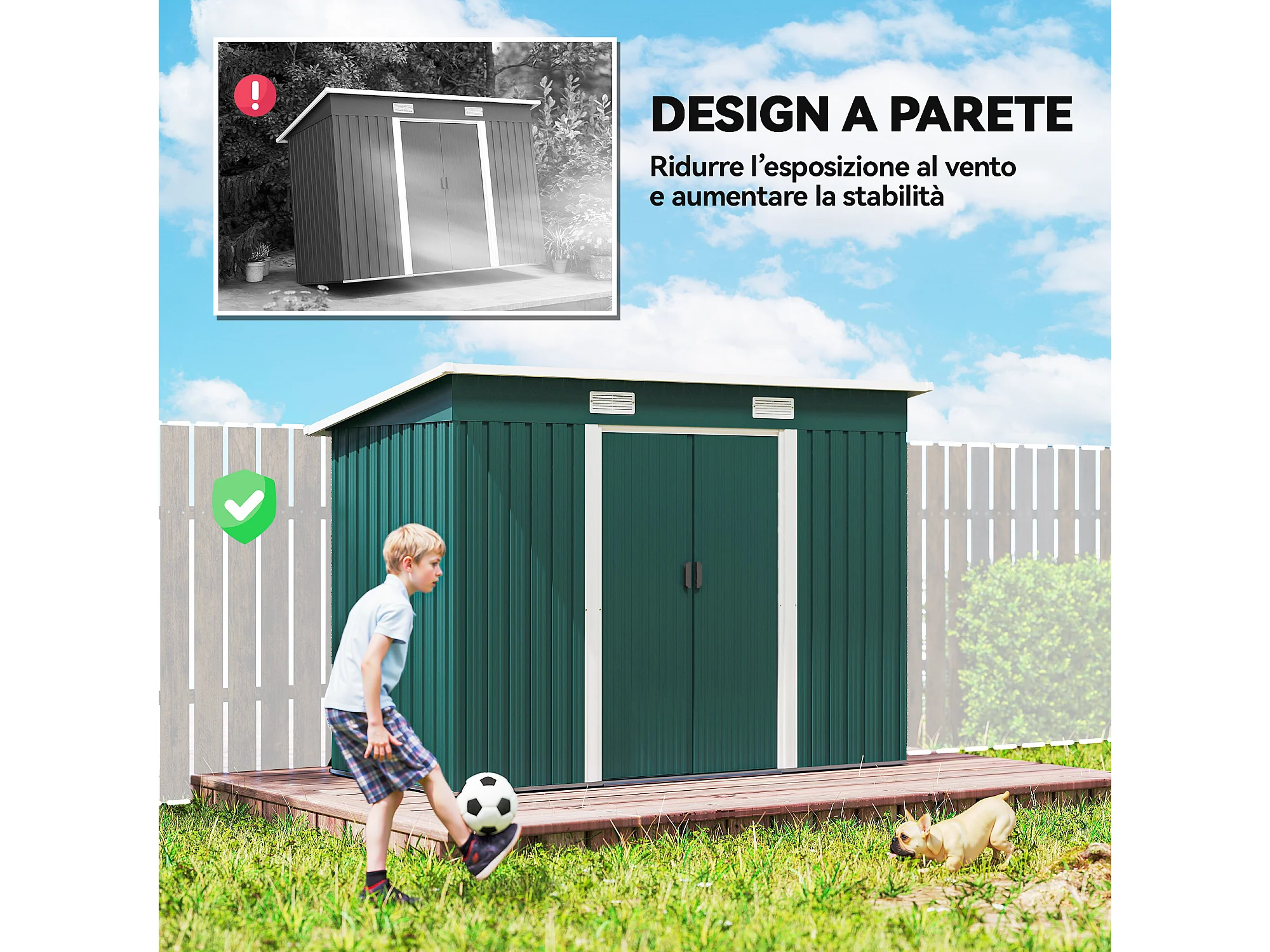 Casetta da giardino con porte scorrevoli in acciaio verde