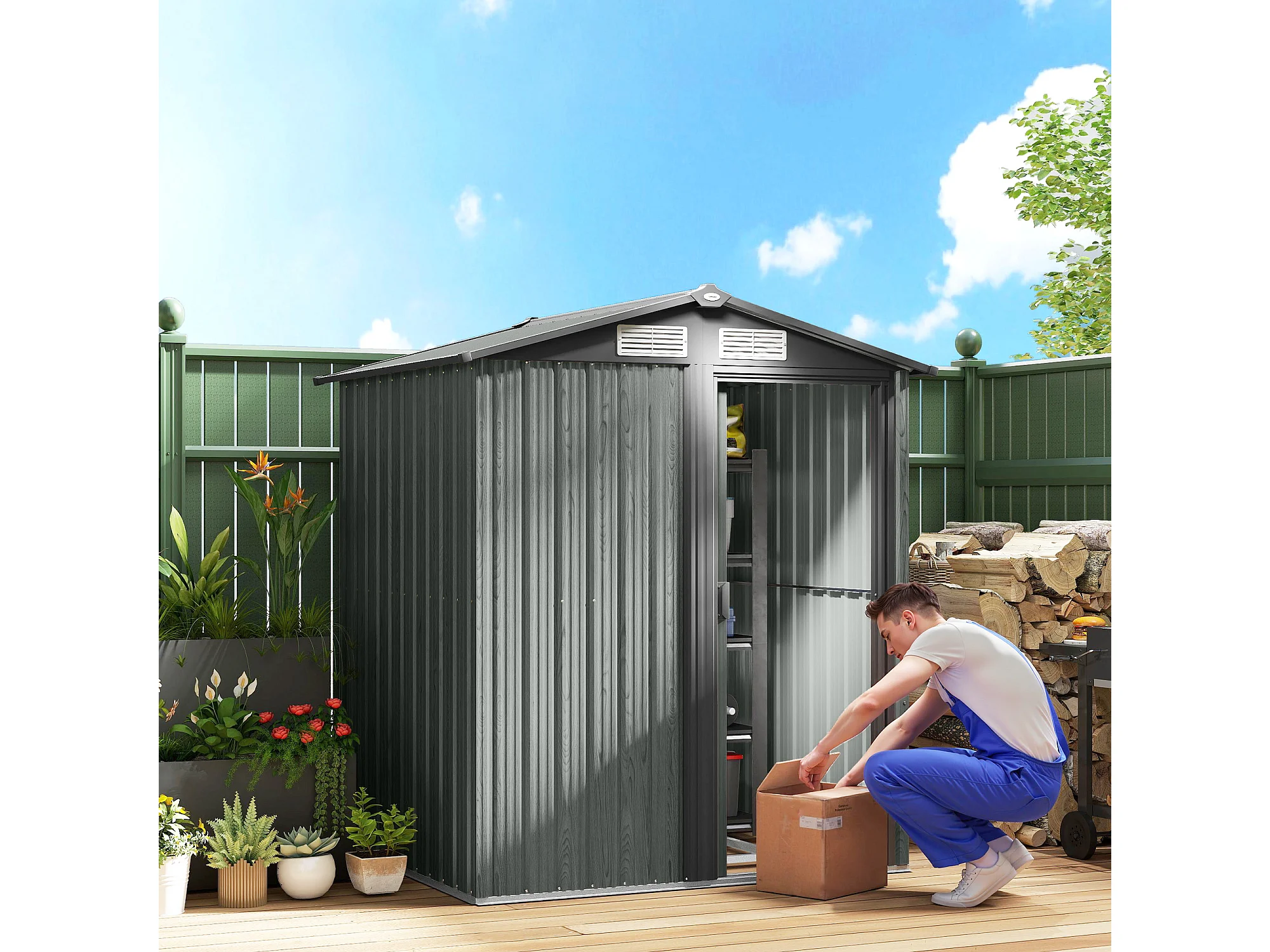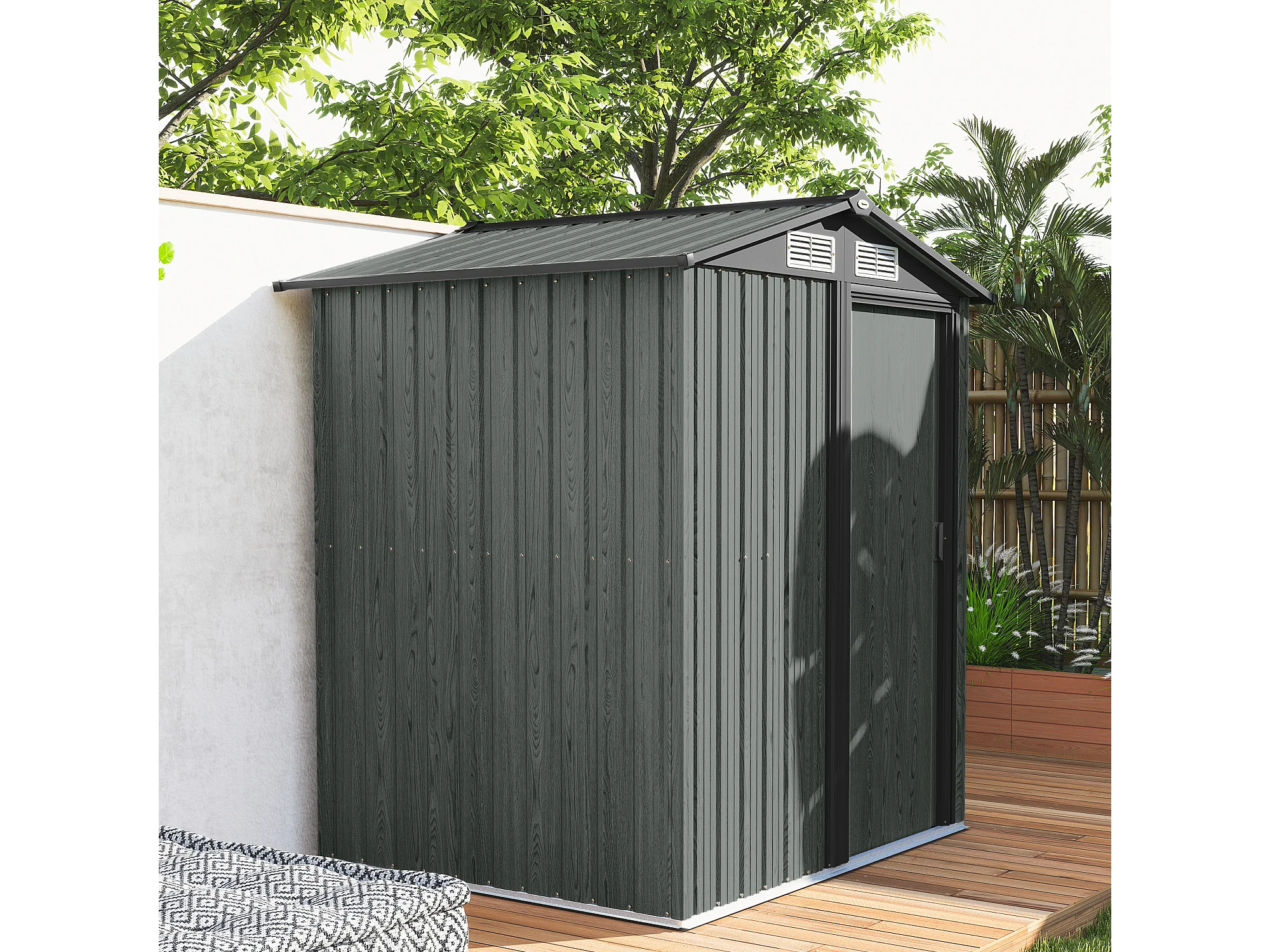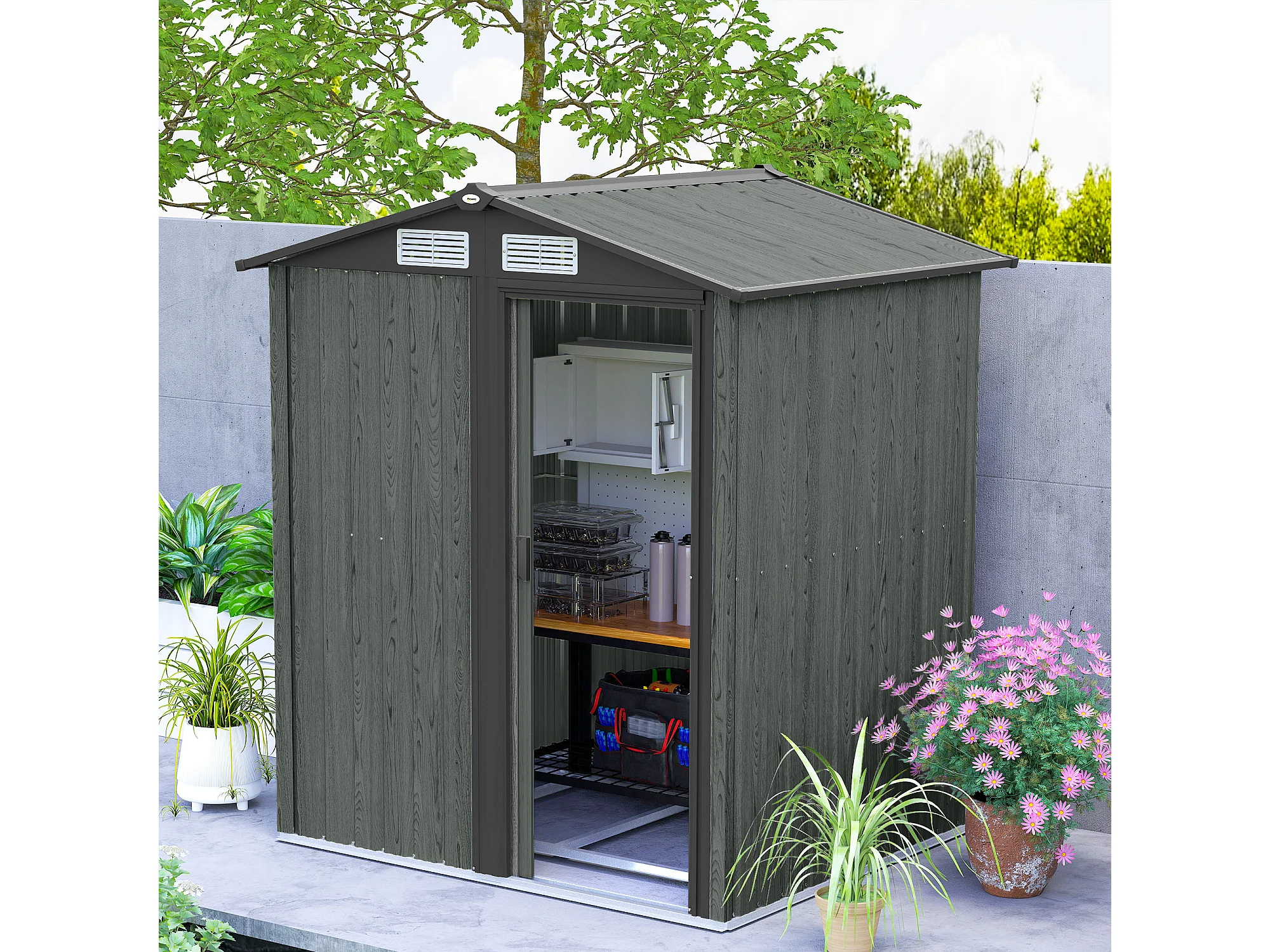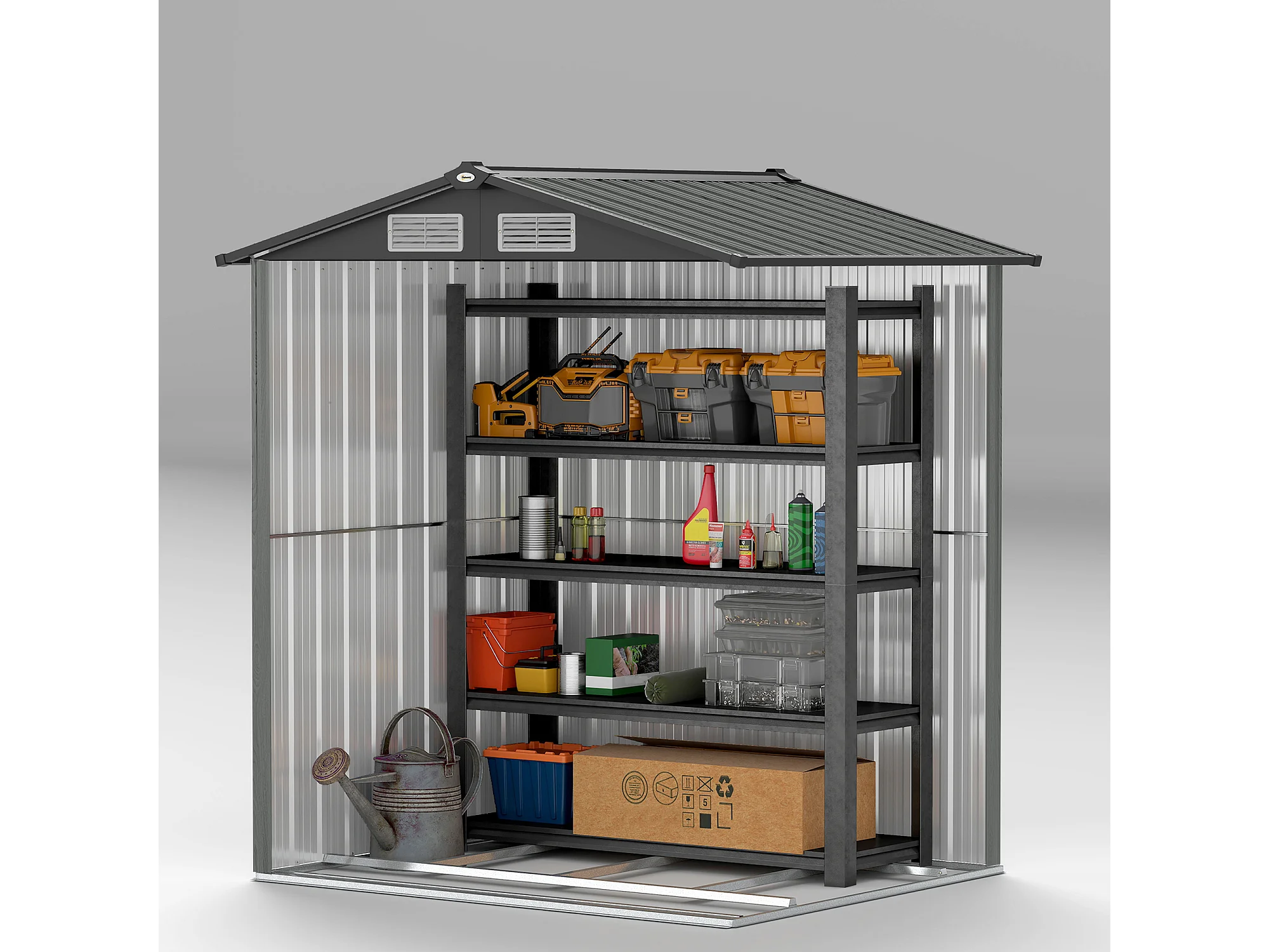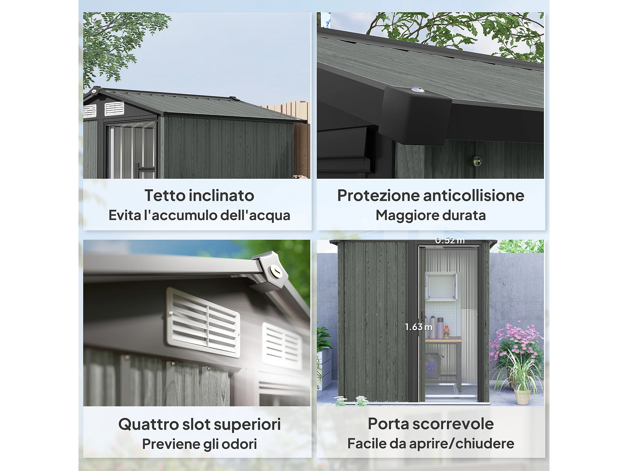 Casetta da giardino con tetto inclinato e prese d'aria acciaio grigio