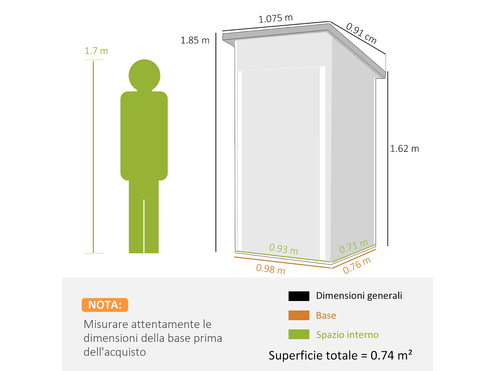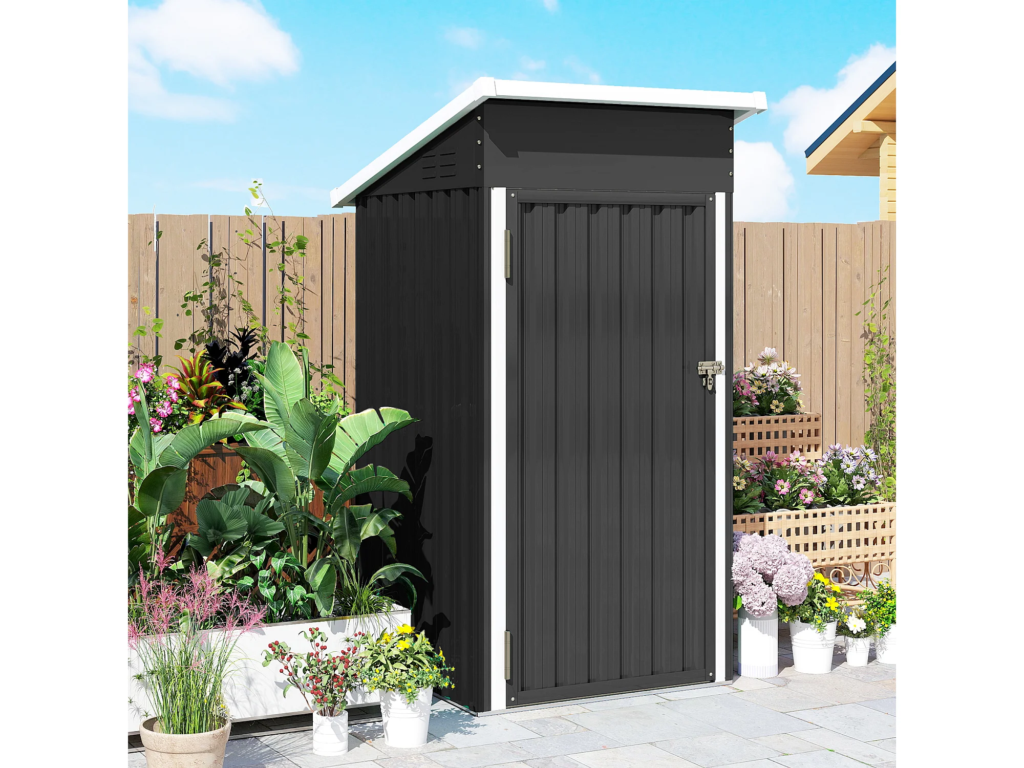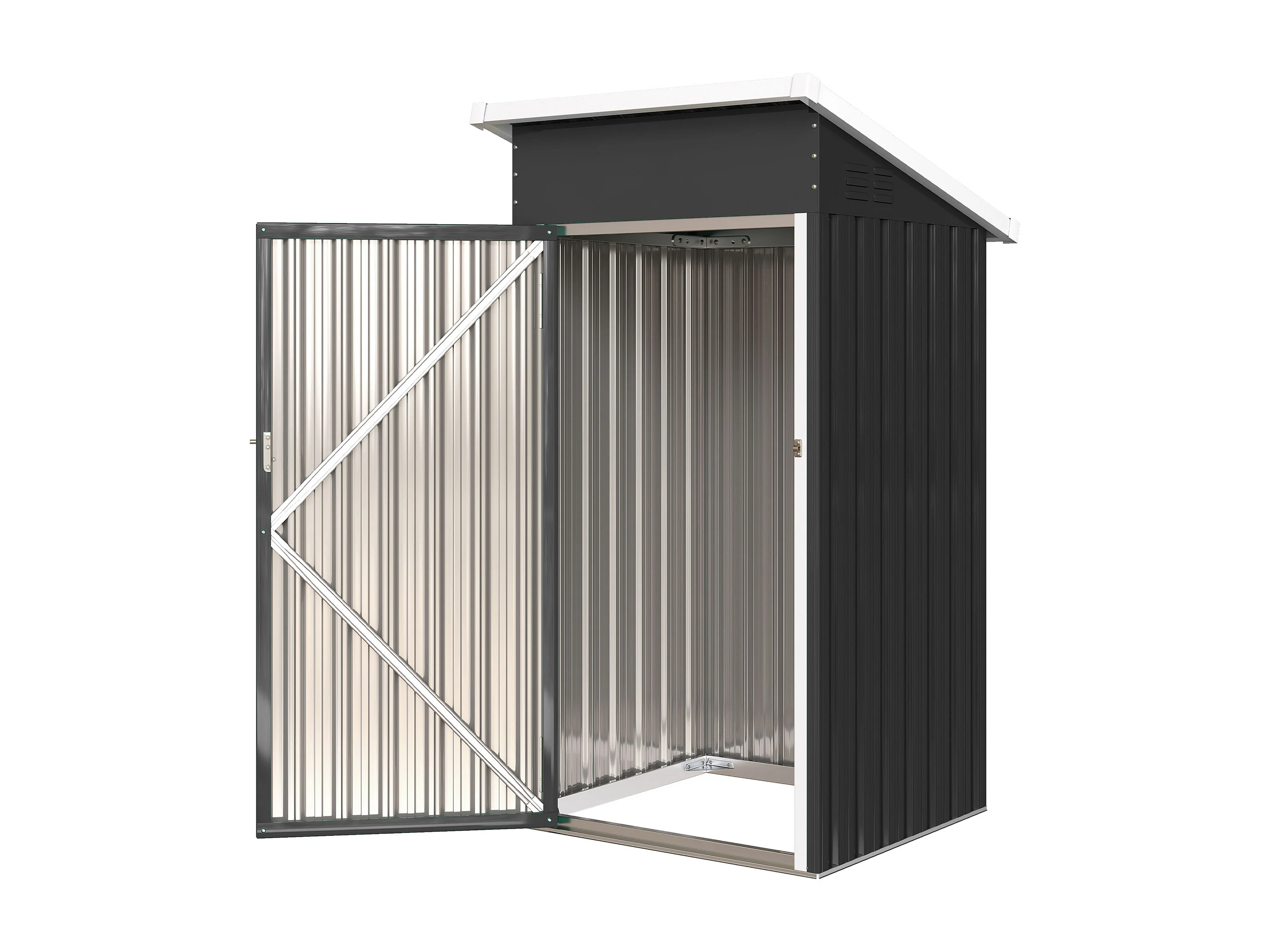 Casetta da giardino con tetto inclinato in acciaio grigio scuro