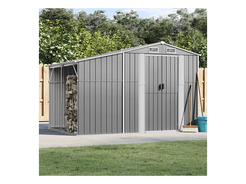Casetta da giardino grigia 277x192,5x179 cm in acciaio zincato