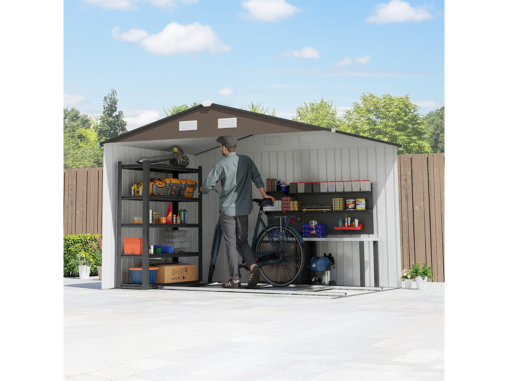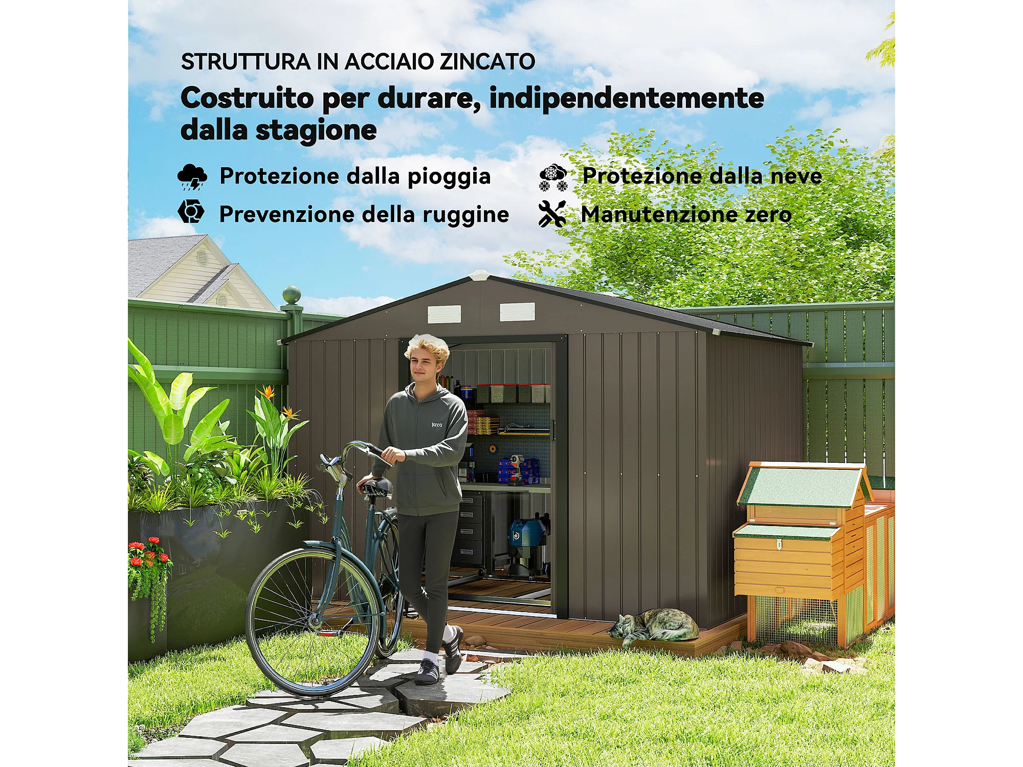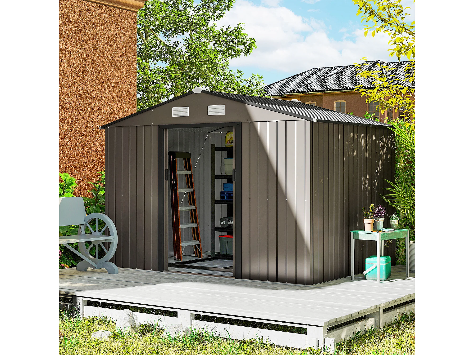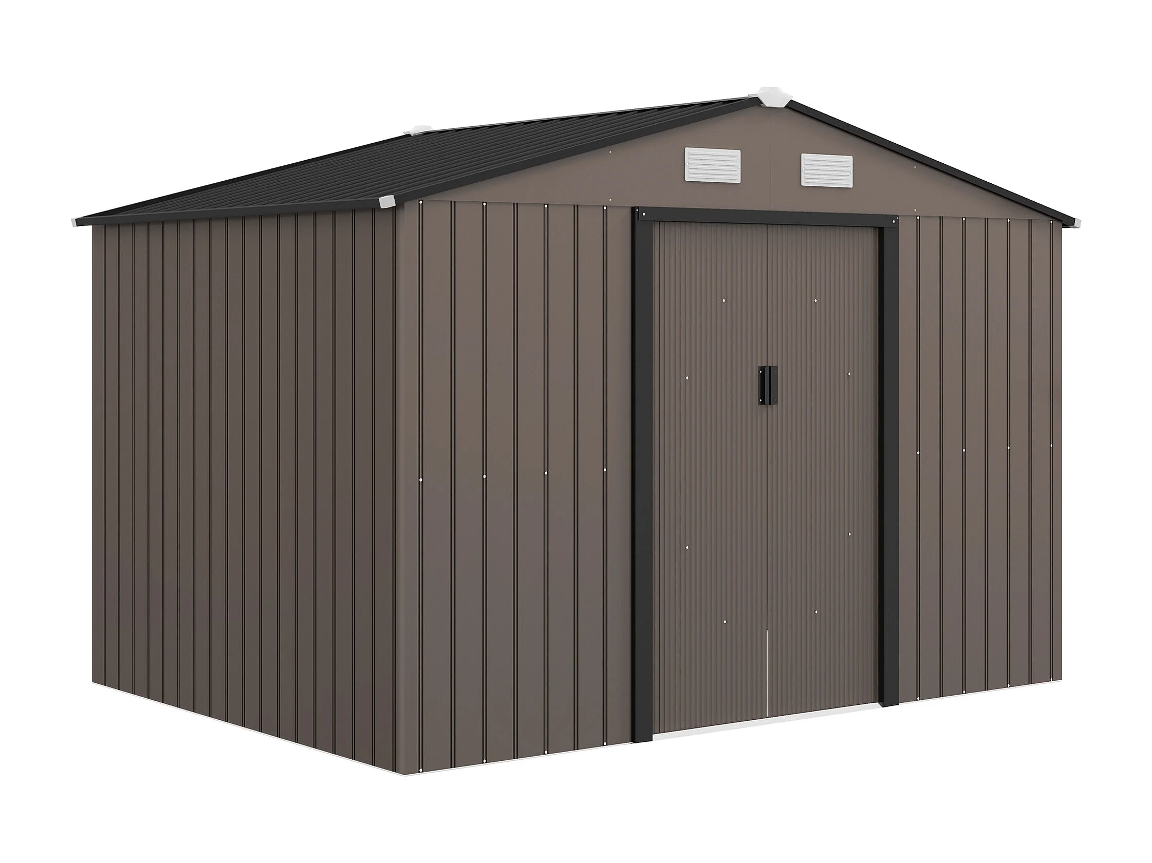 Casetta da giardino in acciaio con 2 porte scorrevoli marrone