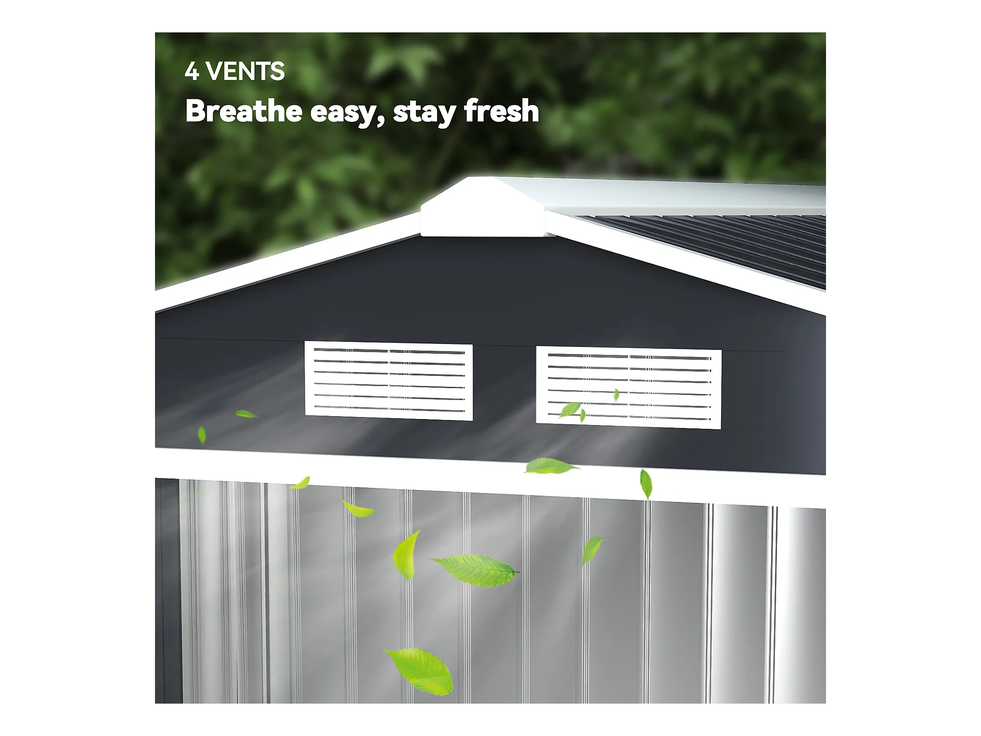 Capanno attrezzi in acciaio con 2 porte e 4 prese d'aria