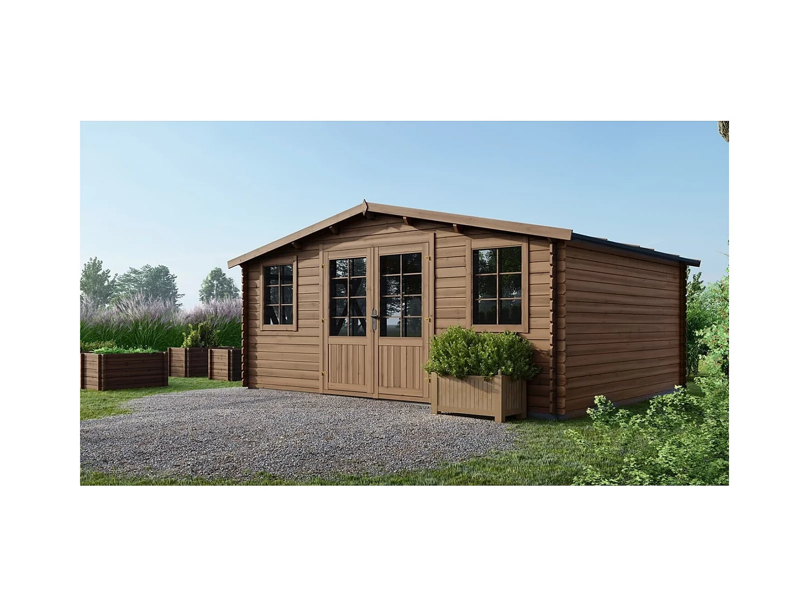 Casetta da giardino in legno - 34.80m2 - 5.90x5.90m - impregnata - 45mm - colore: marrone - DOM656 - ALTANKA