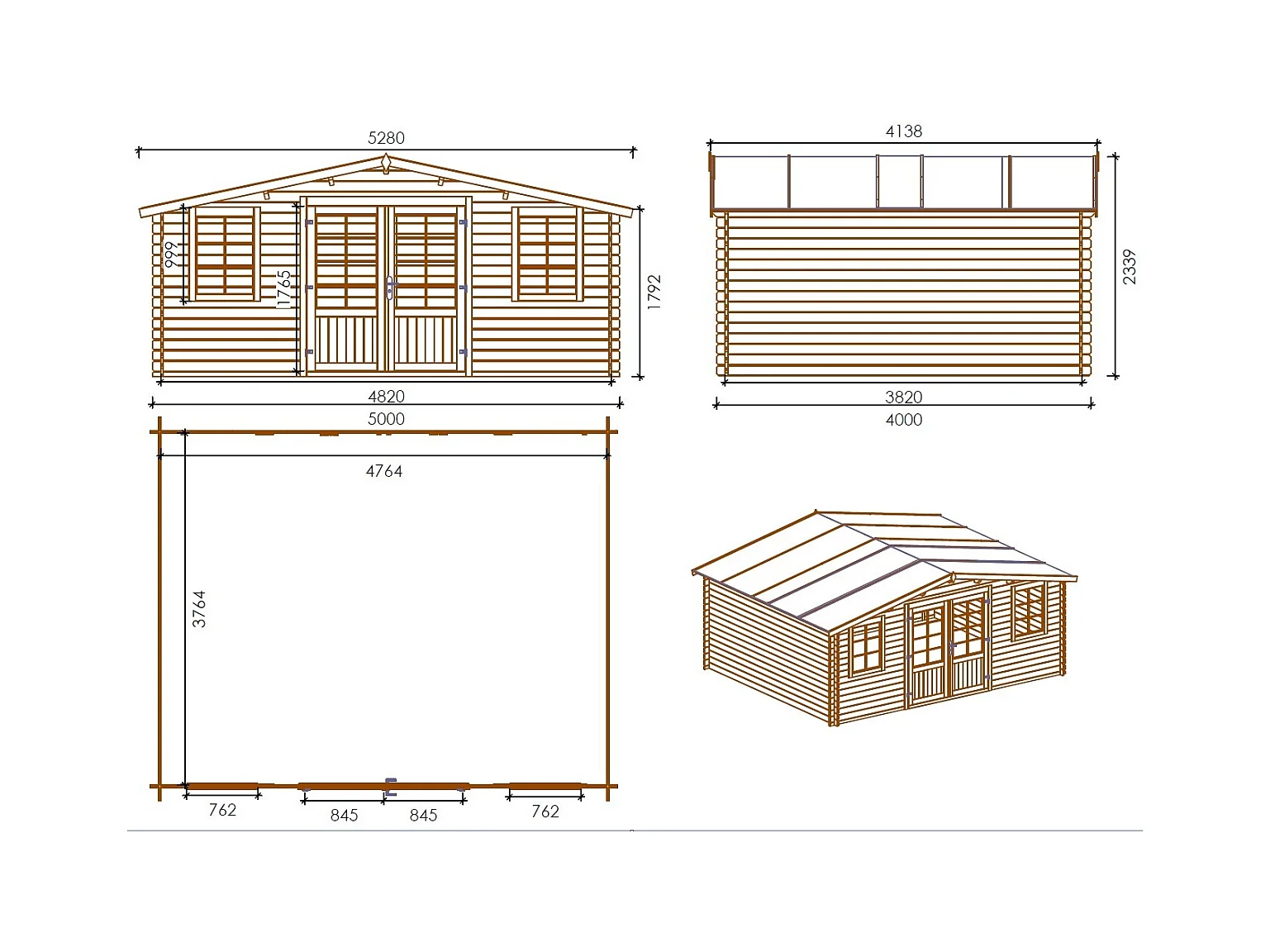 Casetta da giardino in legno - 20.00m2 - 5.00x4.00m - impregnata - 45mm - colore: marrone - DOM376 - ALTANKA