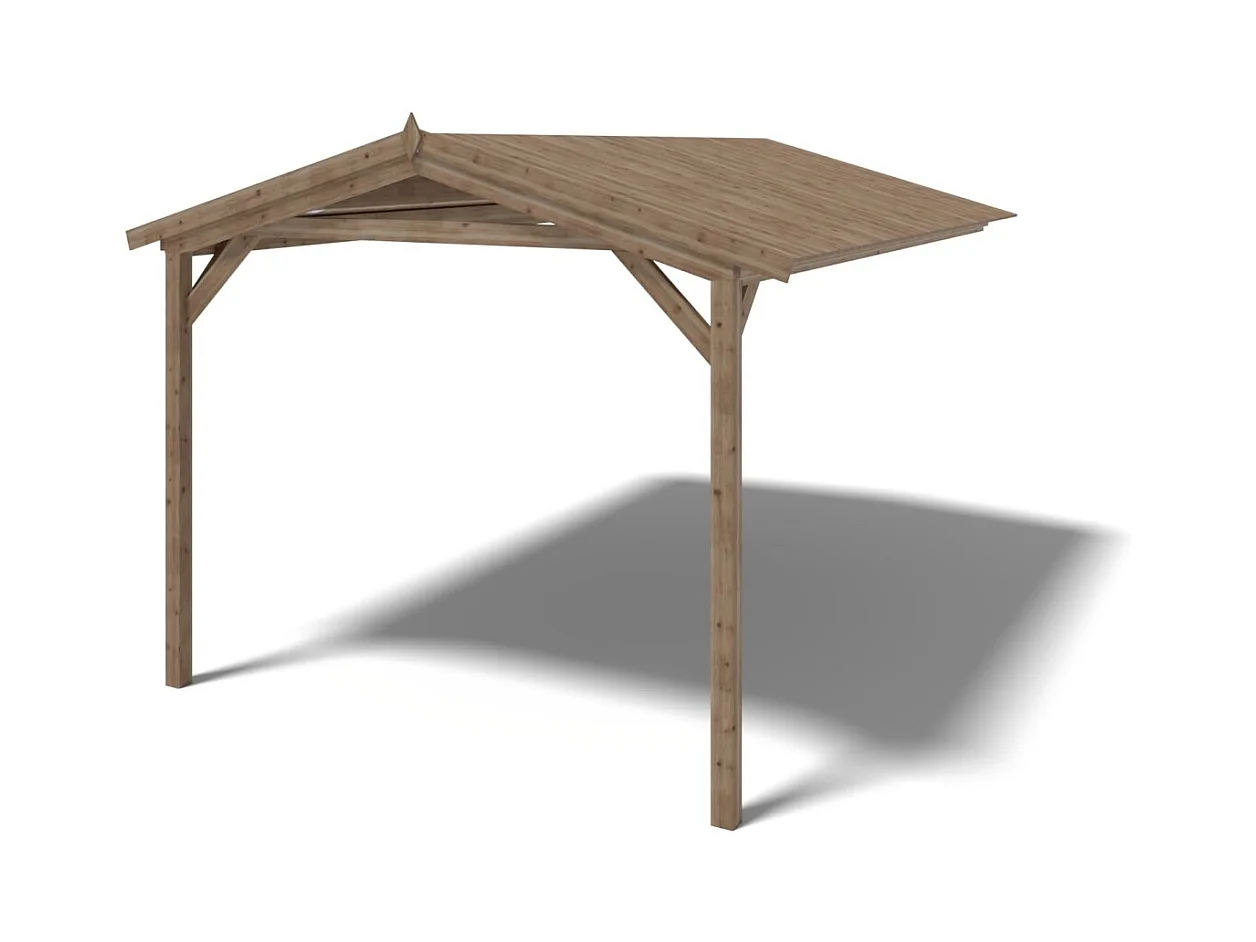 Casetta da giardino in legno con veranda e tettoia - 18.00m2 - 3.00x3.00m - impregnata - 28mm - colore: marrone - DOM427+DOM539+DOM540+POD05 - ALTANKA