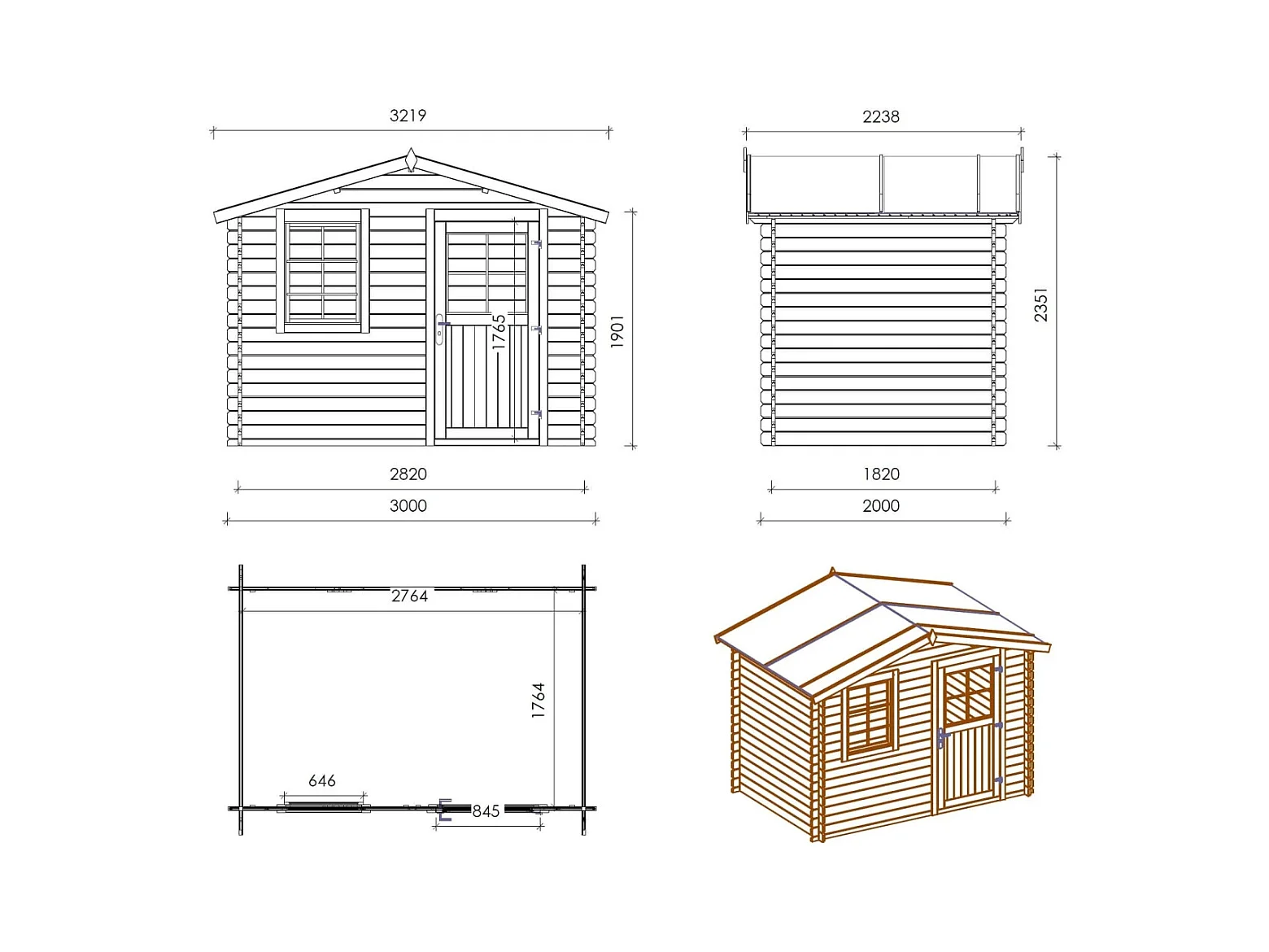 Casetta da giardino in legno - 6.00m2 - 3.00x2.00m - 28mm - colore: naturale - DOM472 - ALTANKA