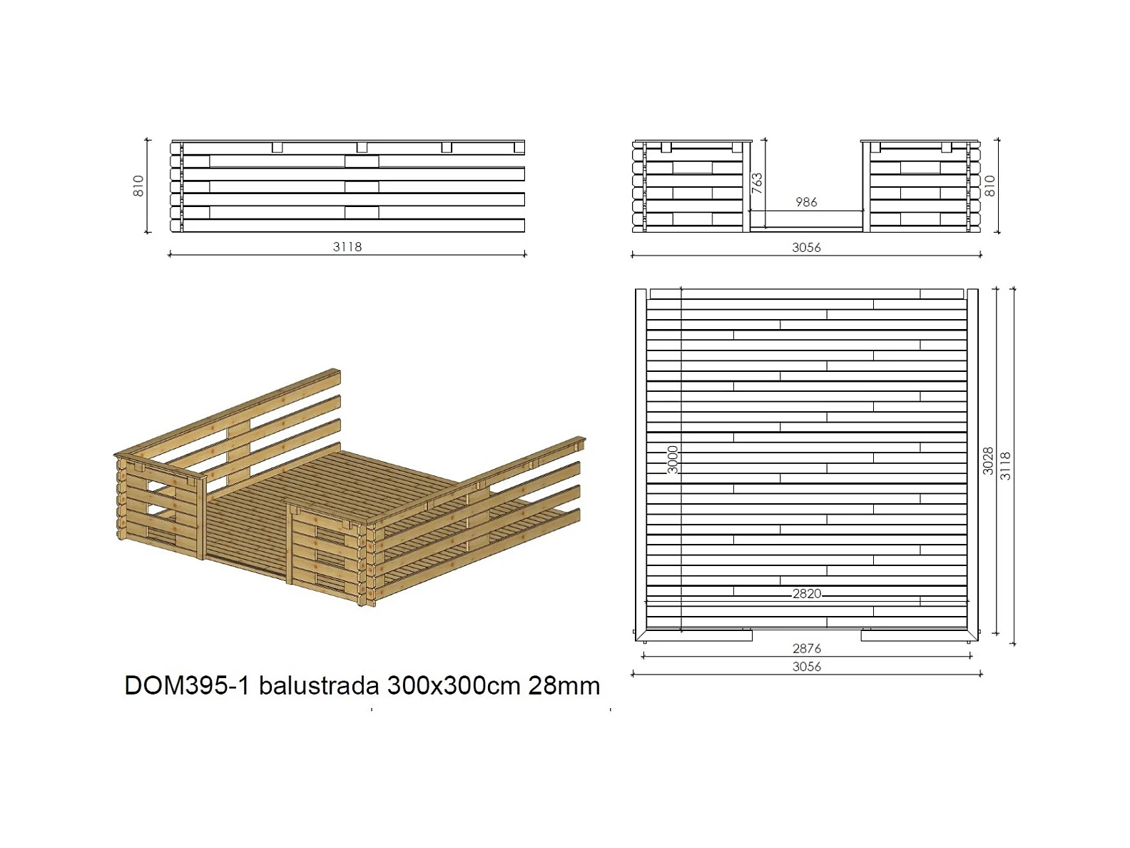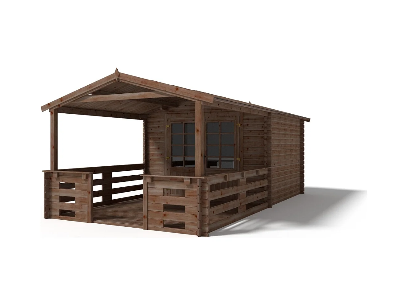 Casetta da giardino in legno con veranda e tettoia - 18.00m2 - 3.00x3.00m - impregnata - 28mm - colore: marrone - DOM427+DOM539+DOM540+POD05 - ALTANKA