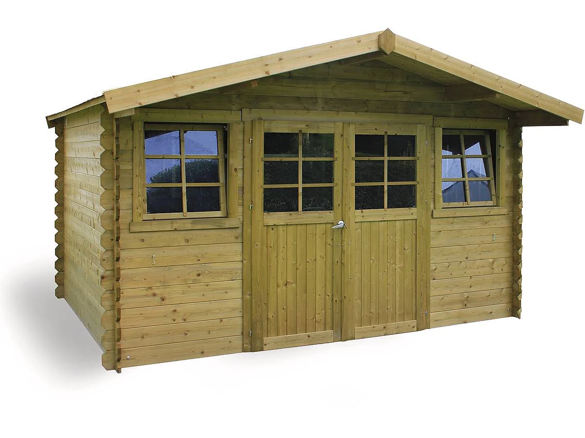 Casetta da giardino in legno "Dole" impregnato con doppia porta e finestre oscillo-battenti - 11,56 m²
