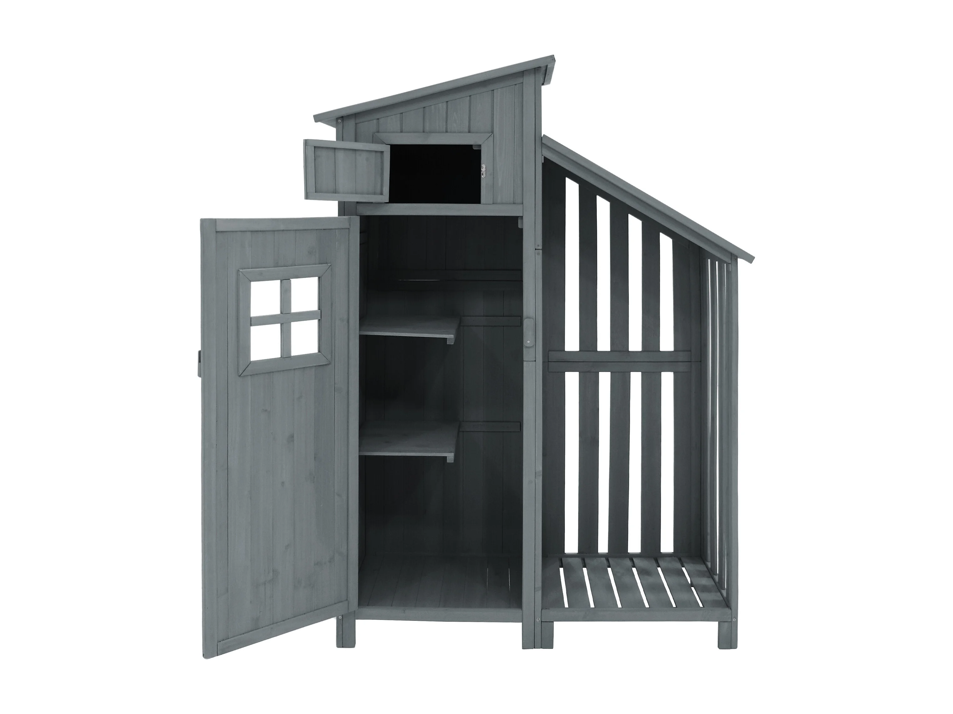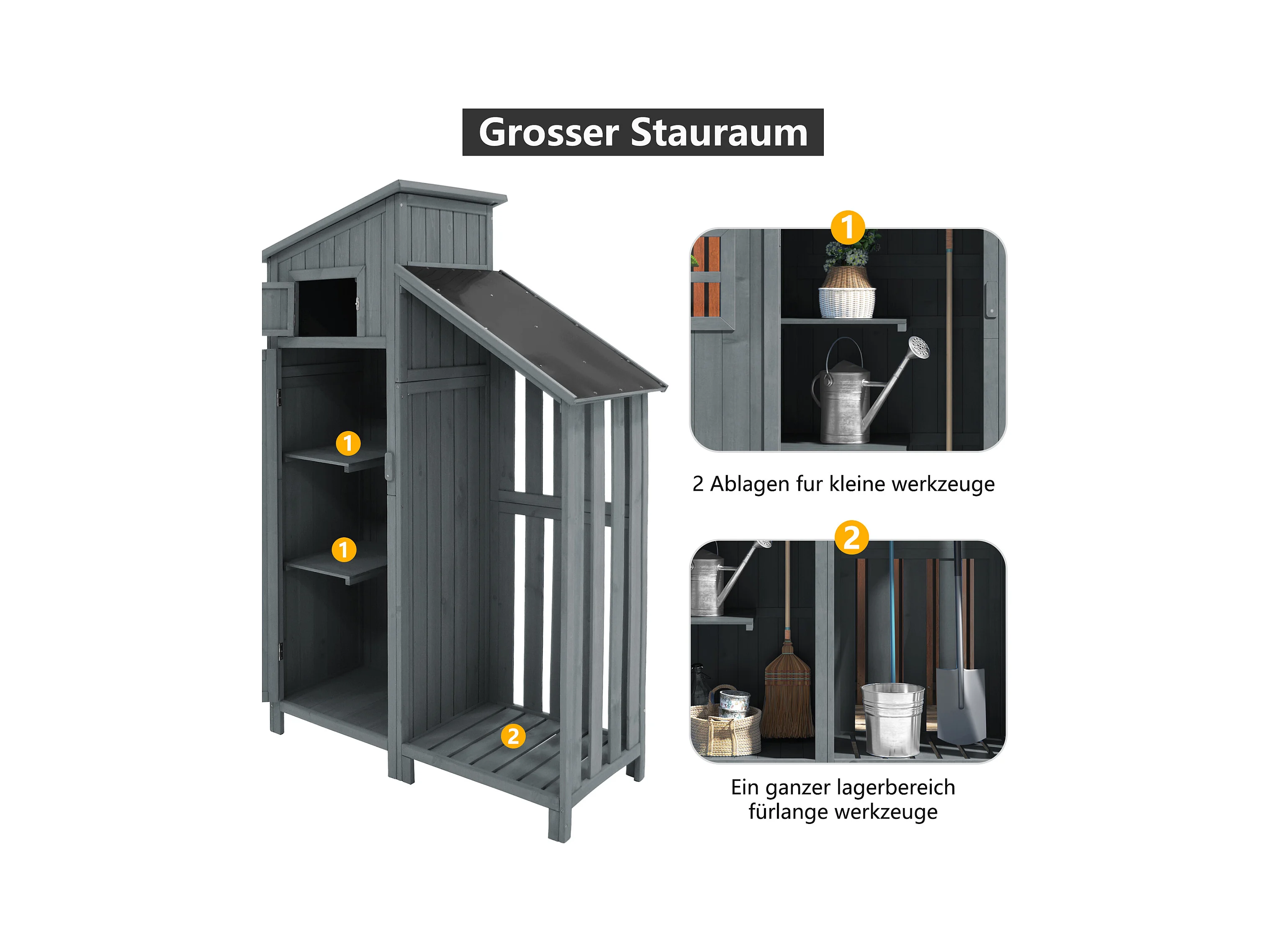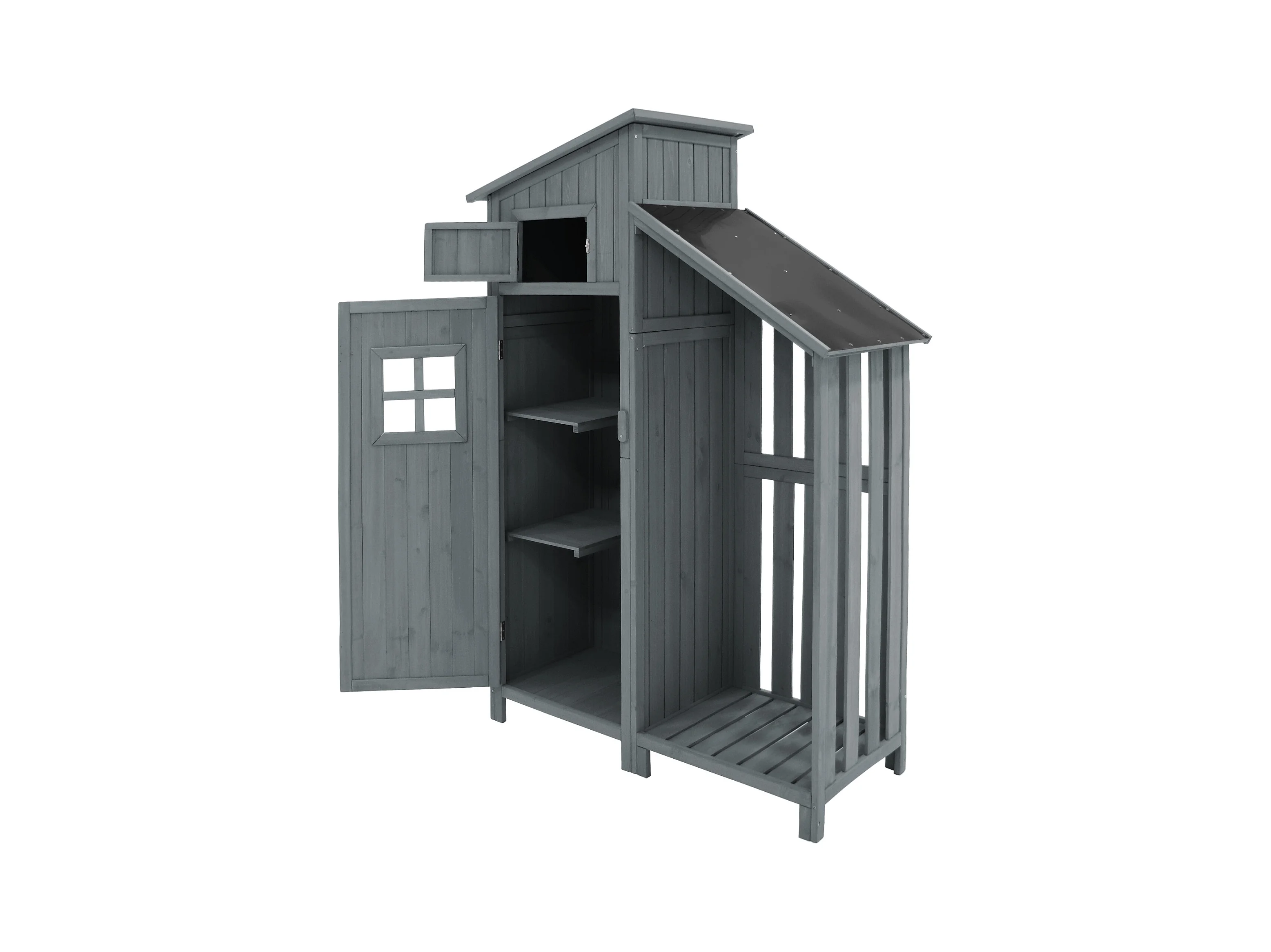 Casetta da giardino in legno massello con tetto spiovente in PVC - 2 ripiani 3 ante con chiusura - L124 x P46 x H174 cm - Grigio