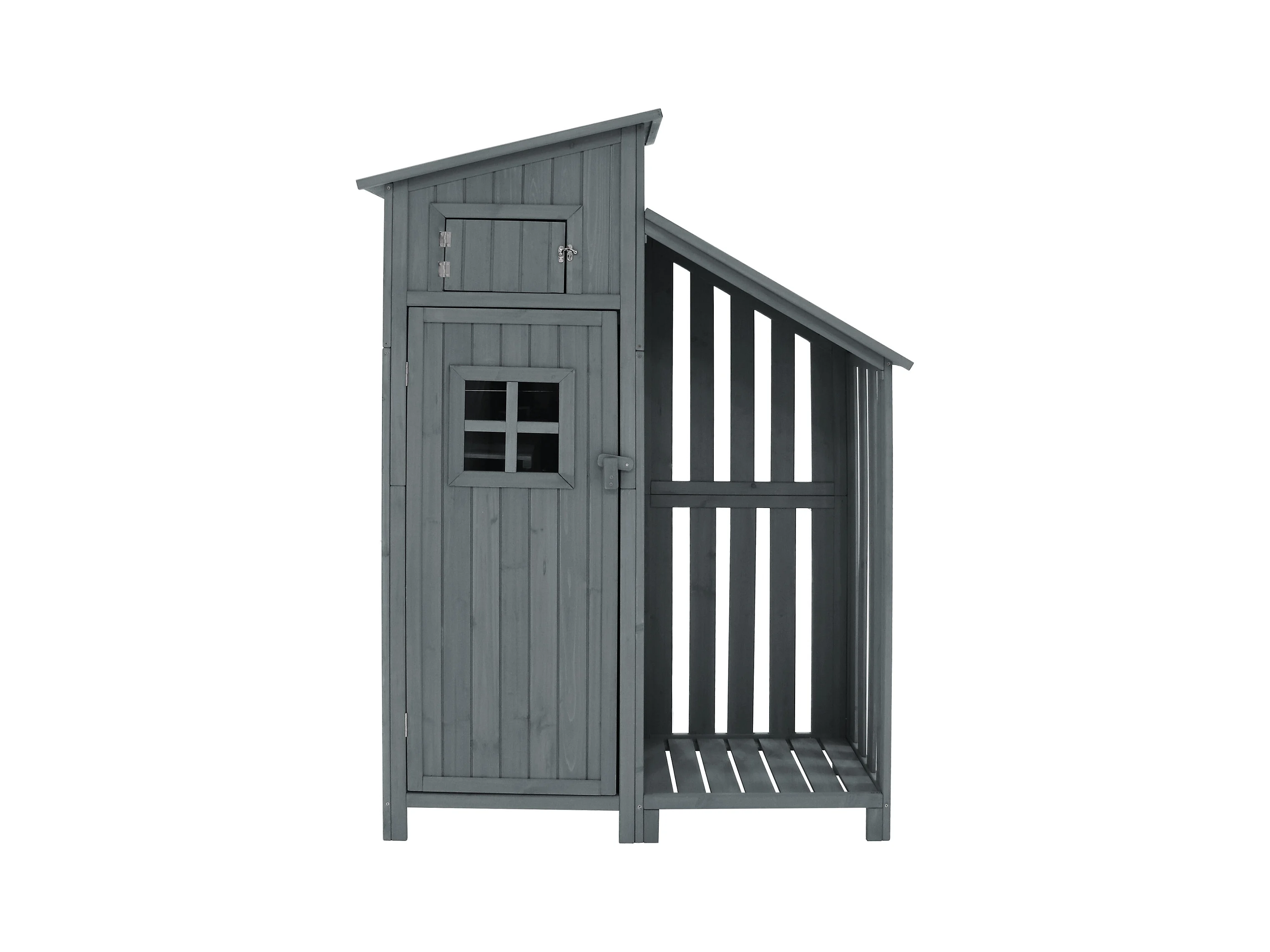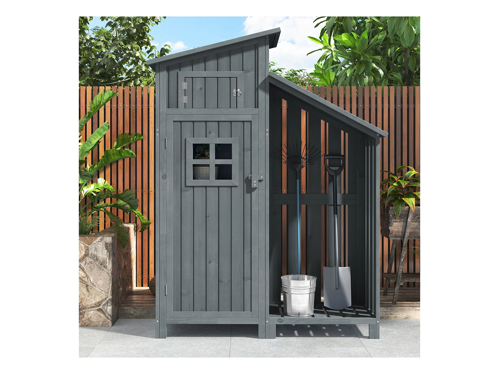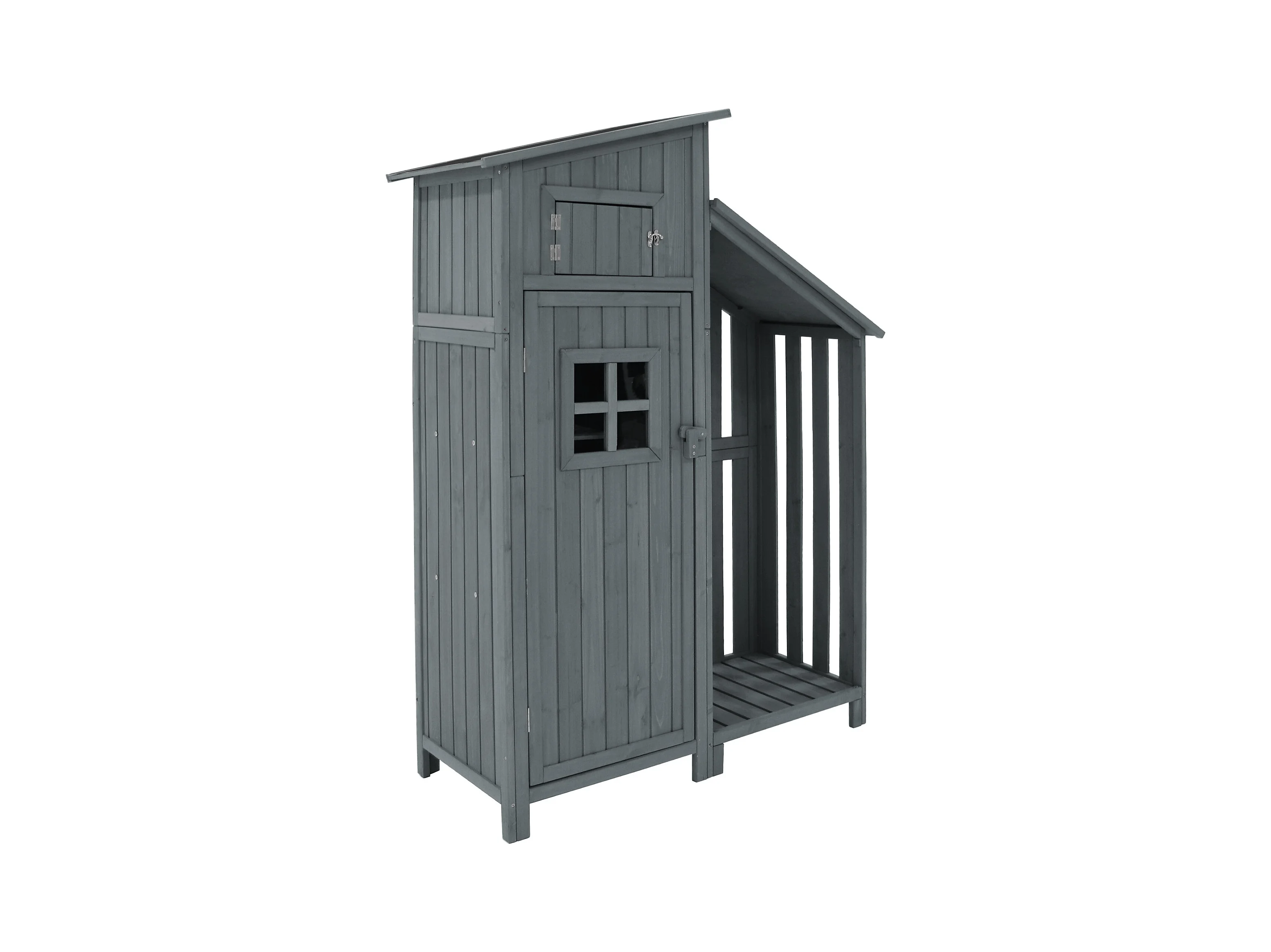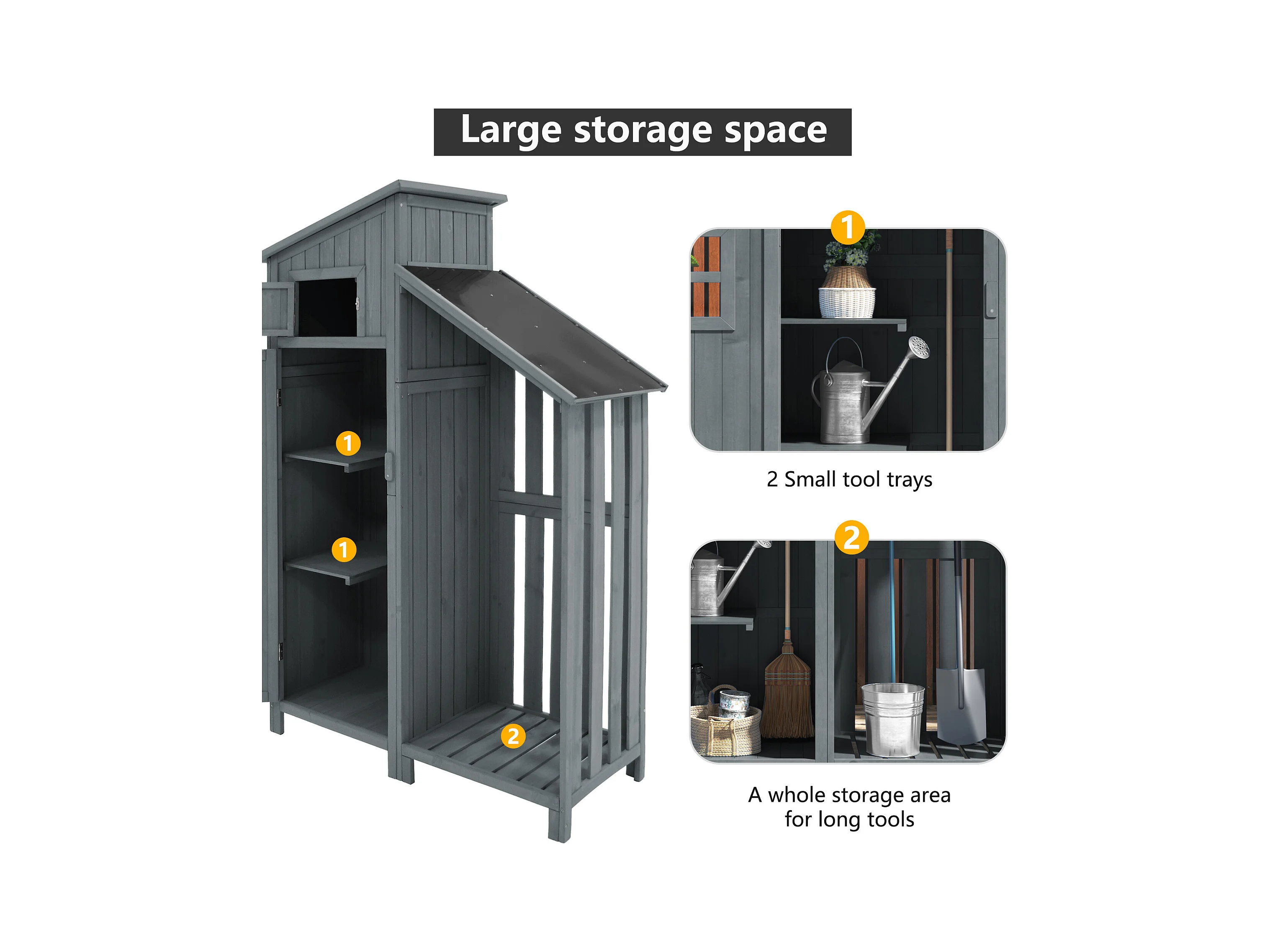 Casetta da giardino in legno massello con tetto spiovente in PVC - 2 ripiani 3 ante con chiusura - L124 x P46 x H174 cm - Grigio