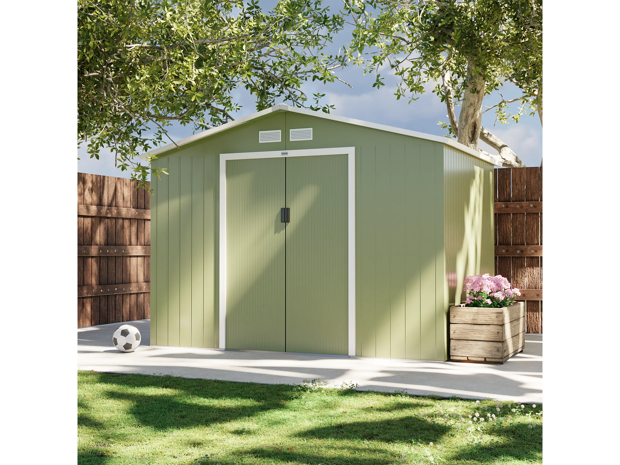 Casetta da giardino in metallo con kit di ancoraggio, 5.9m², verde e