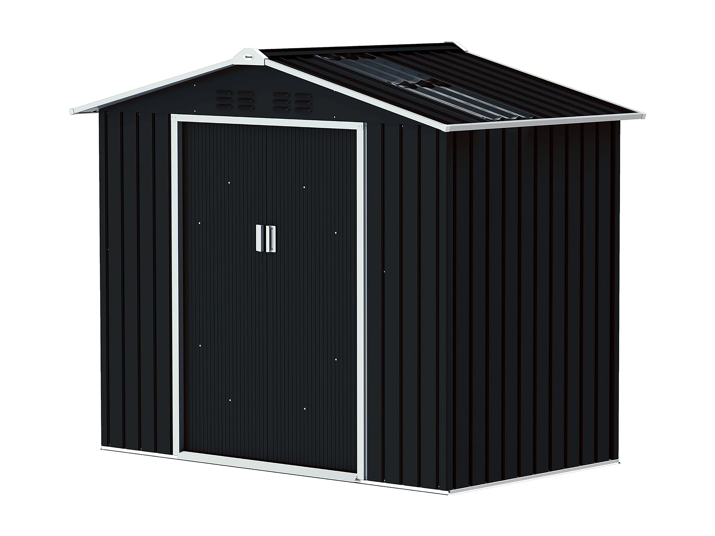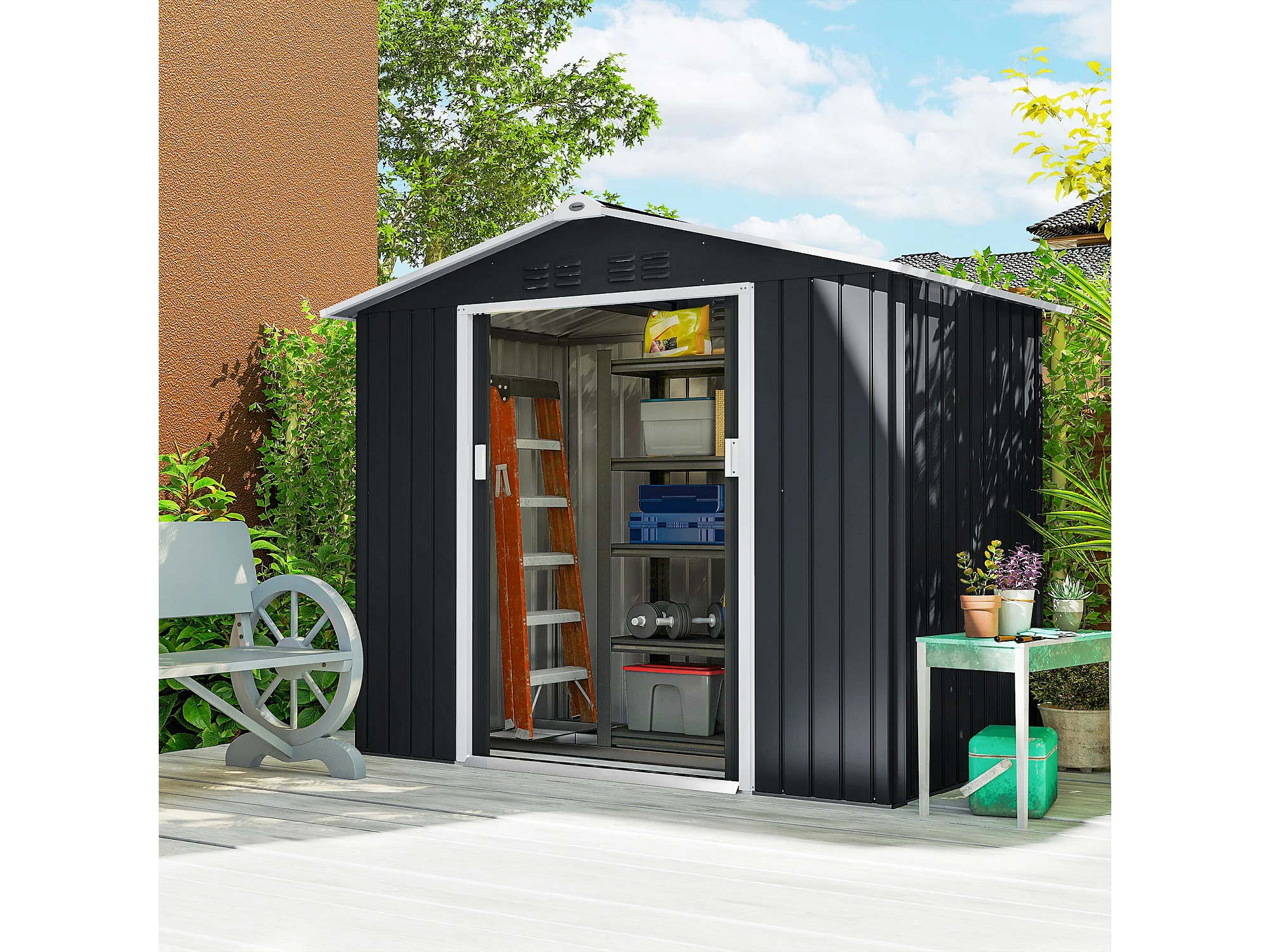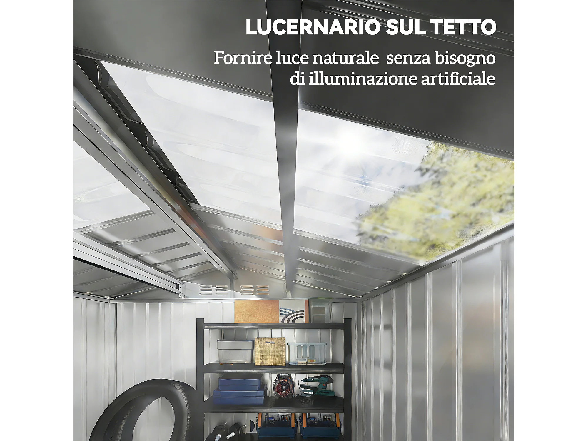 Casetta da giardino in metallo con porta scorrevole grigio scuro