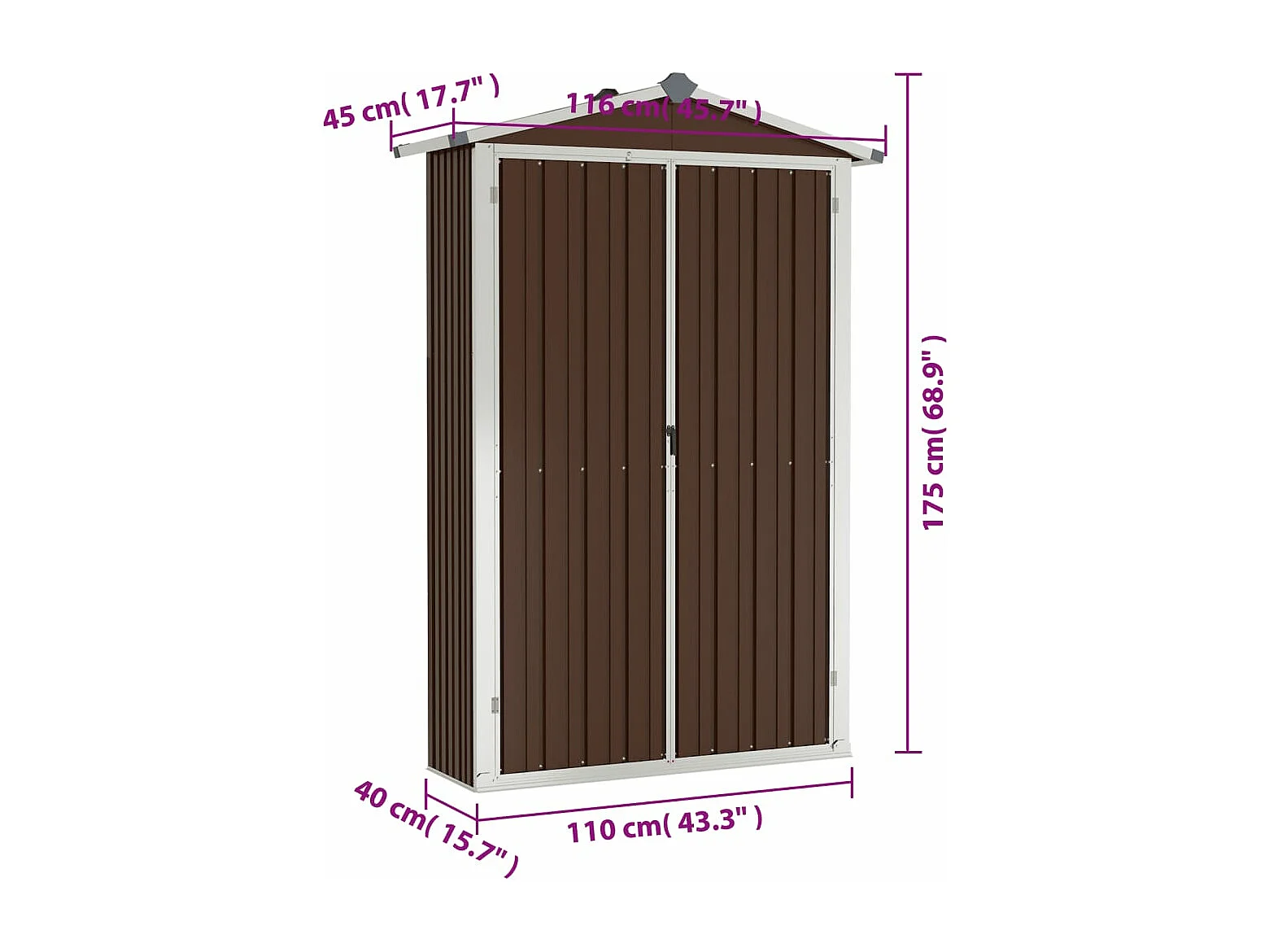 Casetta da giardino Marrone 116x45x175 cm Acciaio zincato