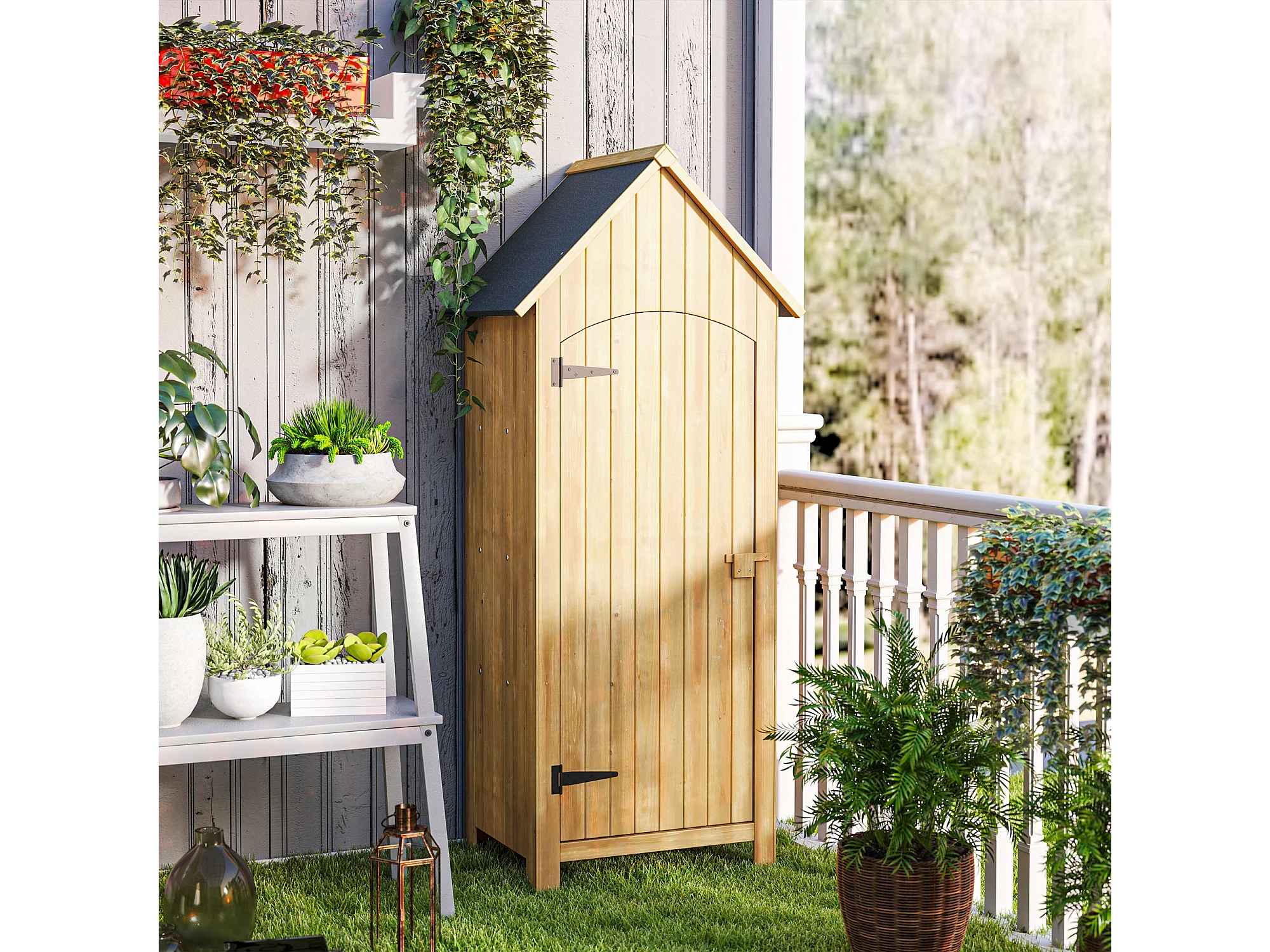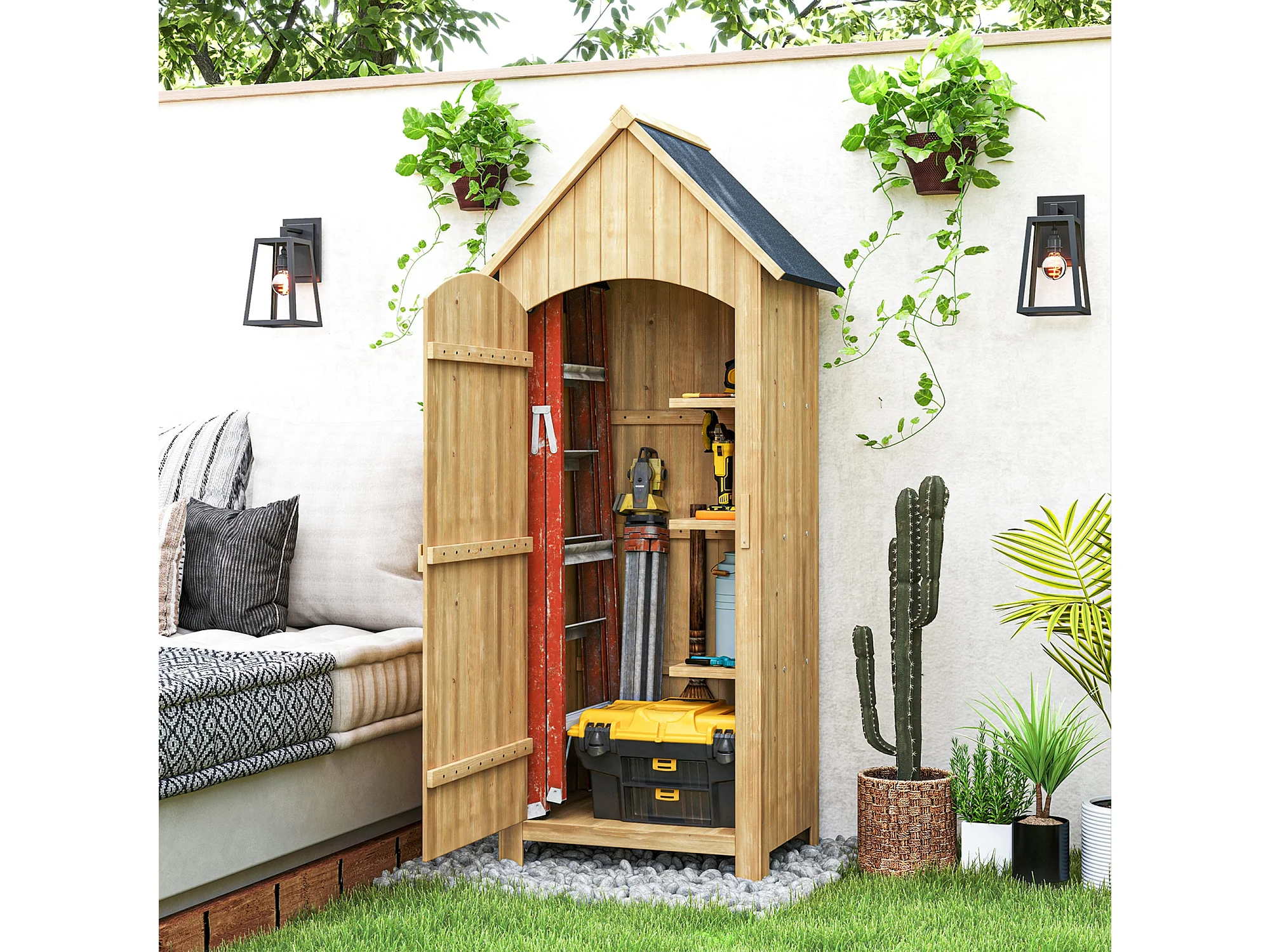 Casetta da giardino porta attrezzi con porte e mensole in legno