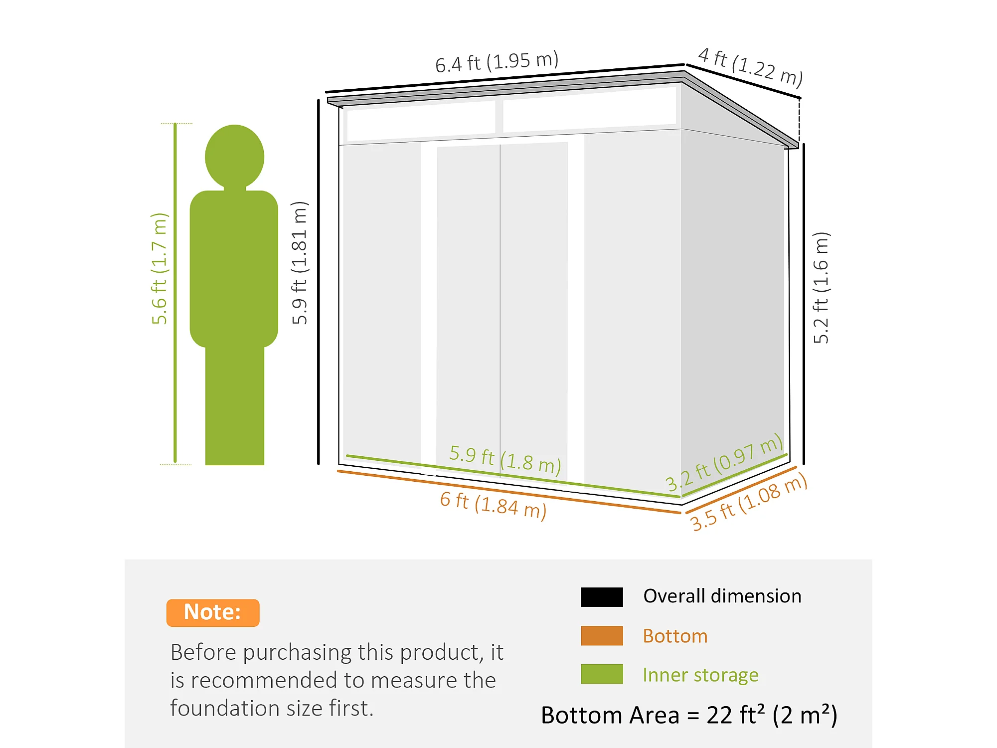 Casetta da giardino porta attrezzi in acciaio 1.2x2x1.8m con base