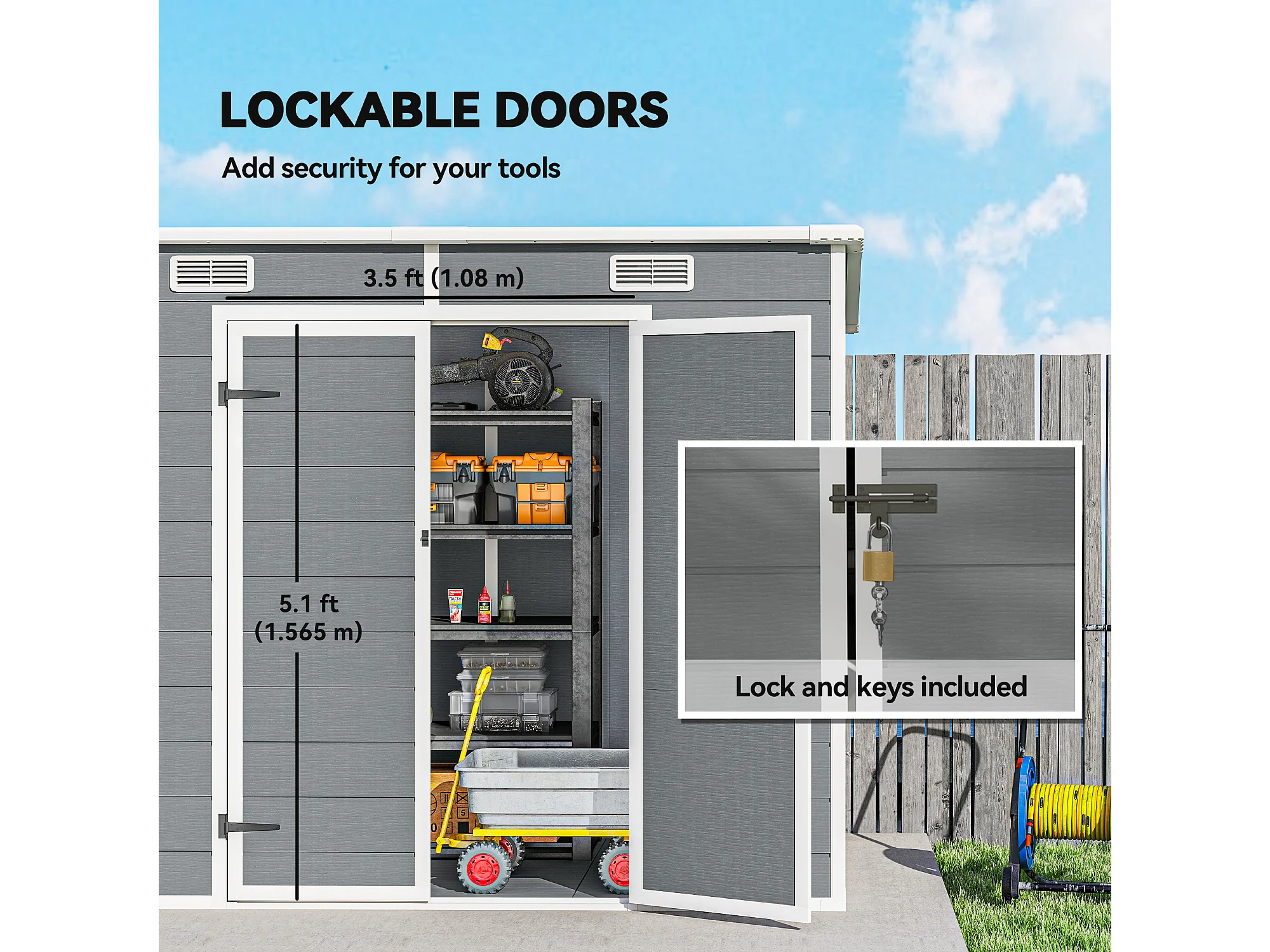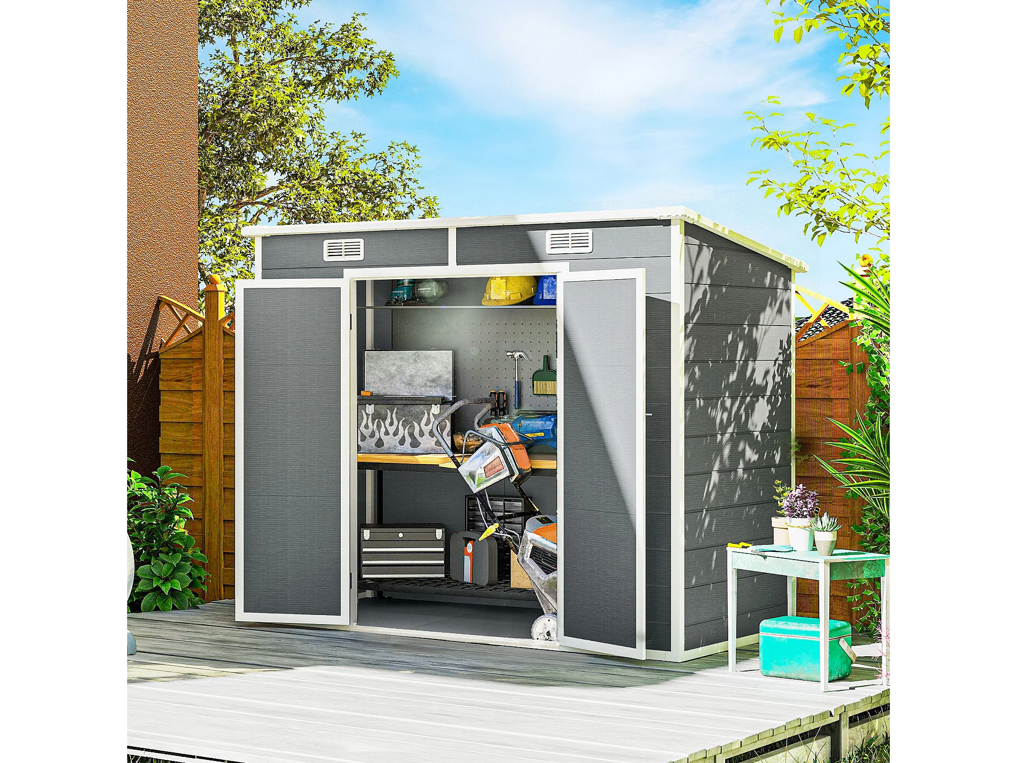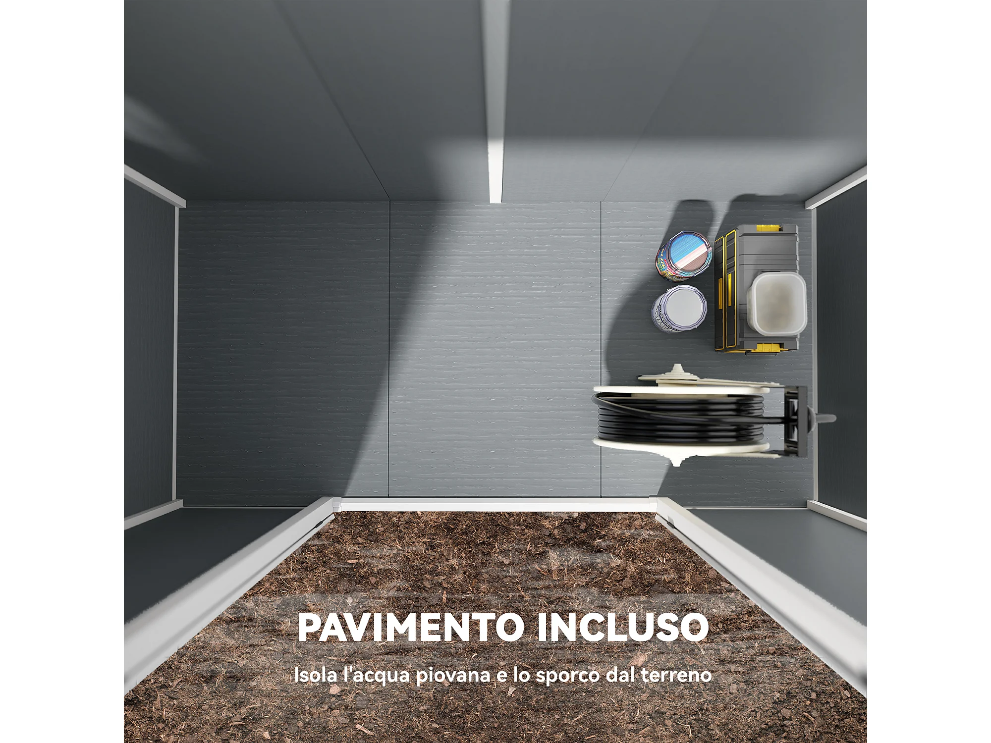 Casetta da giardino porta attrezzi in finitura effetto legno graffiato con pavimento