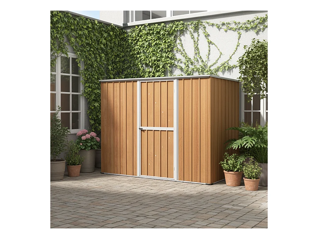 Capanno per esterno in lamiera di acciaio zincata 275x175cm x h 212cm - 87 kg - 4,81mq - FINITURA LEGNO