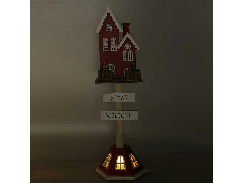 Casetta legno rosso con led cm 17x15,3h56,5