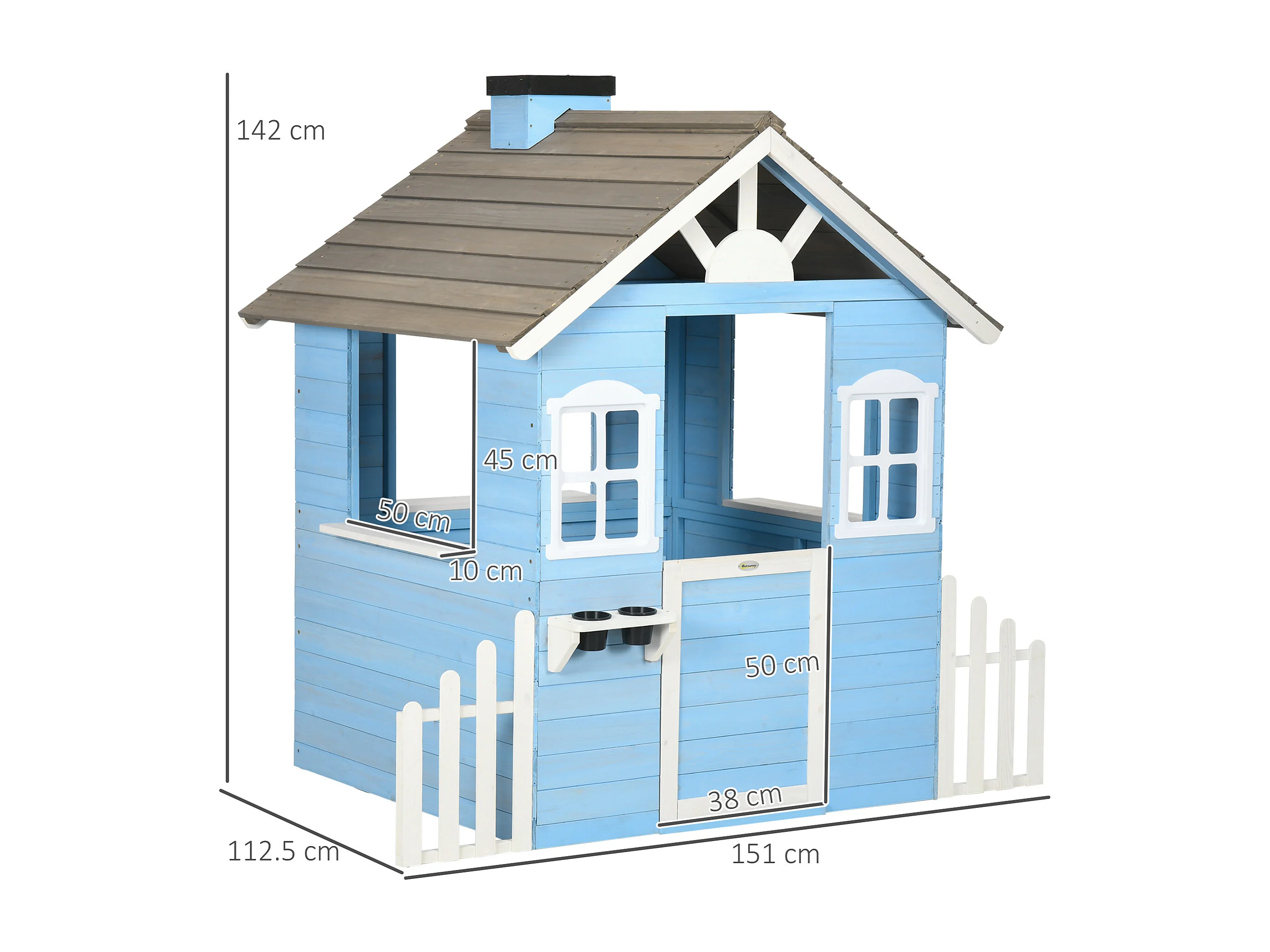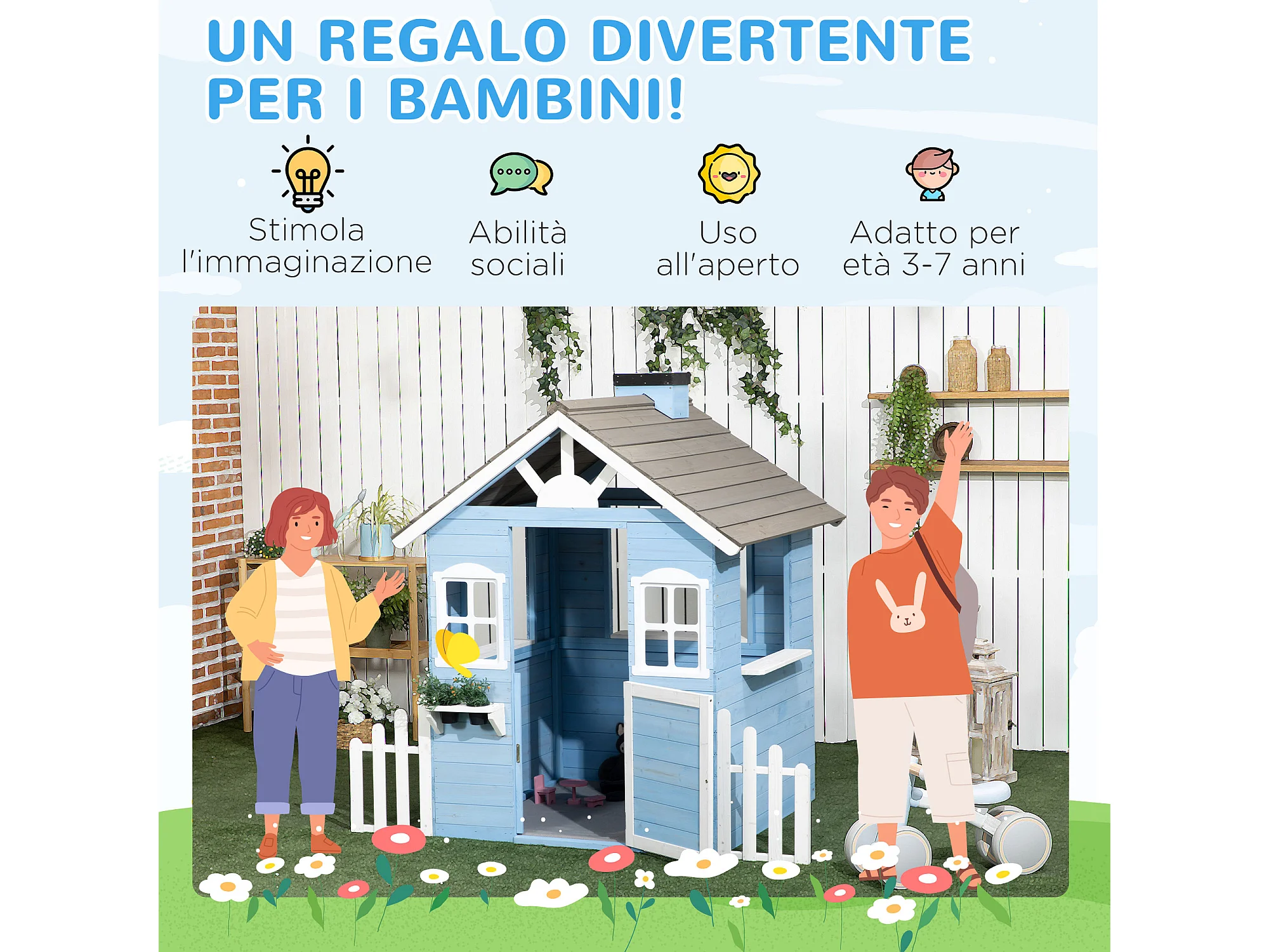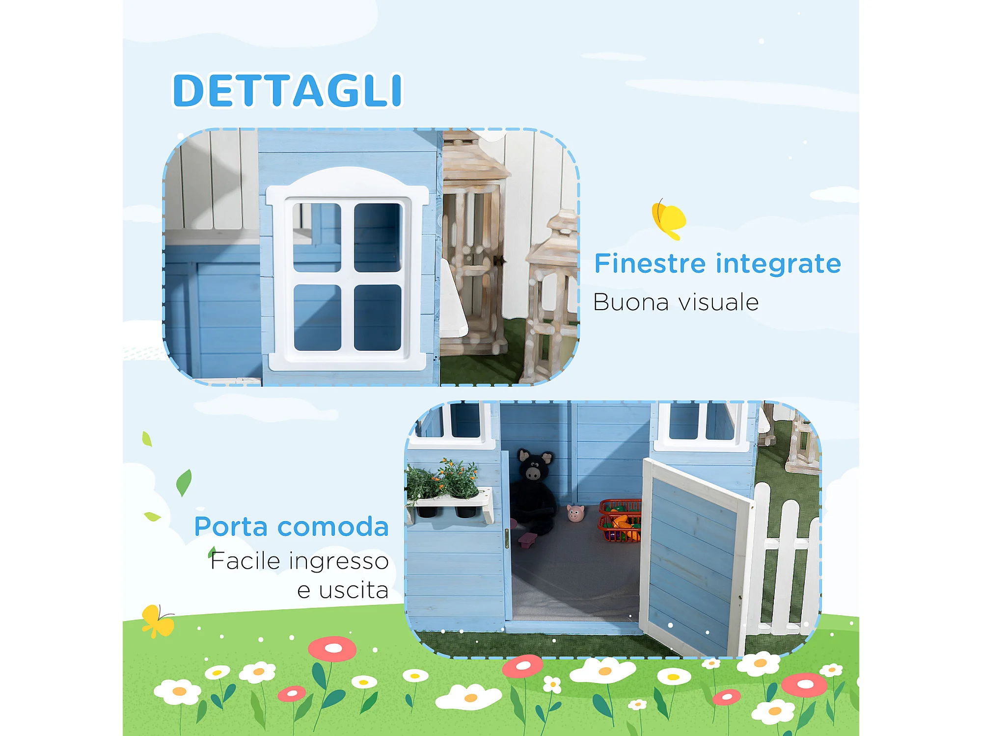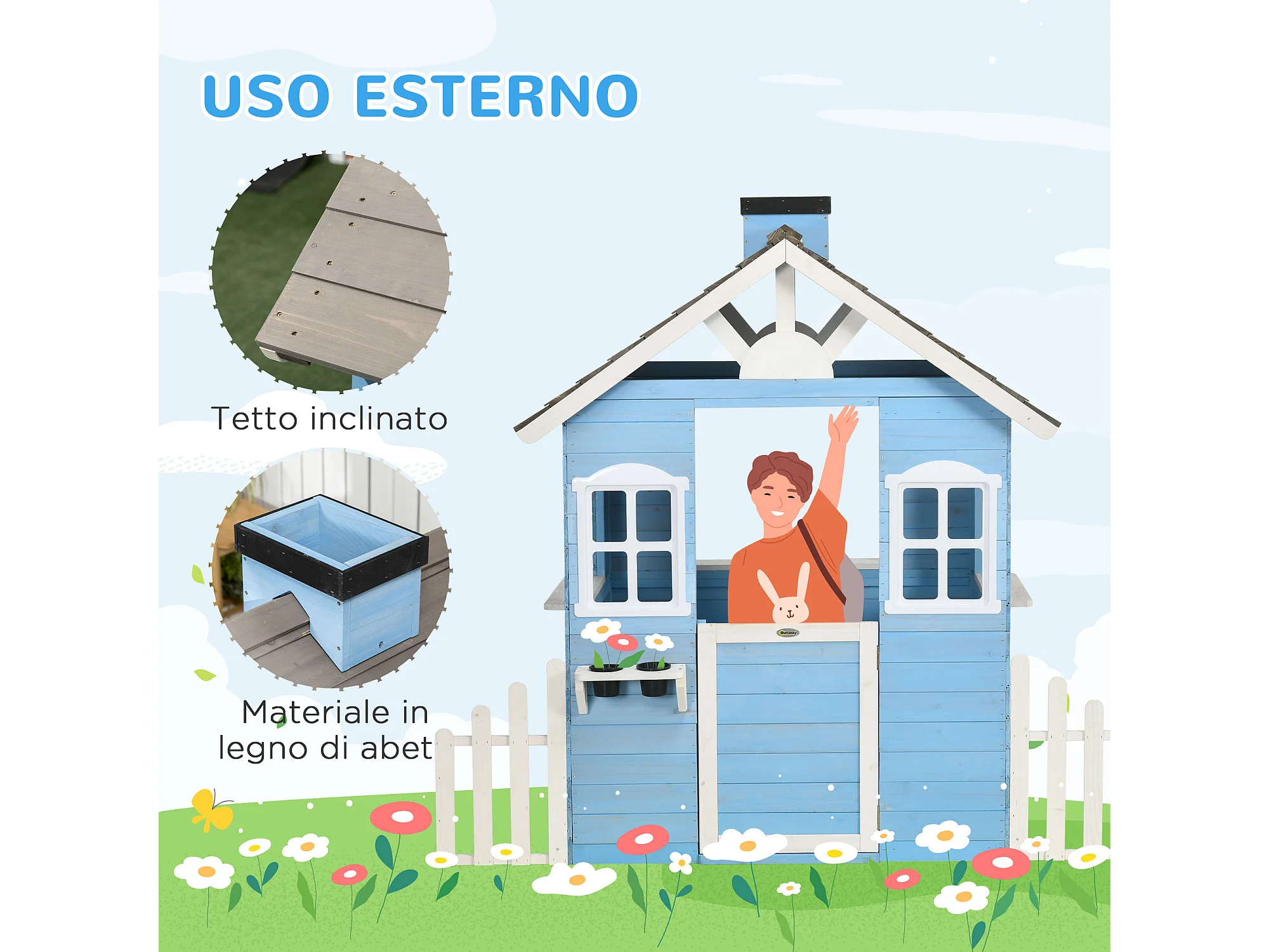 Casetta per bambini 3-7 anni in legno di abete per uso esterno blu