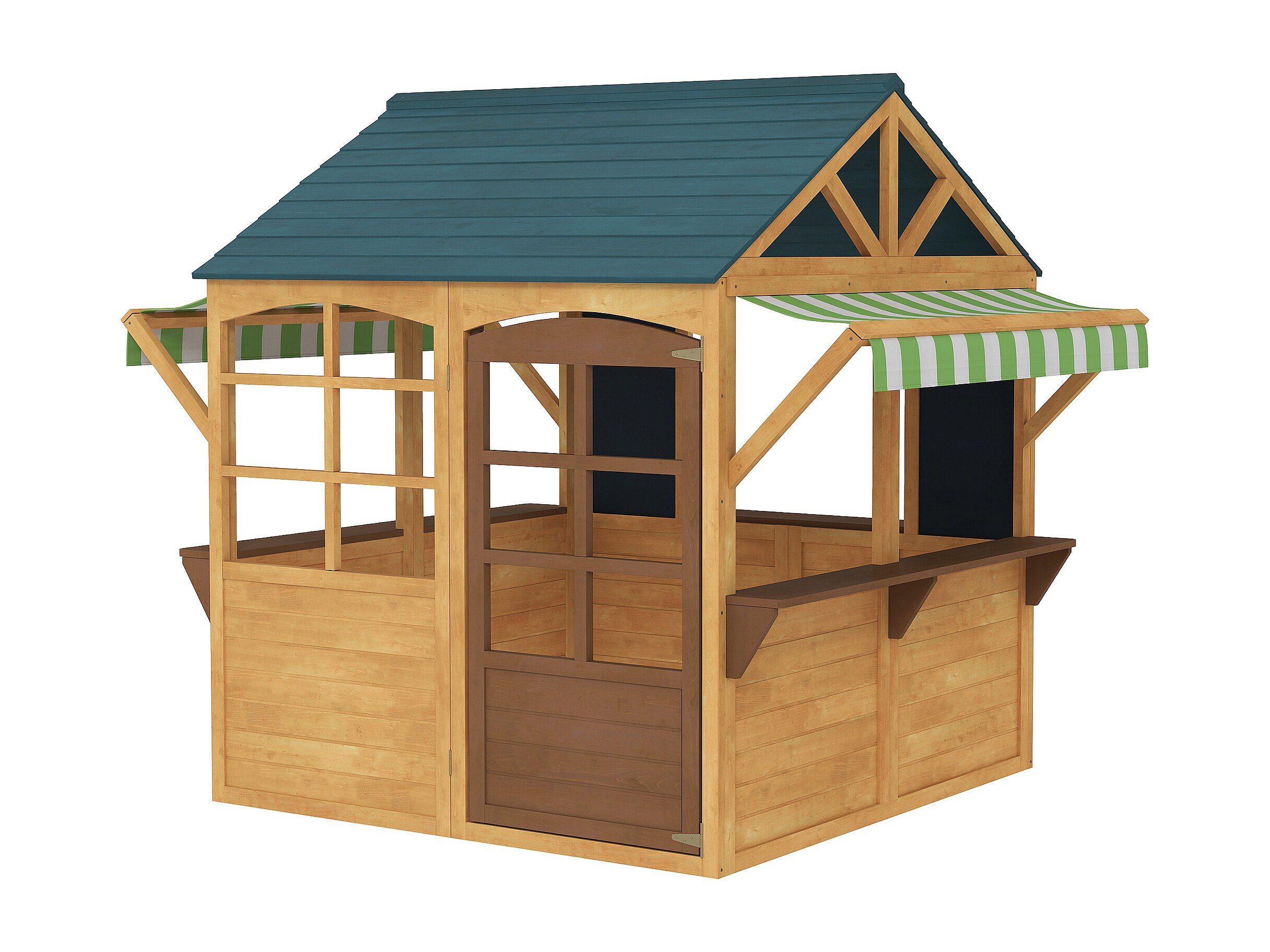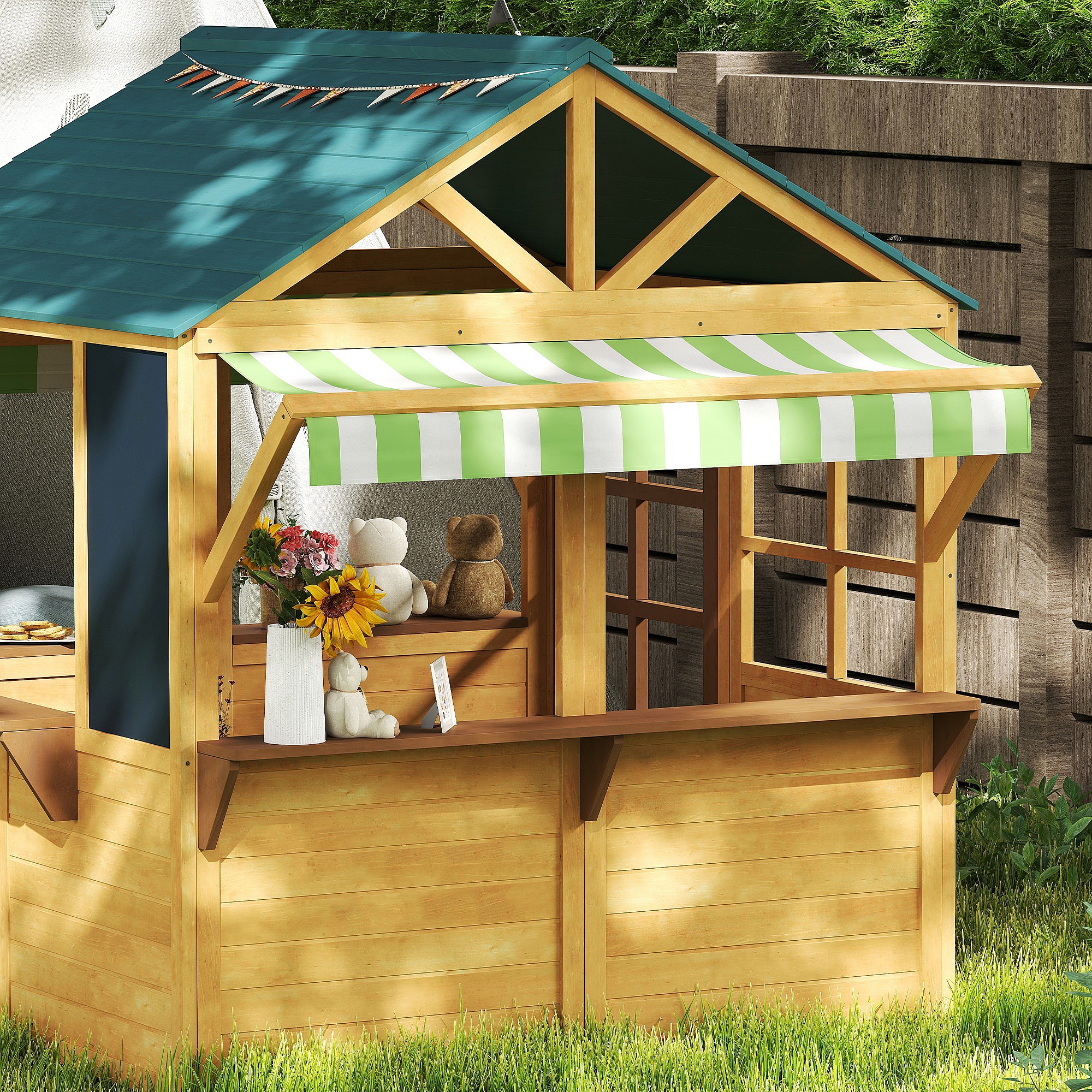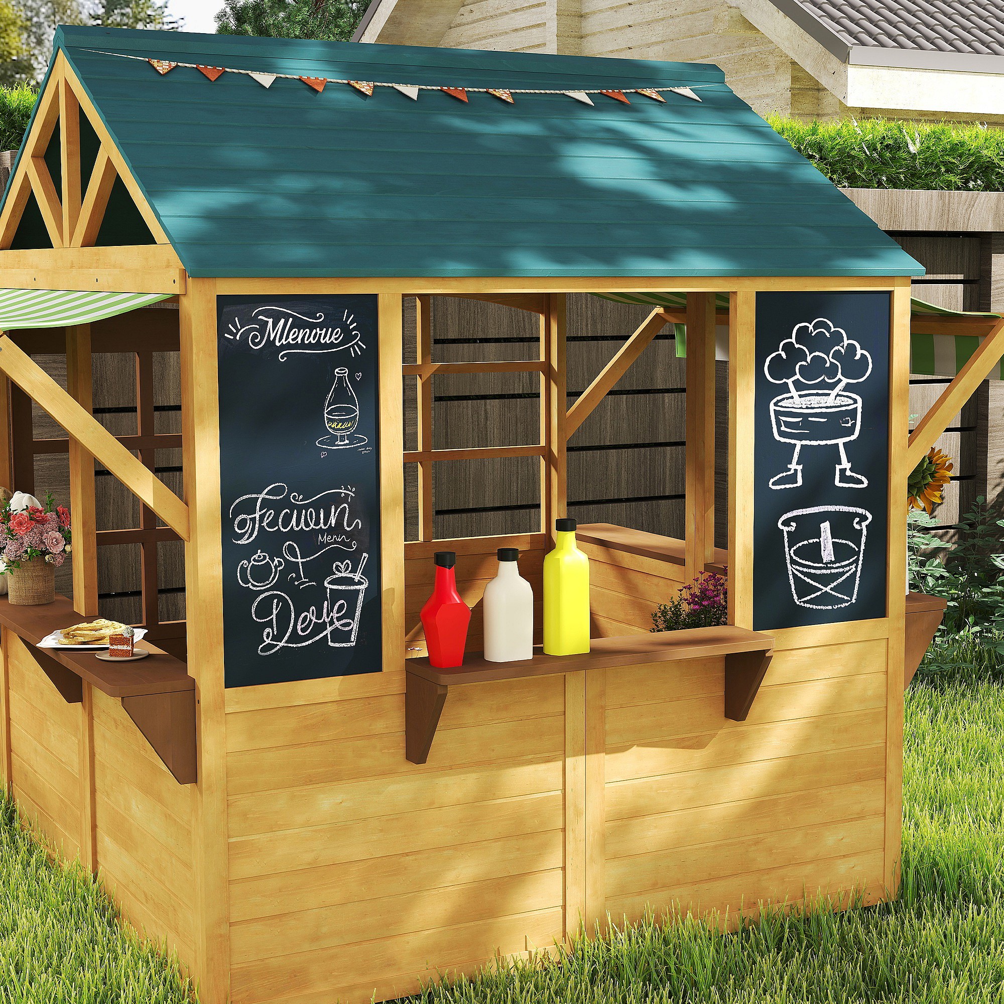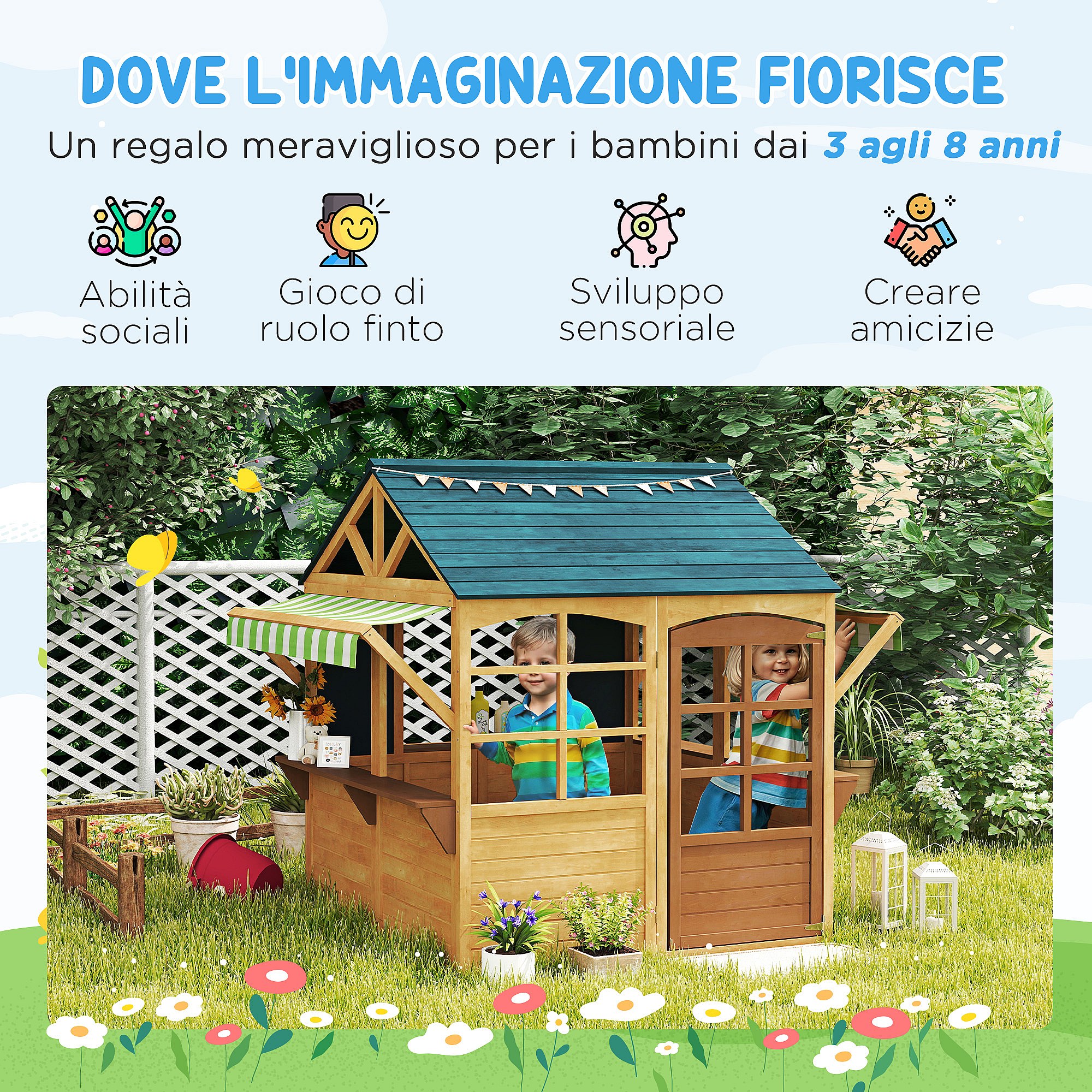 Casetta per bambini 3-8 anni con 5 finestre e 2 lavagne marrone e blu