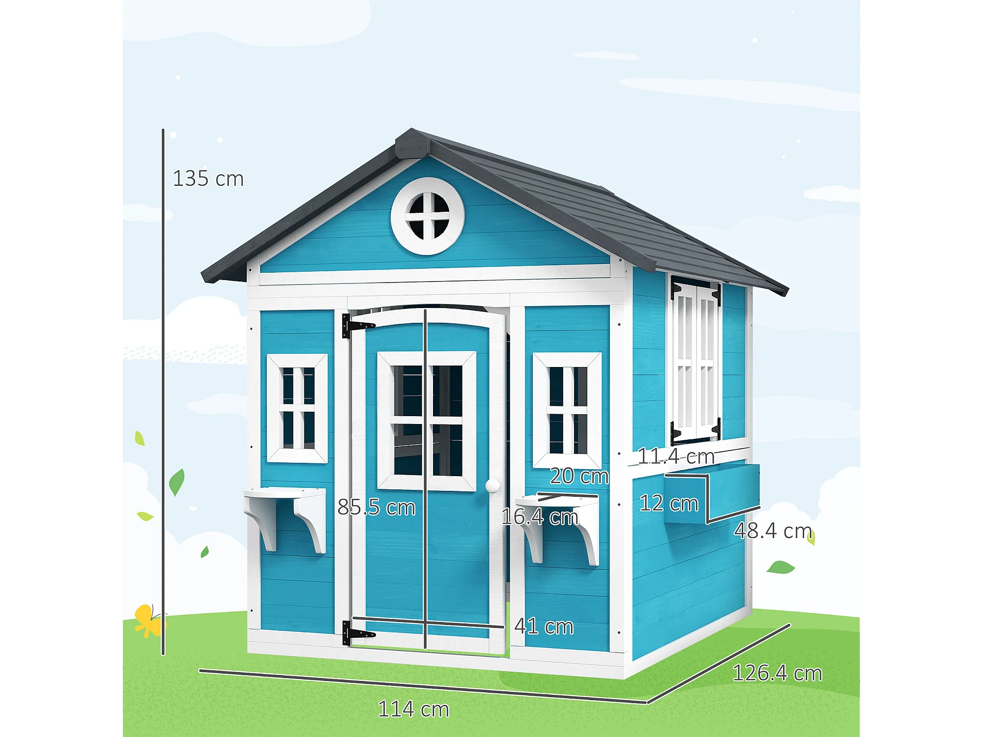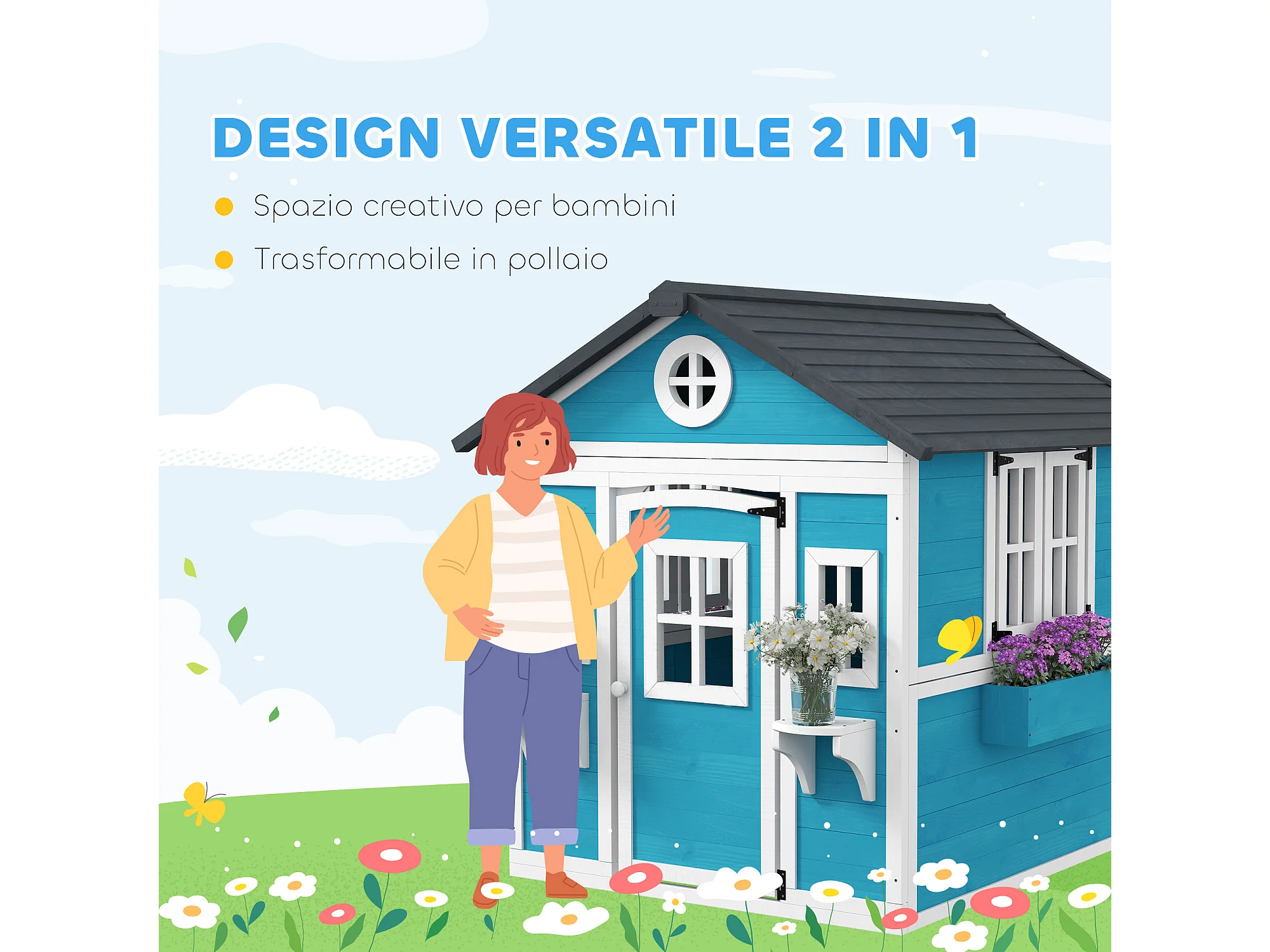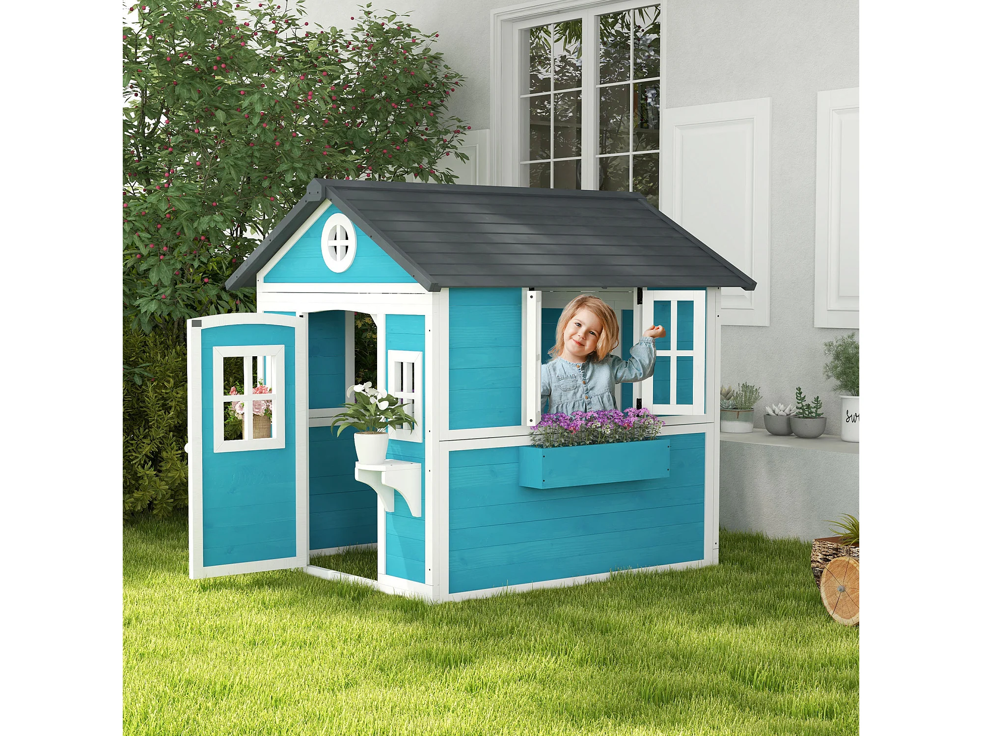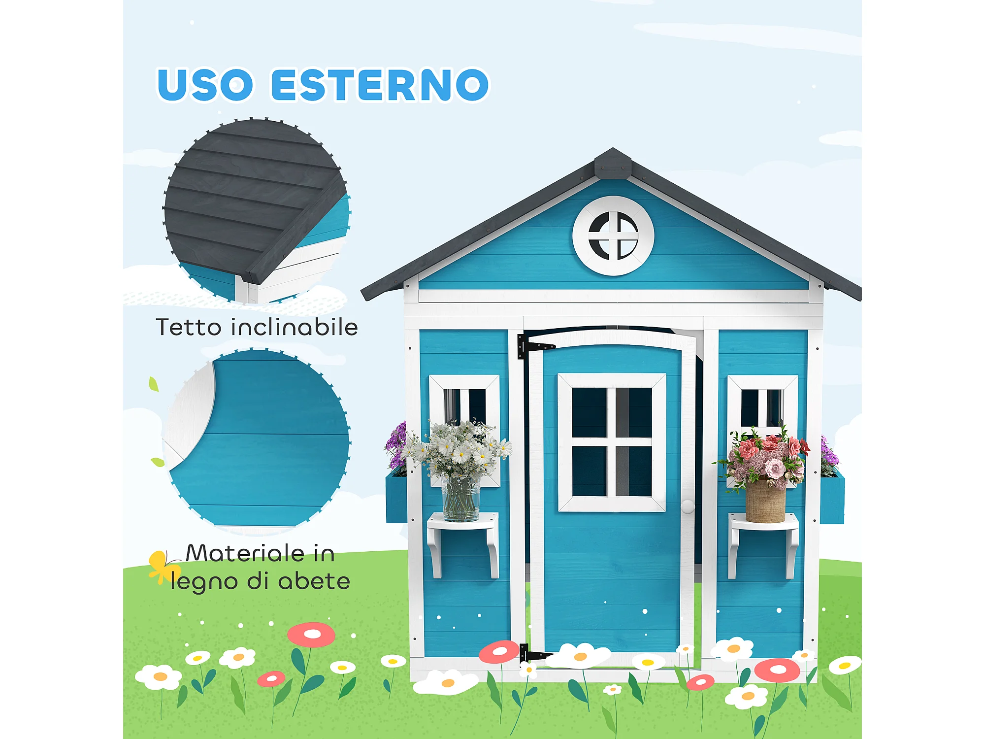 Casetta per bambini 3-8 anni con tetto inclinabile in legno blu