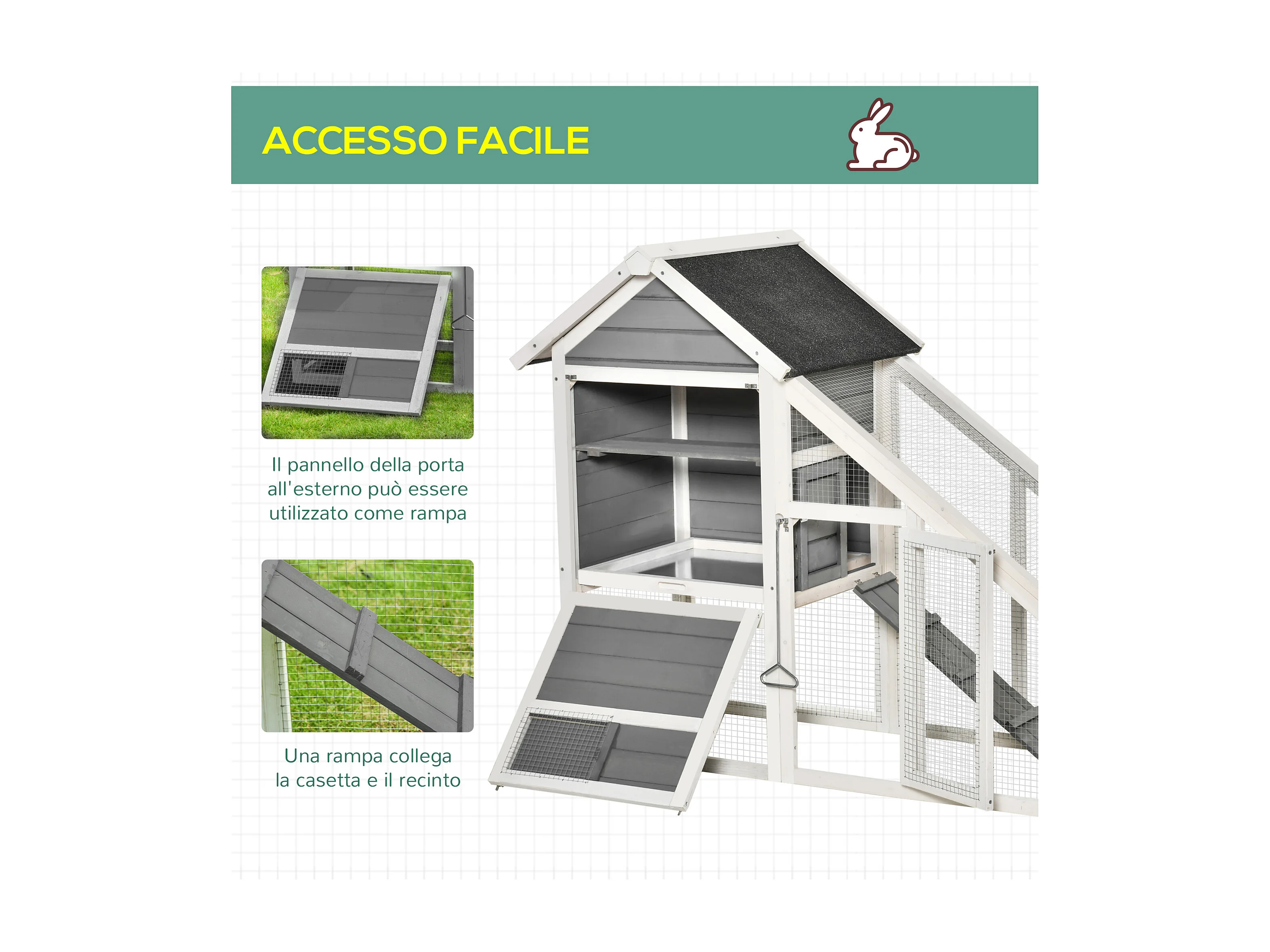 Gabbia per conigli con tetto in asfalto e rampa di accesso antiscivolo