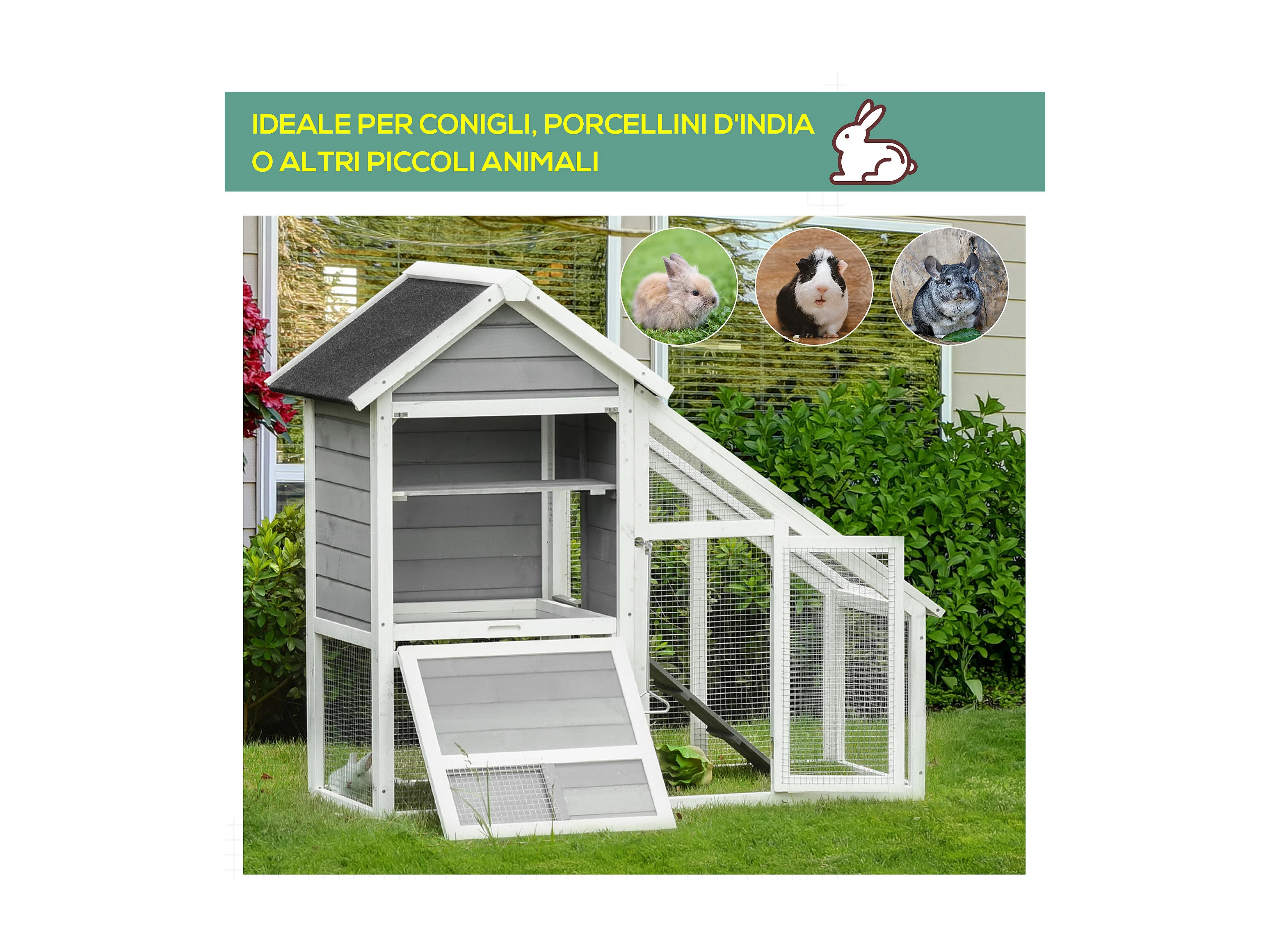Conigliera in legno 2 piani con casetta rampa e vassoio estraibile