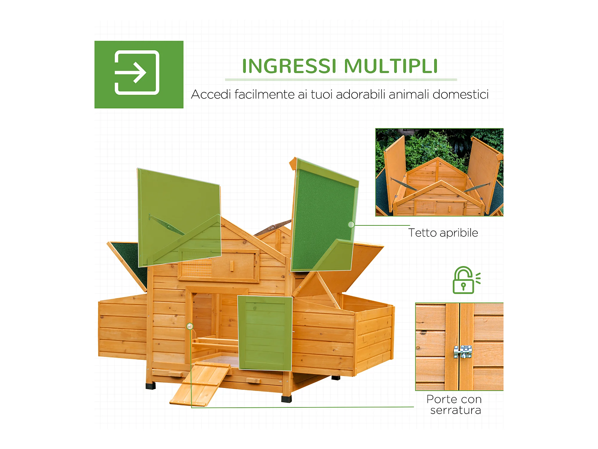 Casetta per galline pollaio da giardino in legno di abete