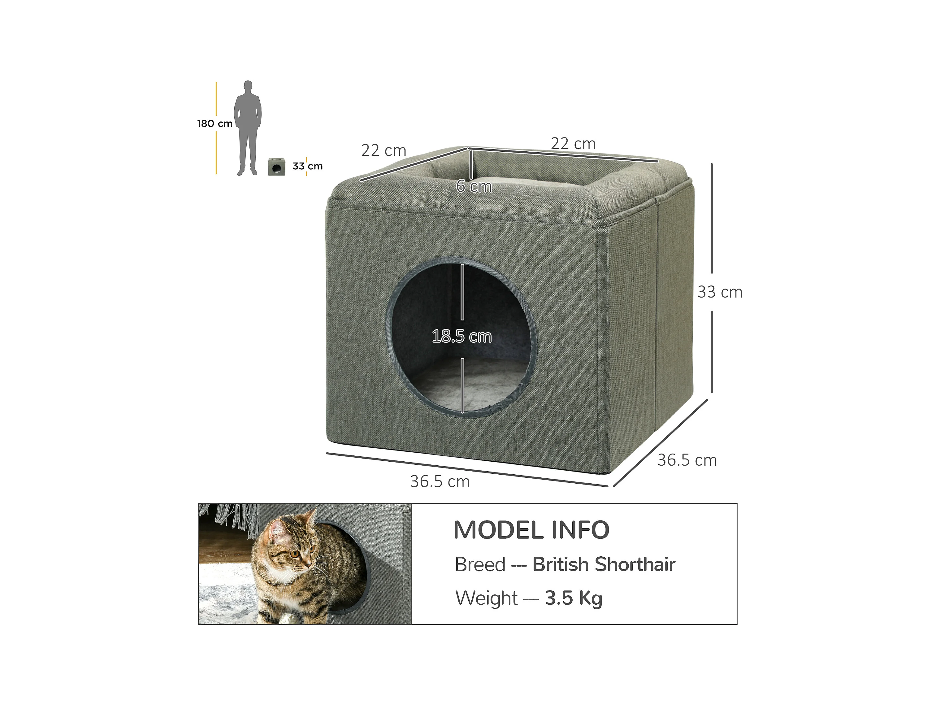 Casetta per gatti con cuscini lavabili 39x43.5x40.5 cm grigio