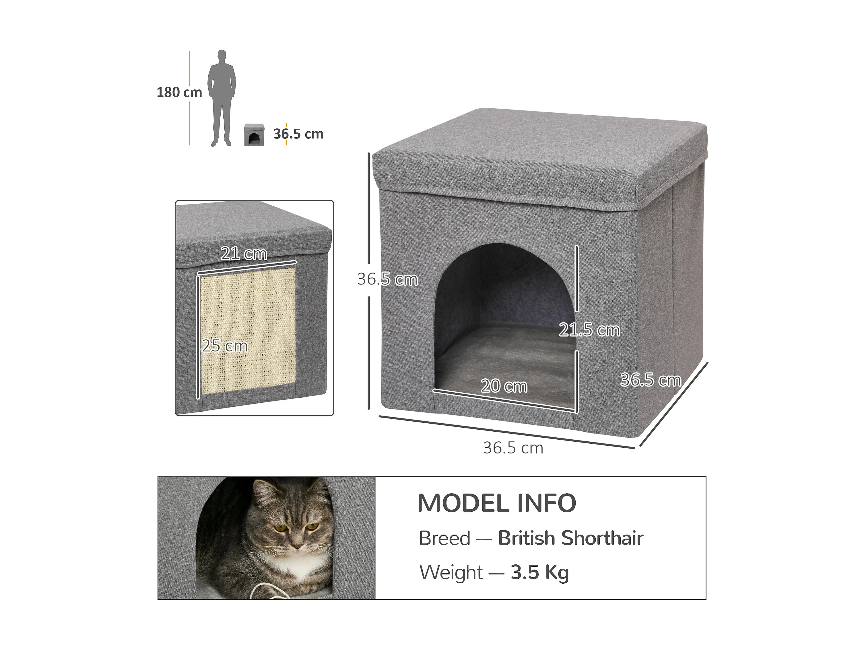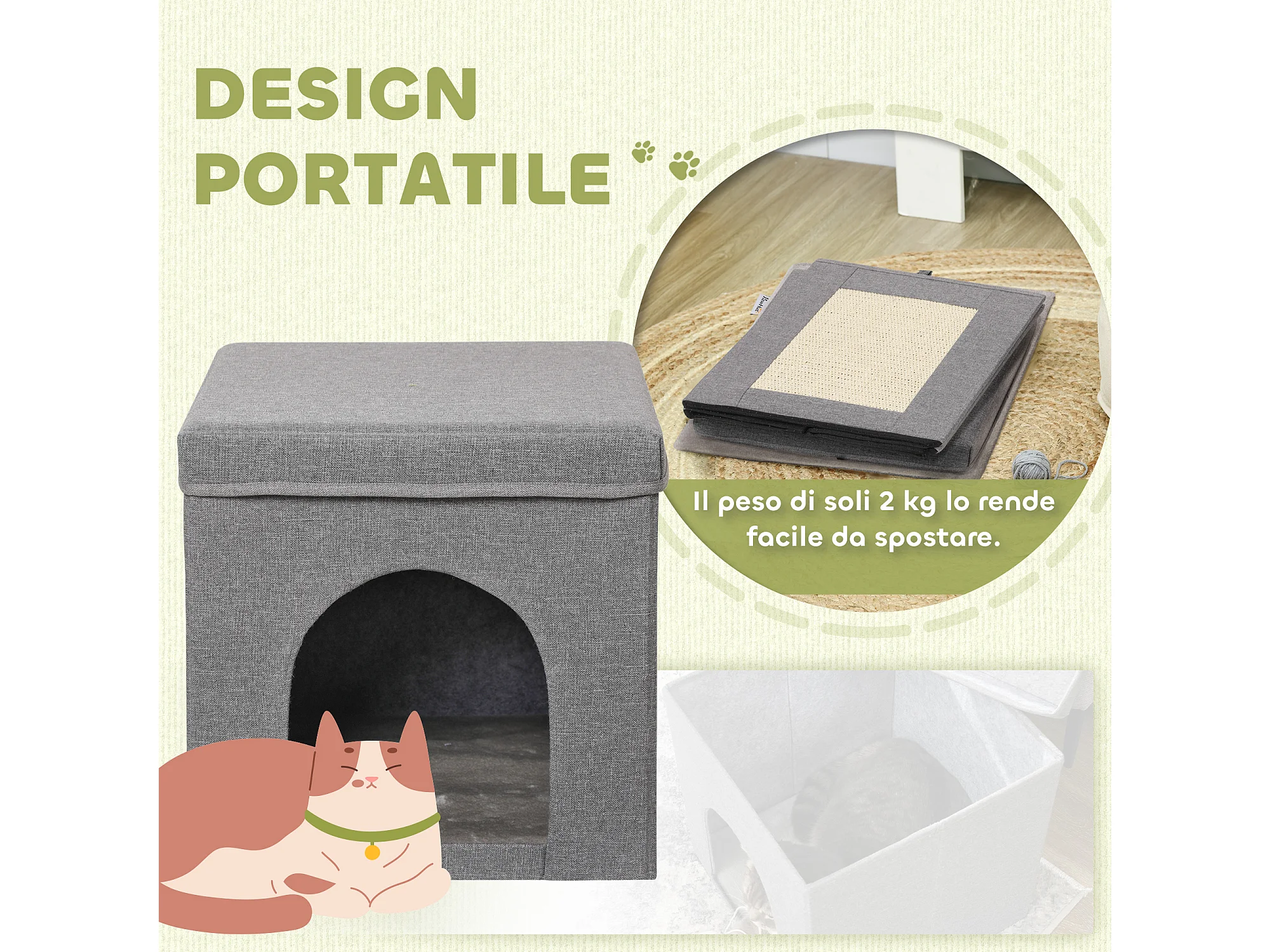 Casetta per gatti a cubo pieghevole con cuscino e tiragraffi grigio