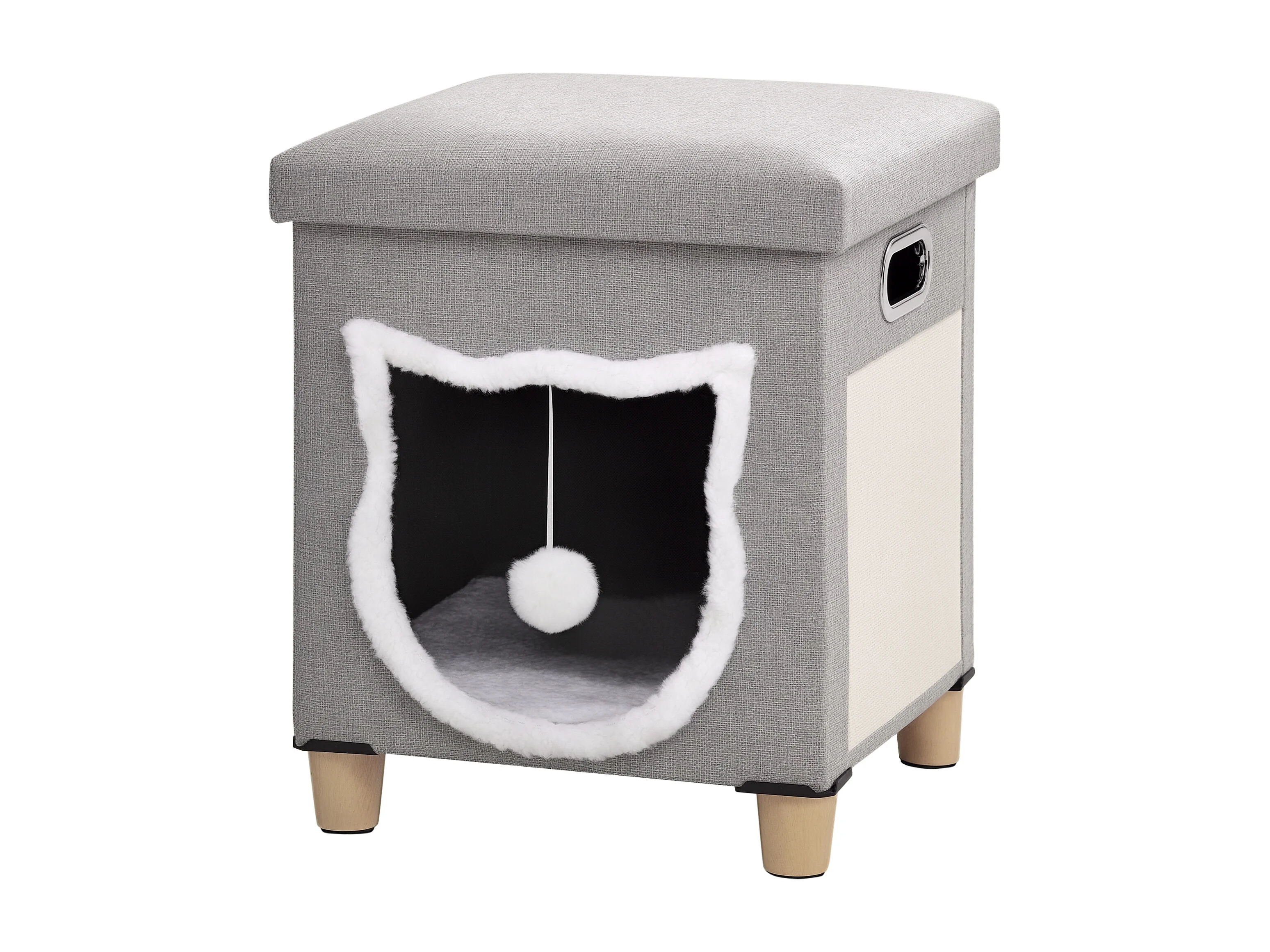 Cuccia per gatti in legno con 2 cuscini e tiragraffi rimovibili, grigio