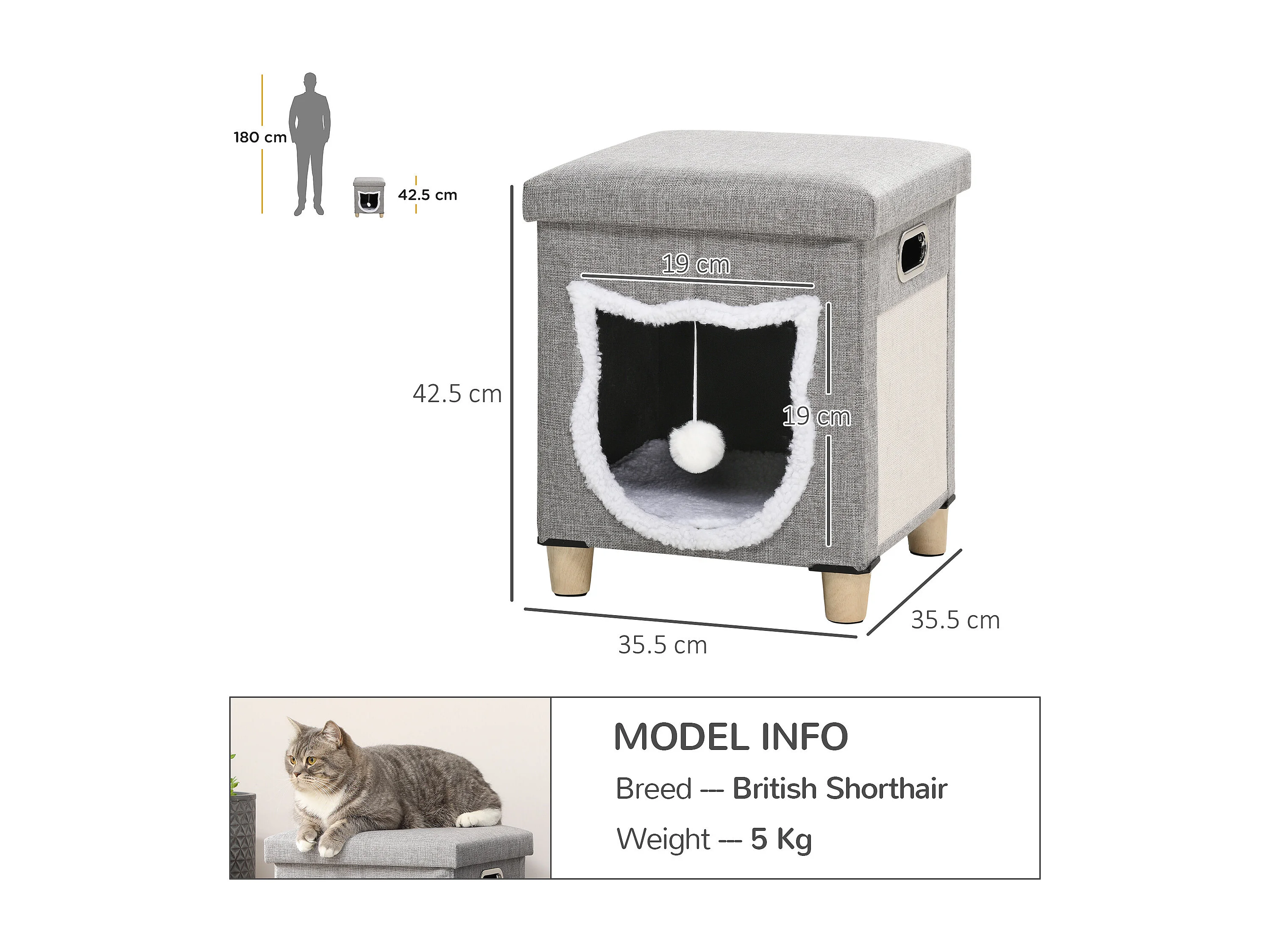 Casetta per gatti a cubo pieghevole con cuscino e tiragraffi grigio