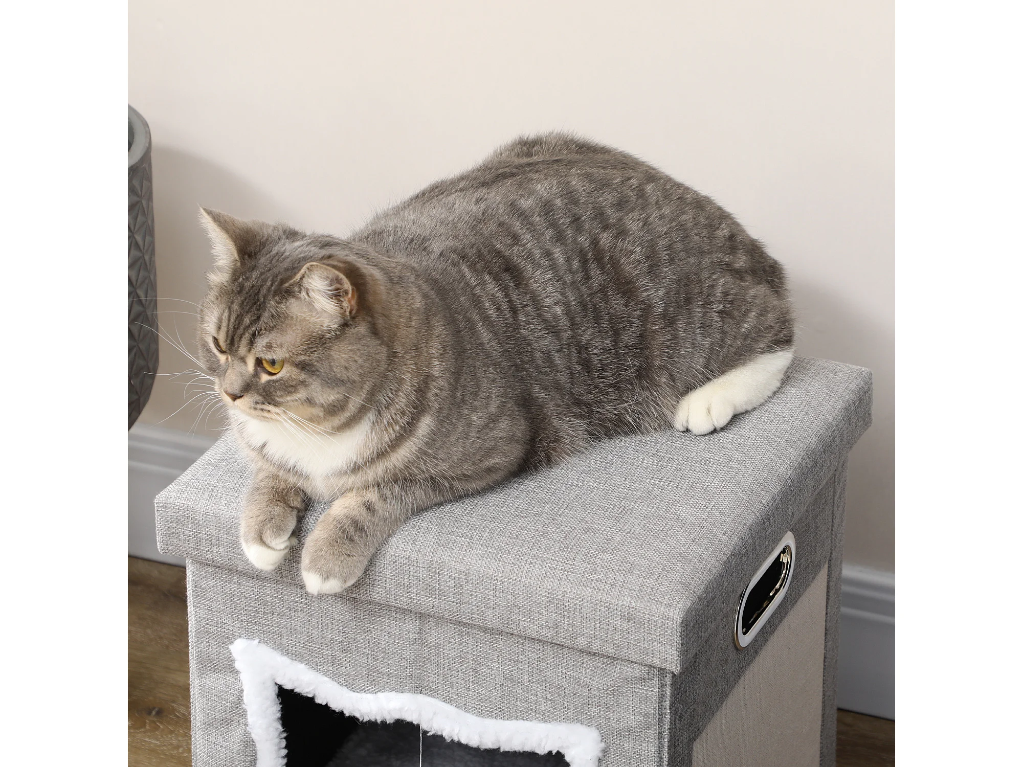 Casetta per gatti due livelli con cuscini lavabili 42x46x59.5cm grigio