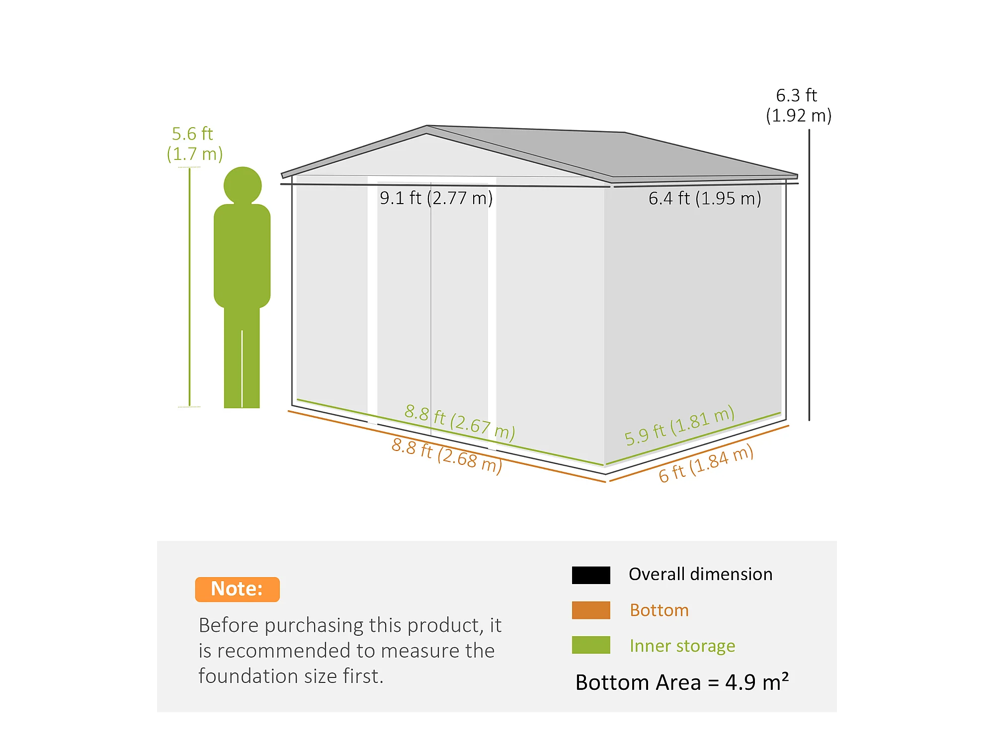Capanno attrezzi con tetto inclinato e porta scorrevole acciaio verde
