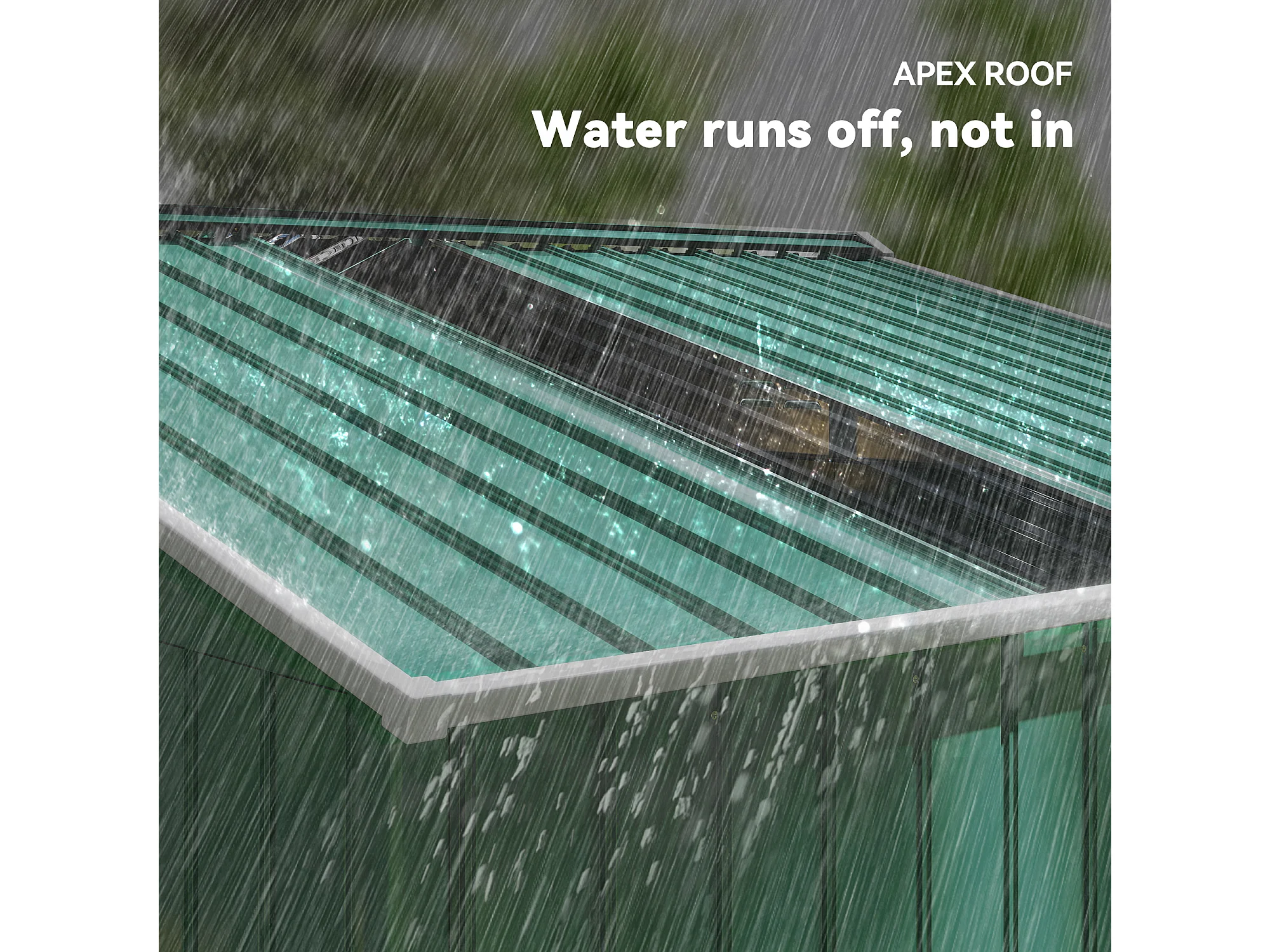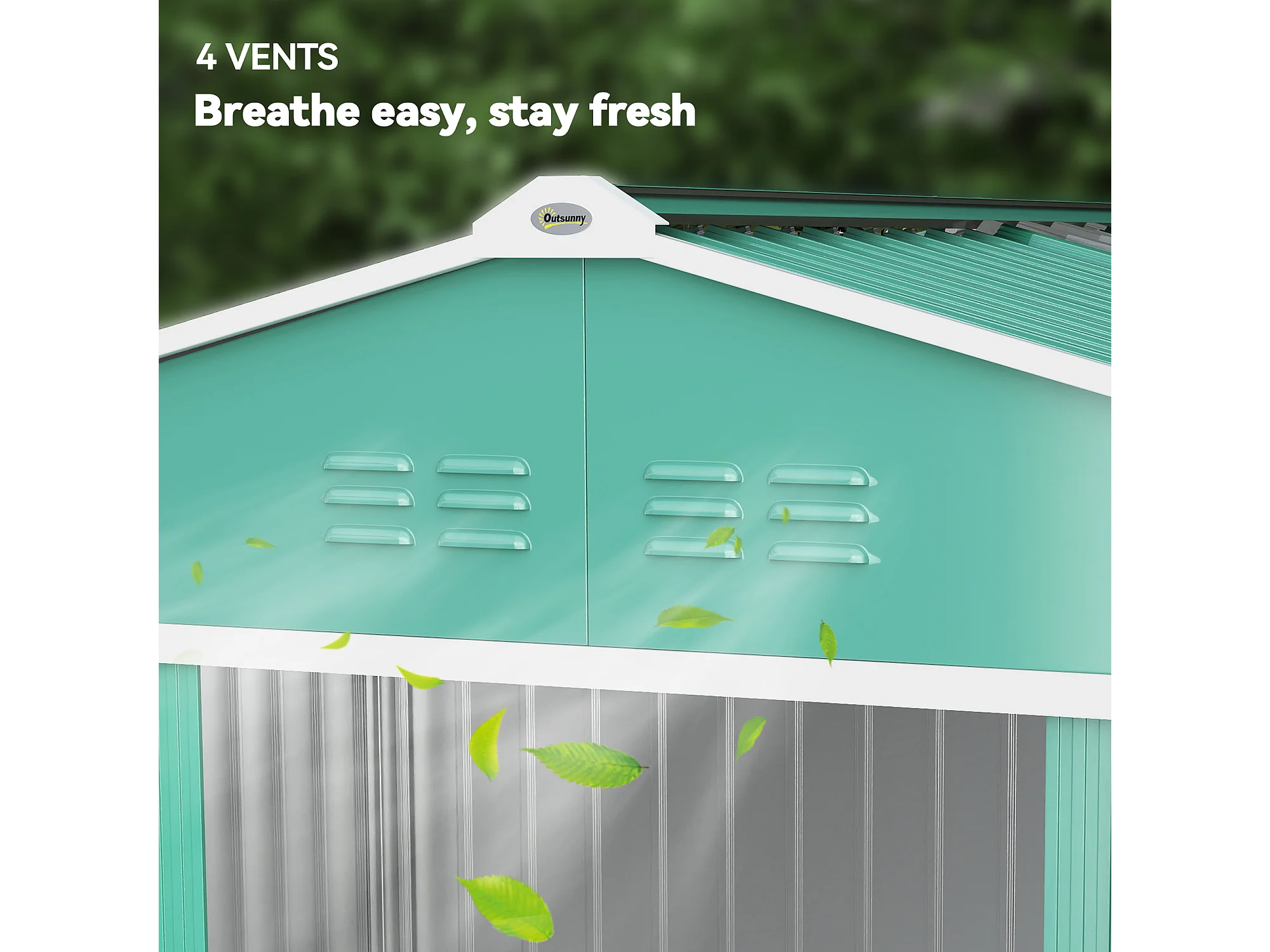 Casetta da giardino con tetto inclinato e prese d'aria acciaio verde