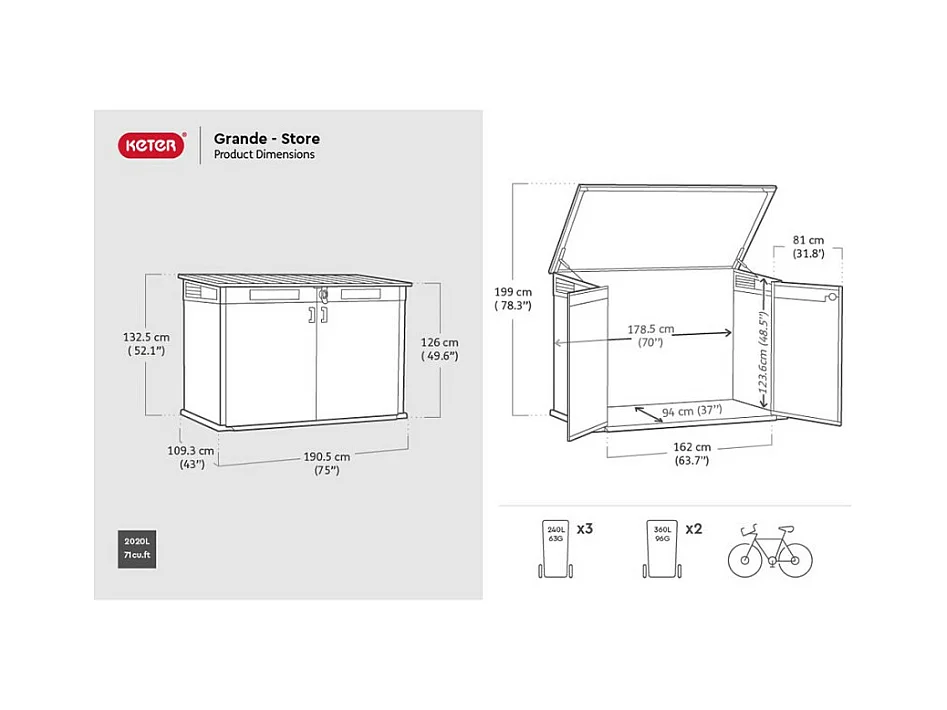 Cassa da giardino in resina BROSSIUM - 2100L - Grigio