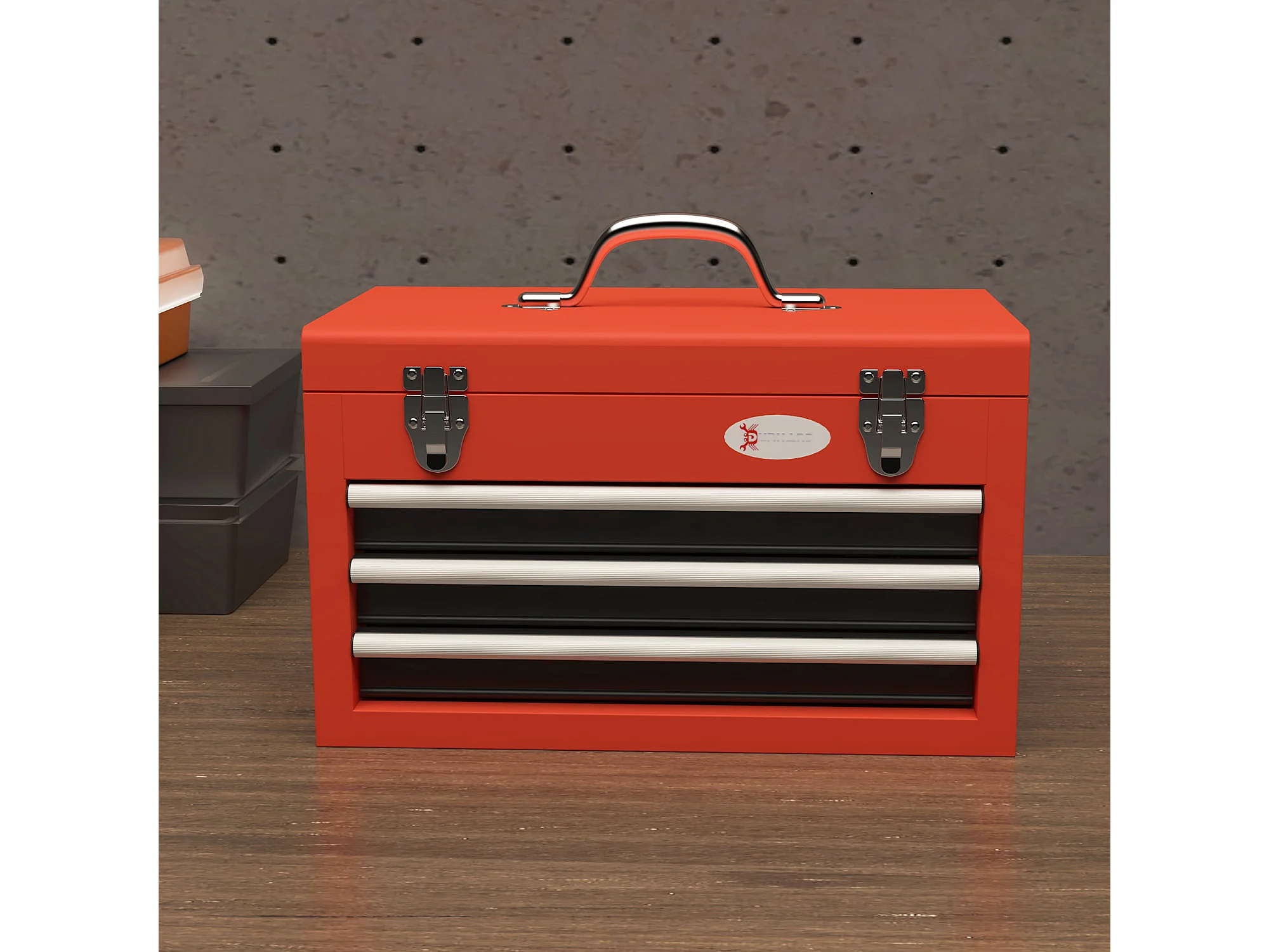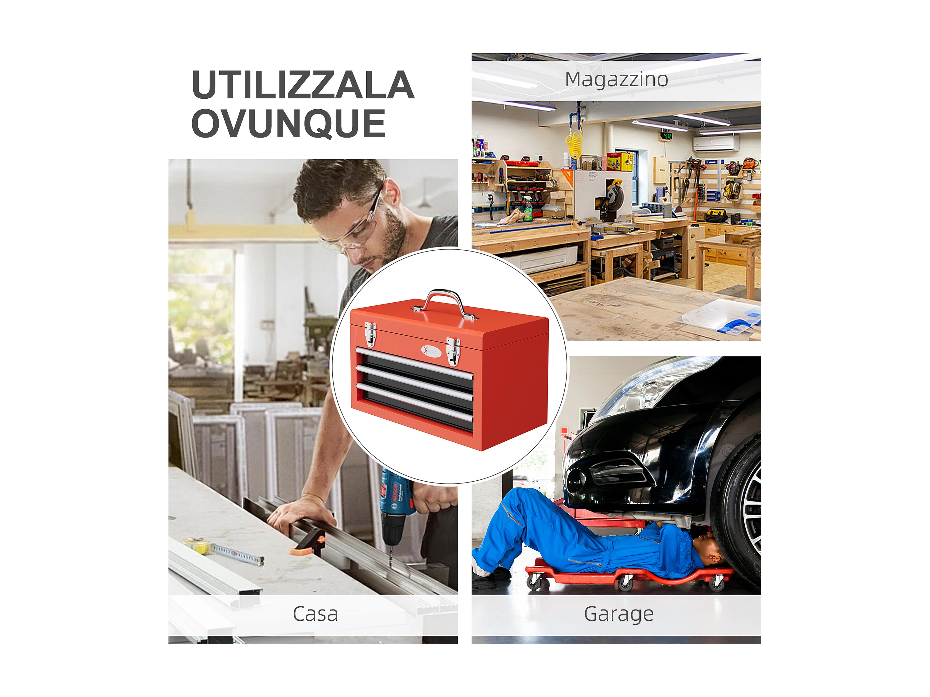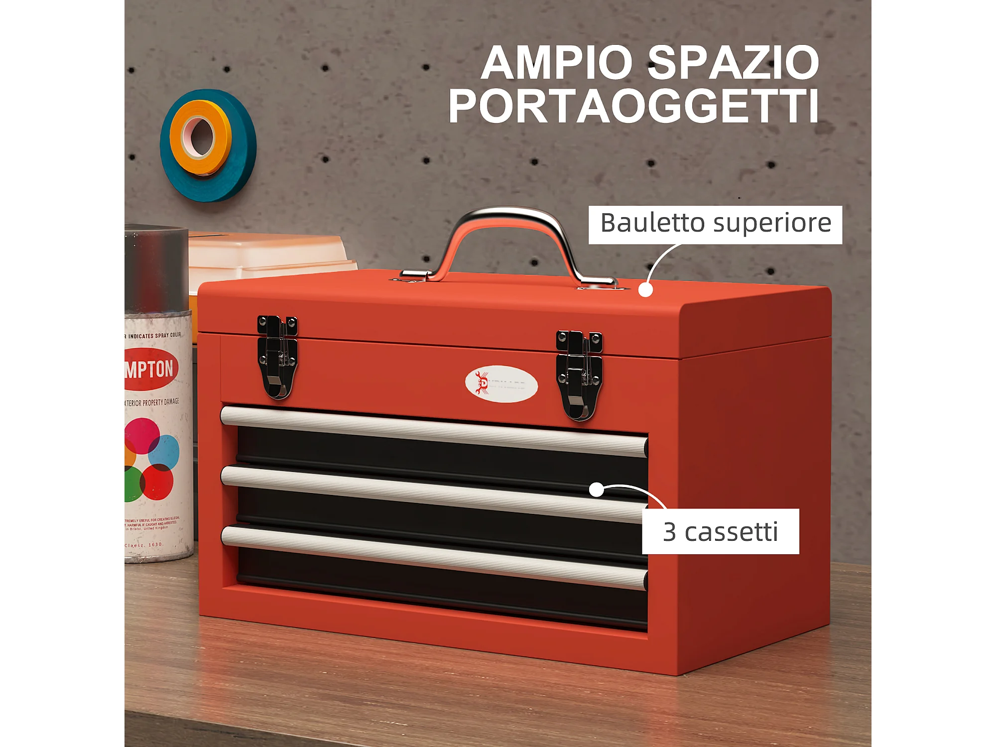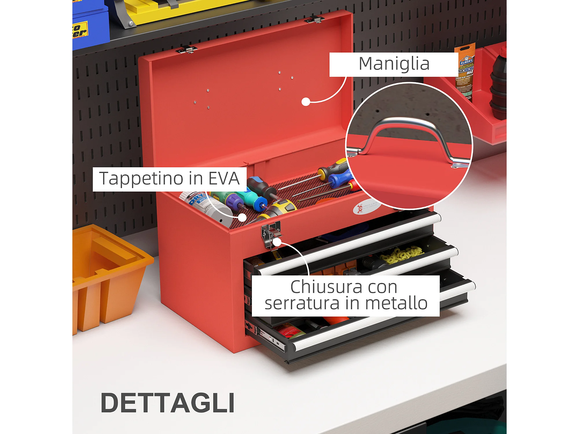 Cassetta porta attrezzi a 3 cassetti con maniglia in acciaio rosso