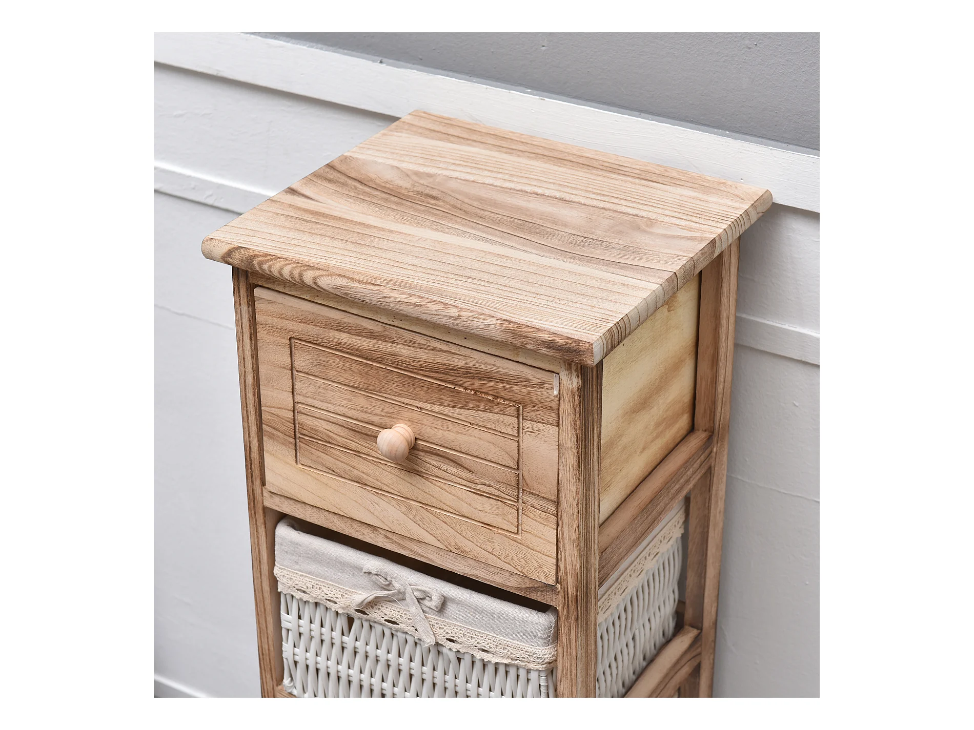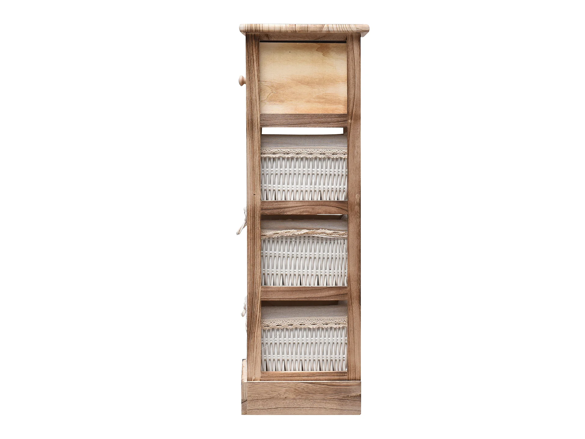 Cassettiera 1 Cassetto 3 Ceste Legno Vimini Rustico 81x30x27