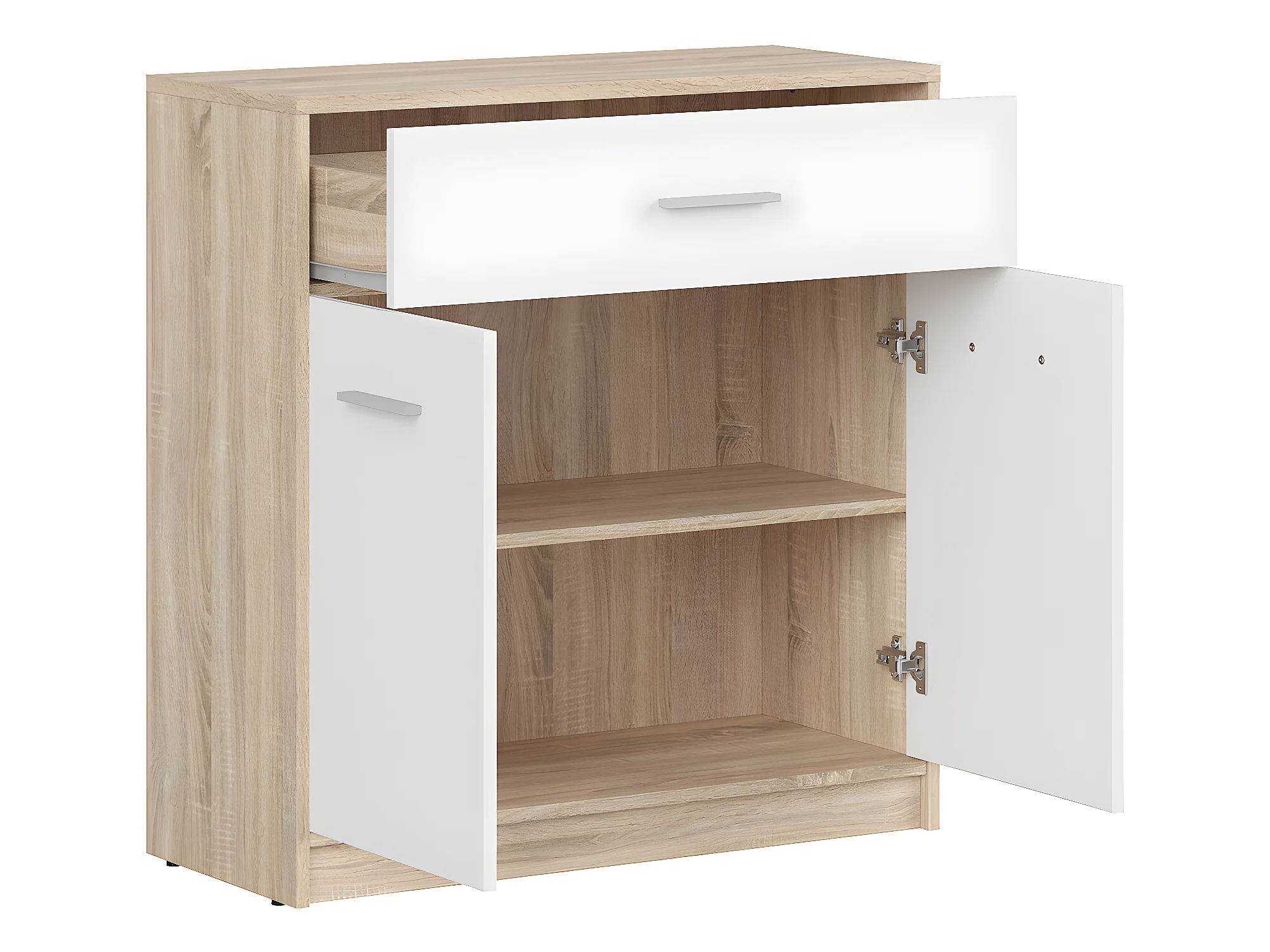 Cassettiera 2 ante 1 cassetto Ewen marrone e bianco 84cm