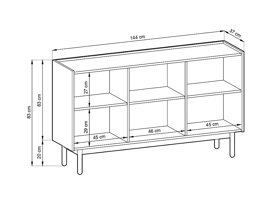 Cassettiera: 2 Ante, 4 Ripiani, Rovere Linea, Piedini Neri, 103,5 x 83,5 x 39 cm