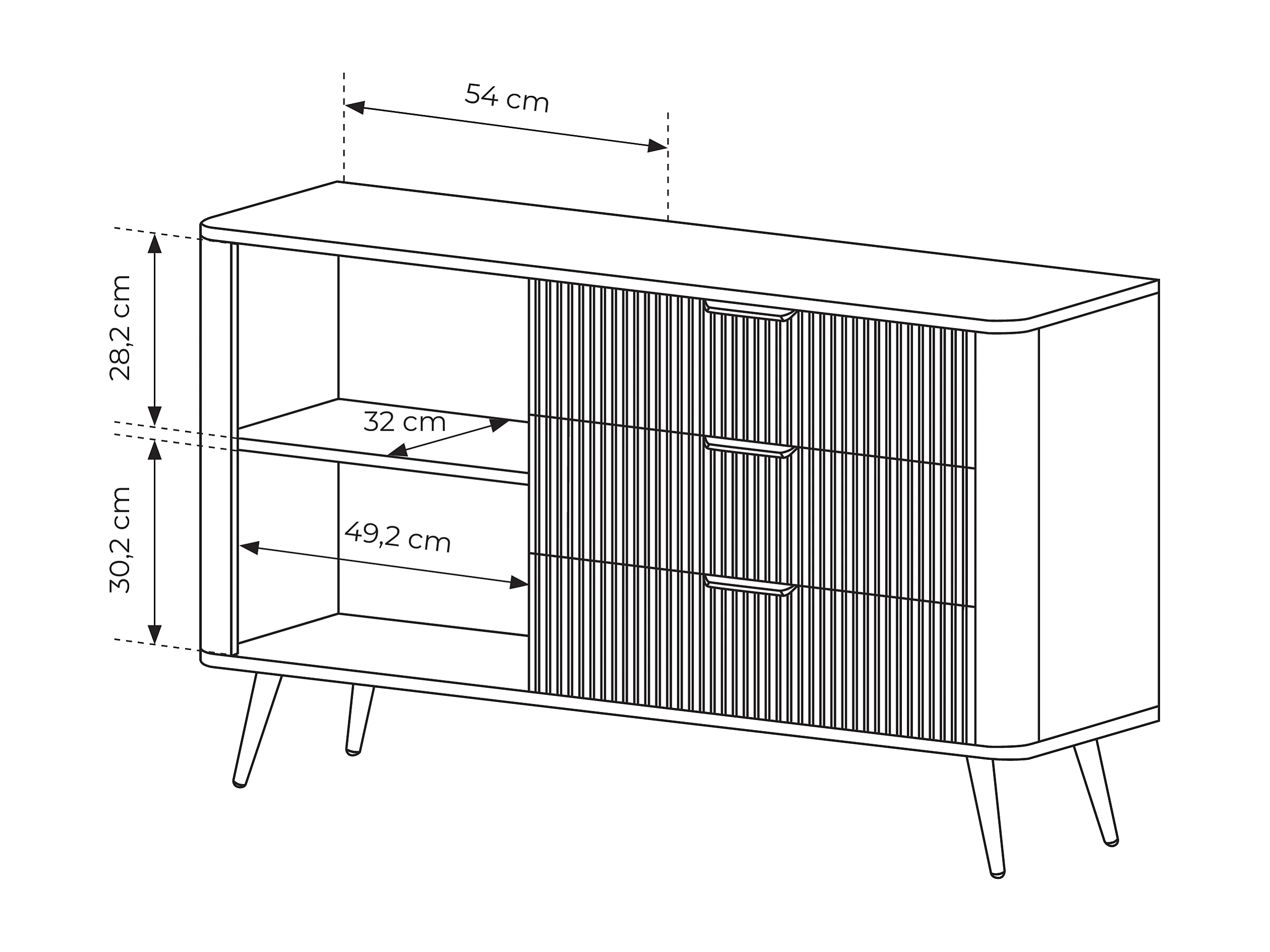 Cassettiera: 3 cassetti, 1 anta, nero, 138,2 x 81,2 x 38 cm